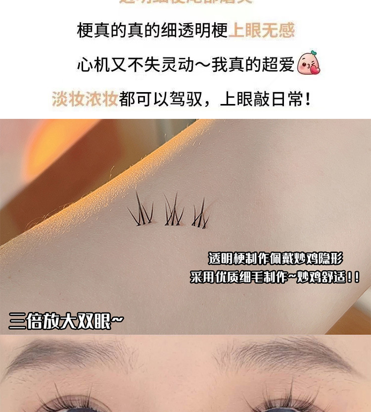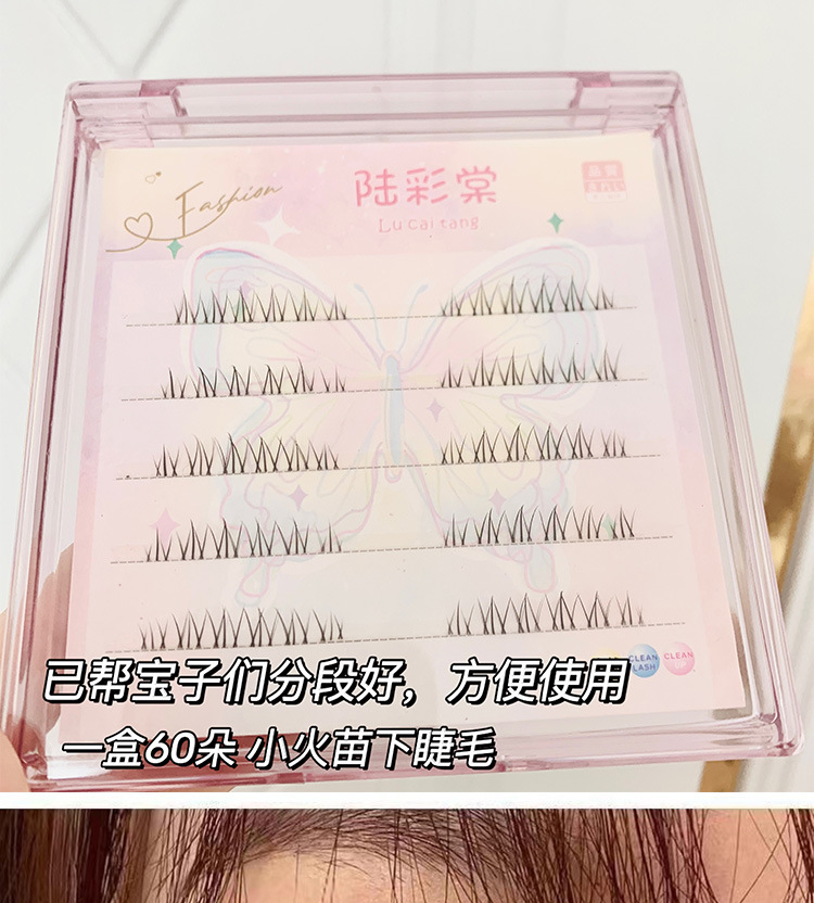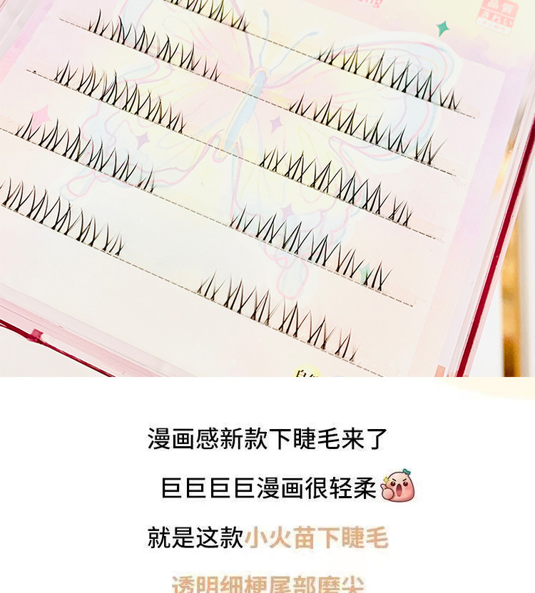 小火苗下睫毛自然仿真单簇裸妆日常分段式透明梗仙子漫画眼假睫毛