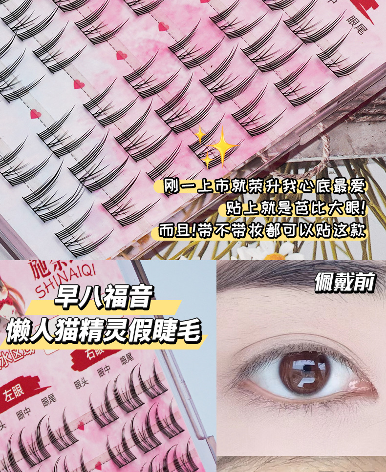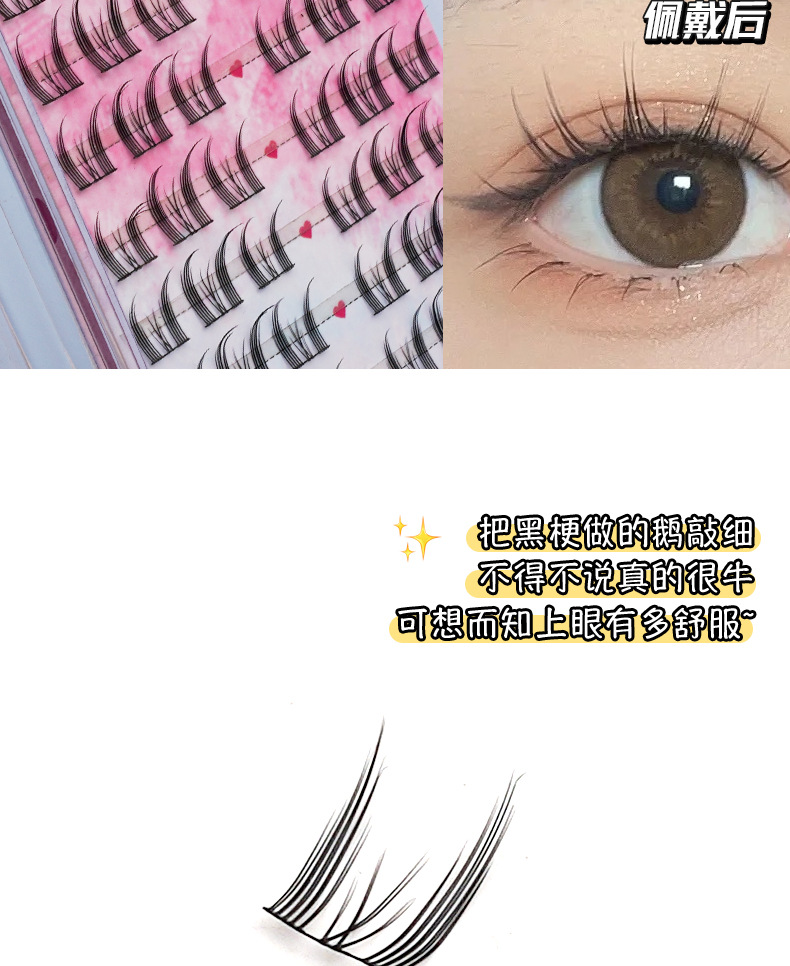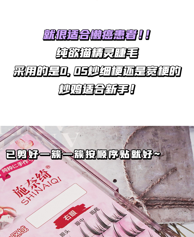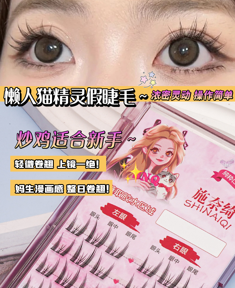 猫精灵假睫毛纯欲超细梗自然单簇漫画仙子睫毛网红猫耳朵分段式