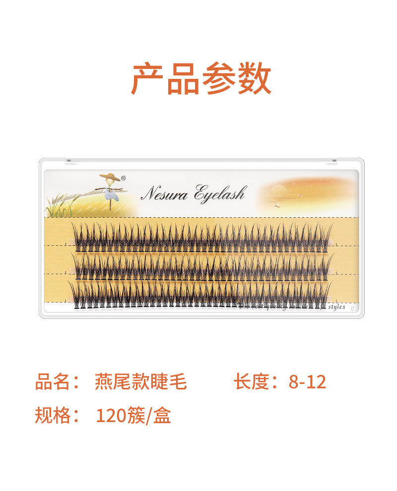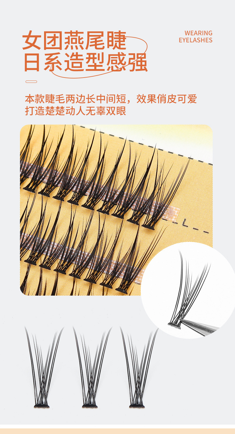 平度批发跨境稻草人燕尾朵毛 小恶魔自然浓密鱼尾单簇嫁接假睫毛