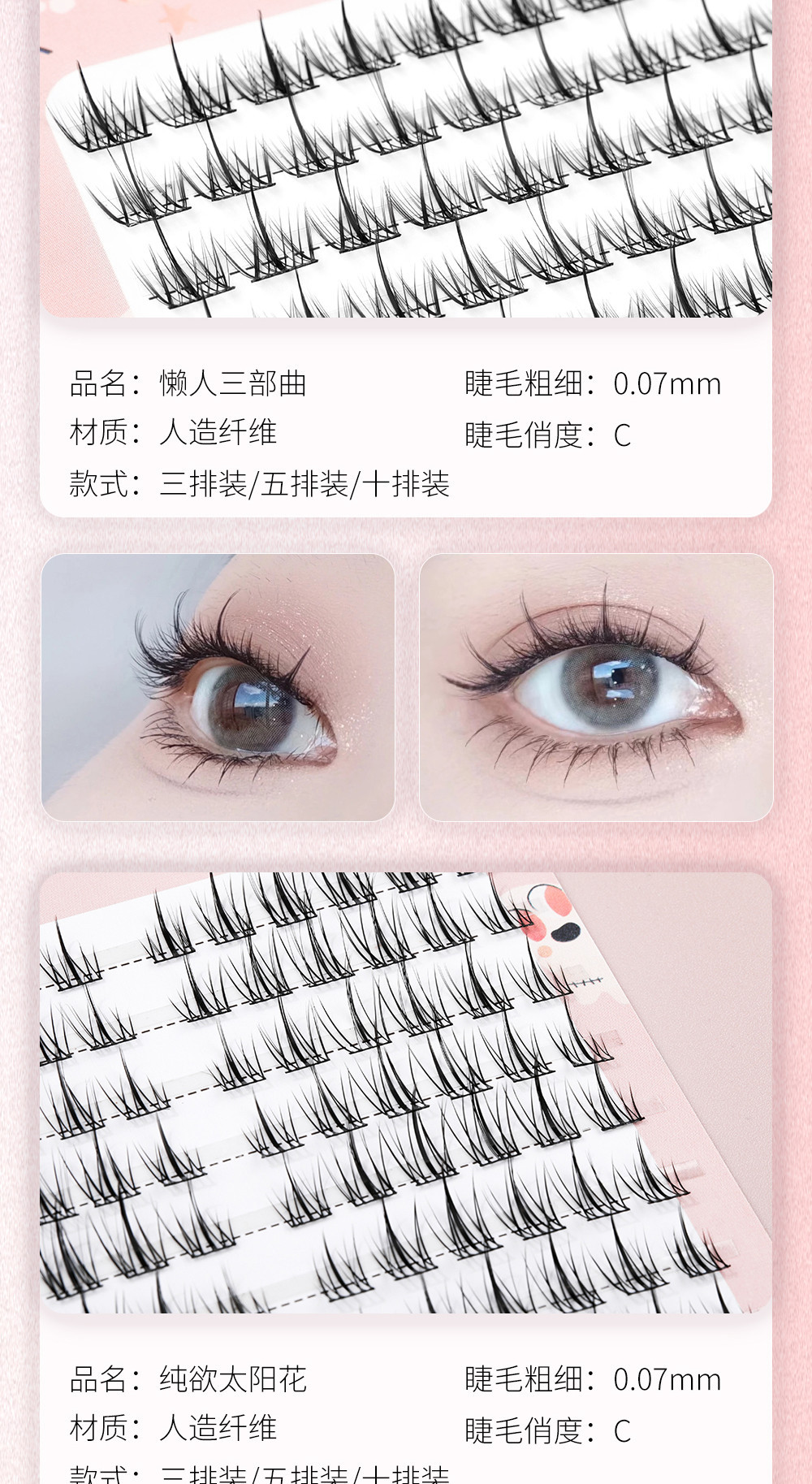 懒人三部曲假睫毛自然款硬梗大容量小恶魔太阳花眼睫毛单簇漫画