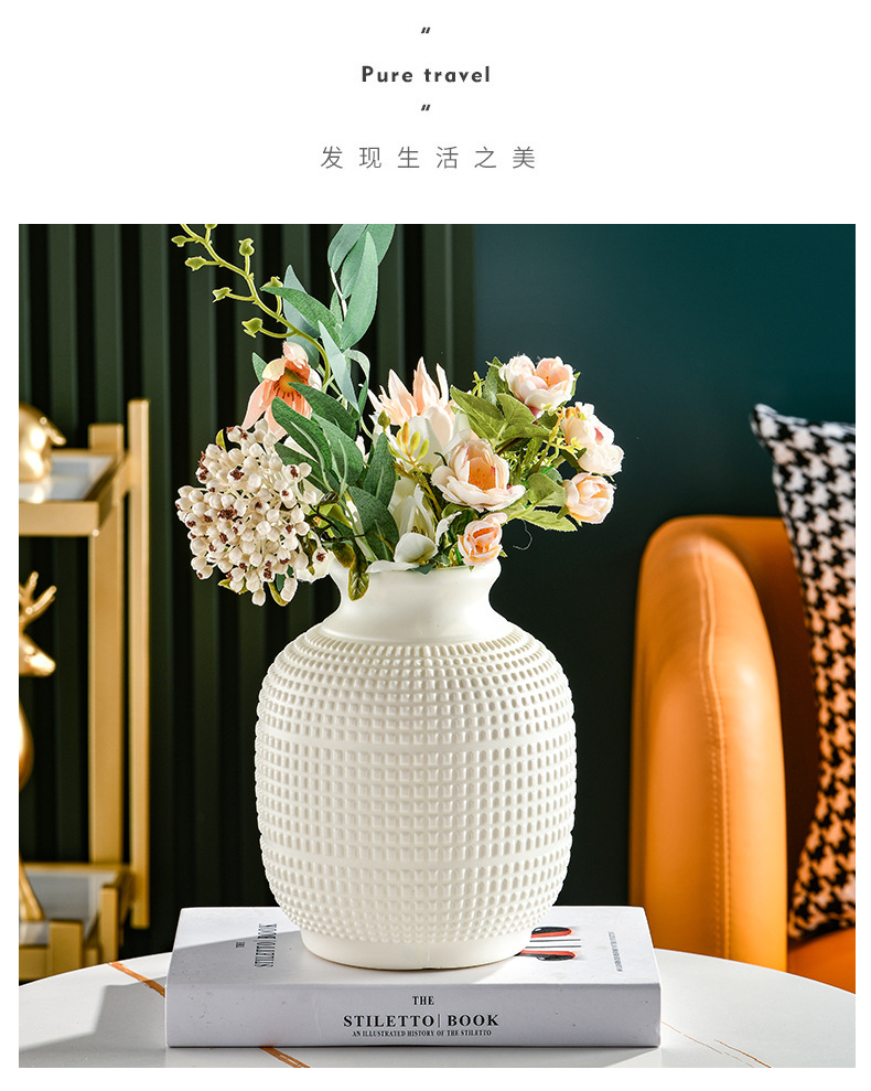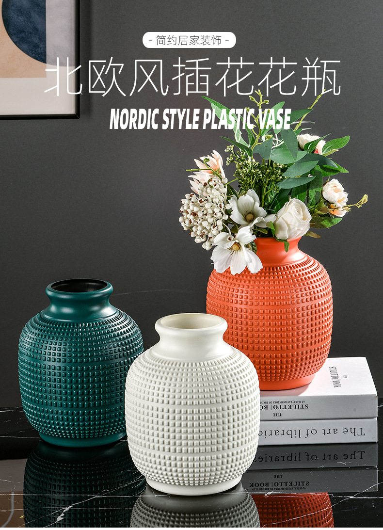 新款塑料花瓶 北欧风创意插花容器摆件干湿花花瓶仿釉仿瓷花盆