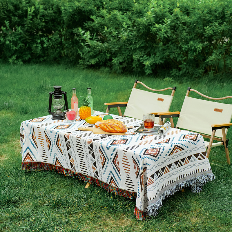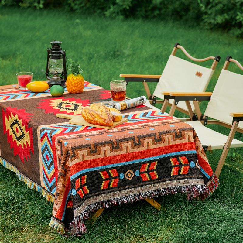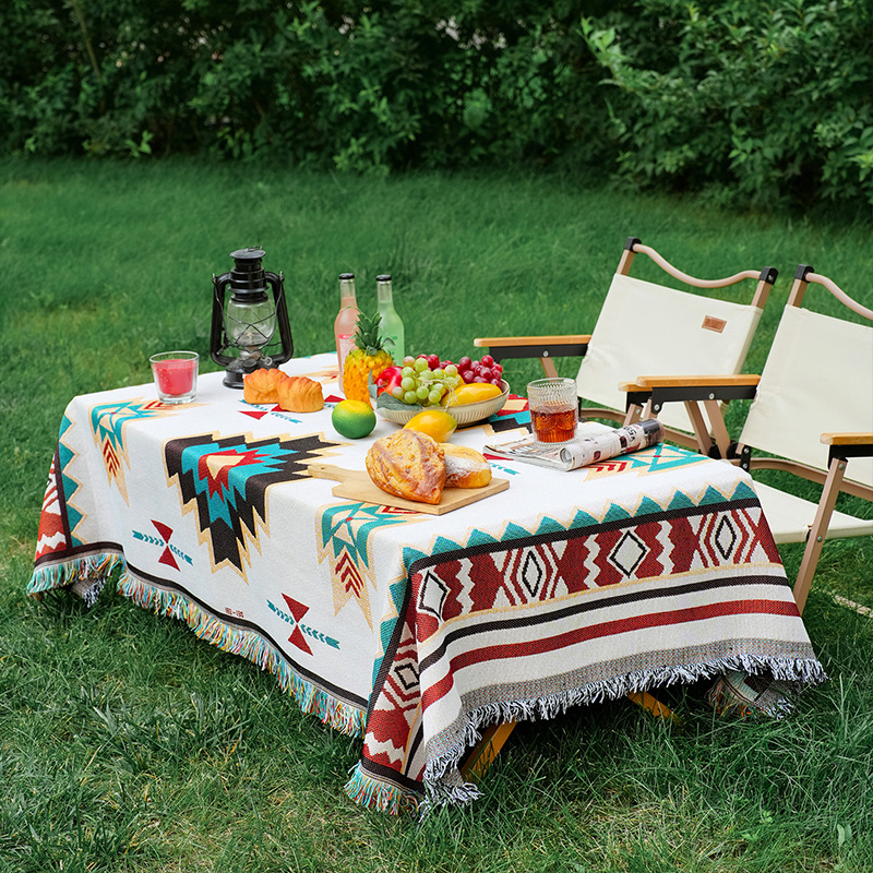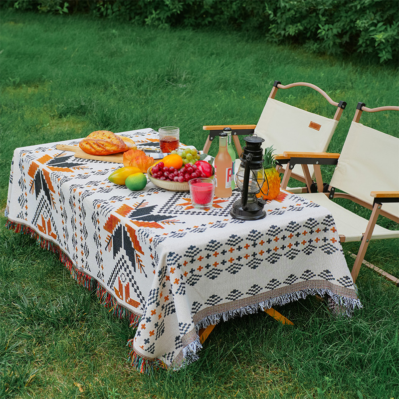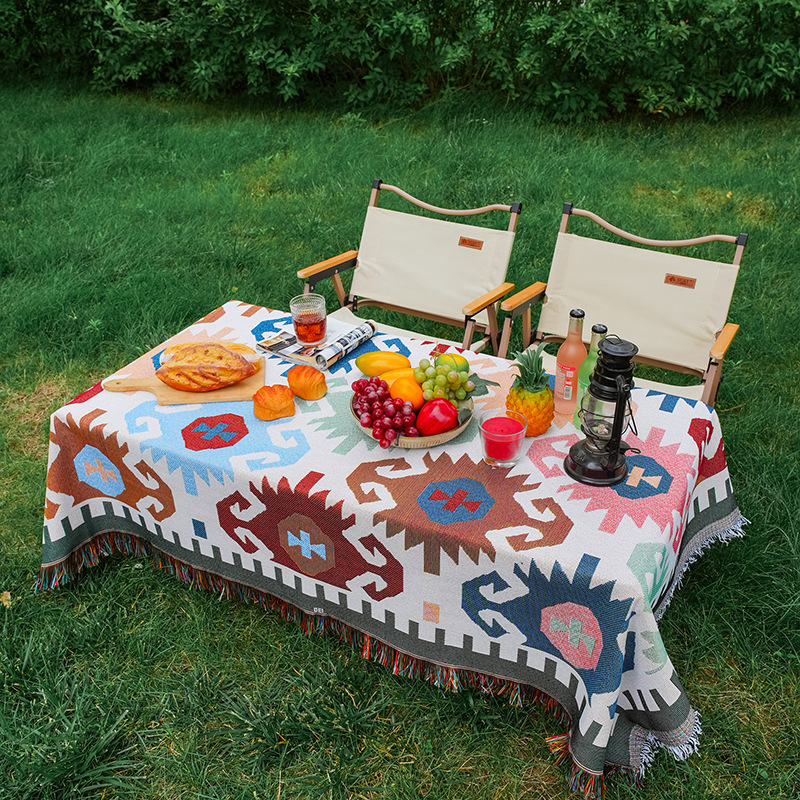 波西米亚风棉麻布艺野餐垫户外露营毯桌布防潮地垫装饰毯现货批发