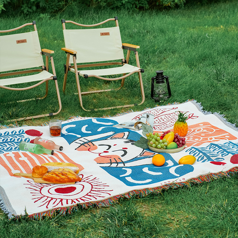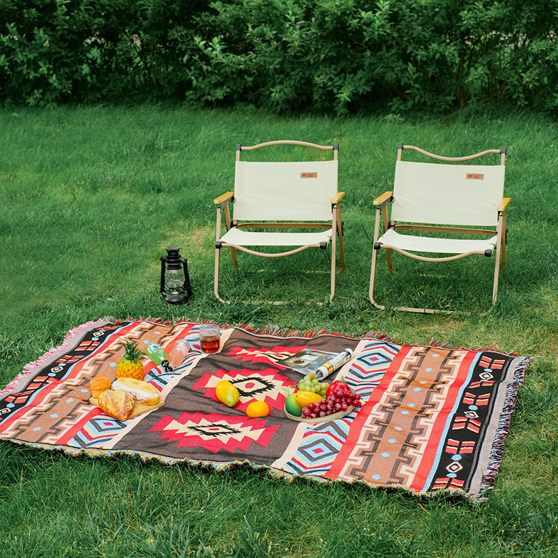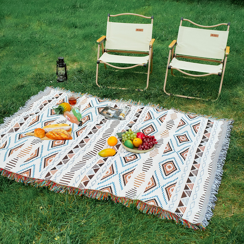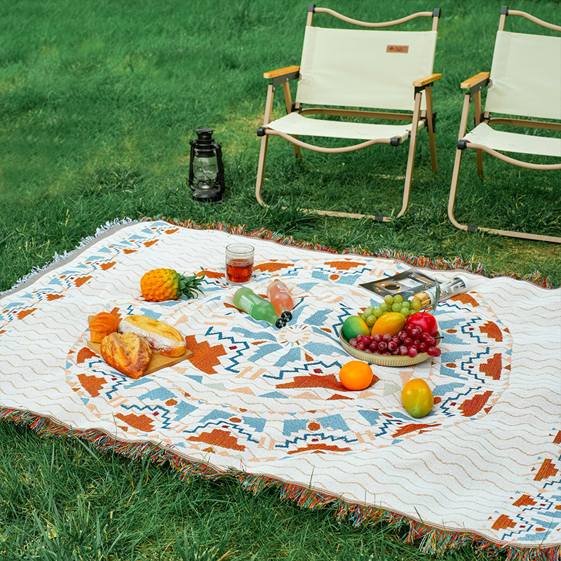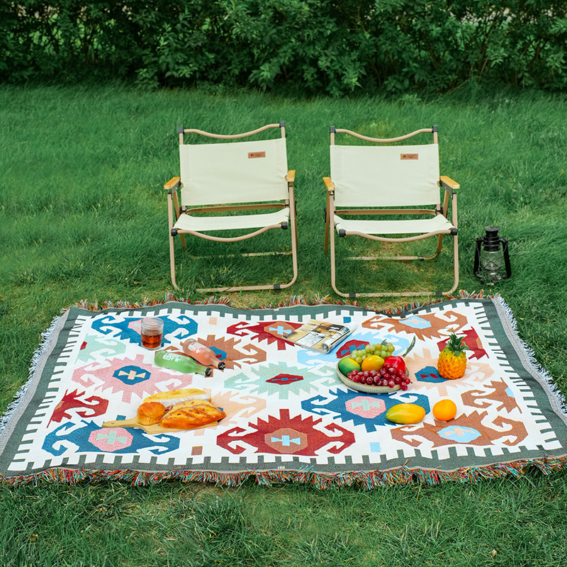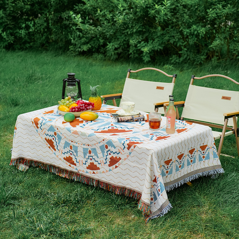 波西米亚风棉麻布艺野餐垫户外露营毯桌布防潮地垫装饰毯现货批发