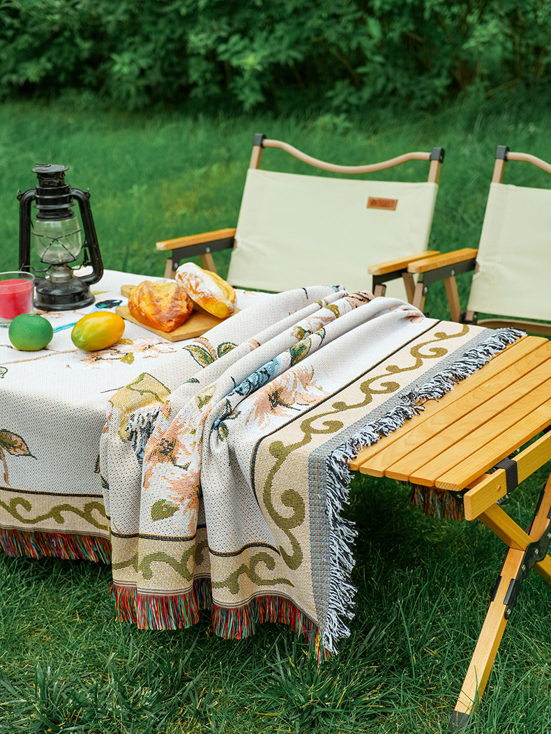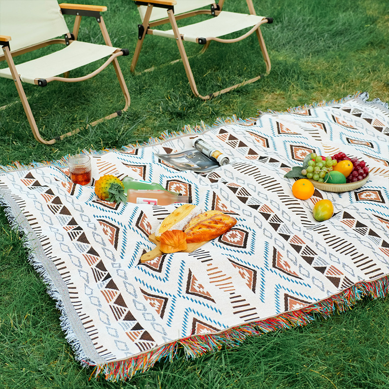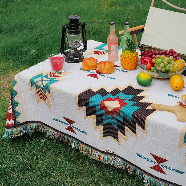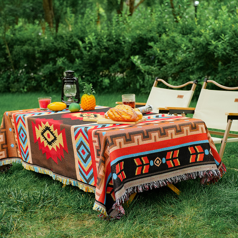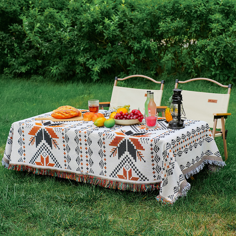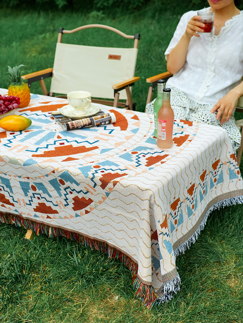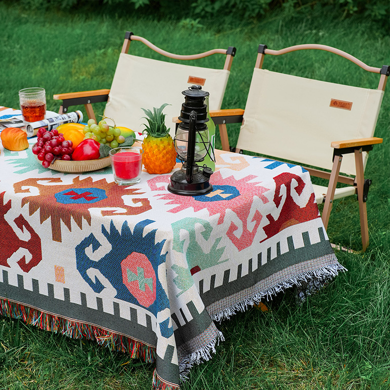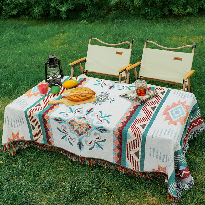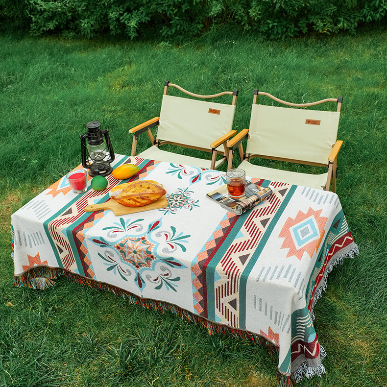 波西米亚民族风桌布户外露营毯野餐垫棉麻防潮地垫加厚氛围感垫子