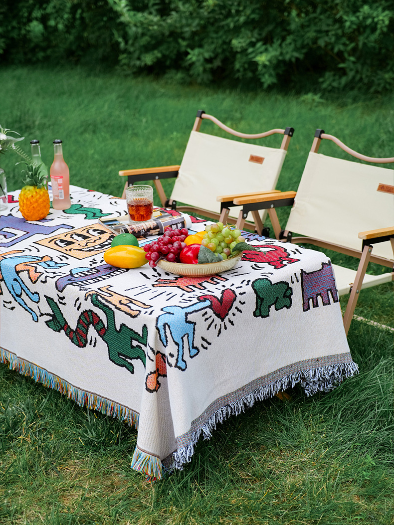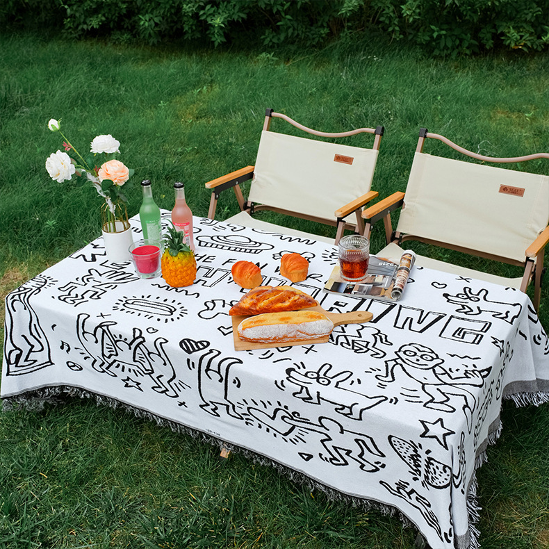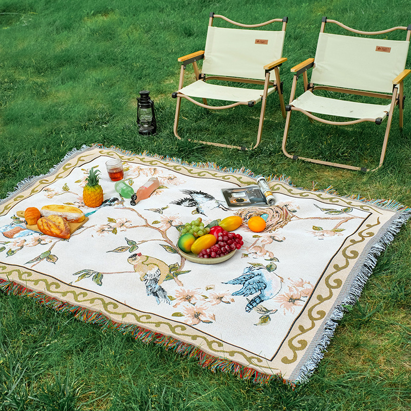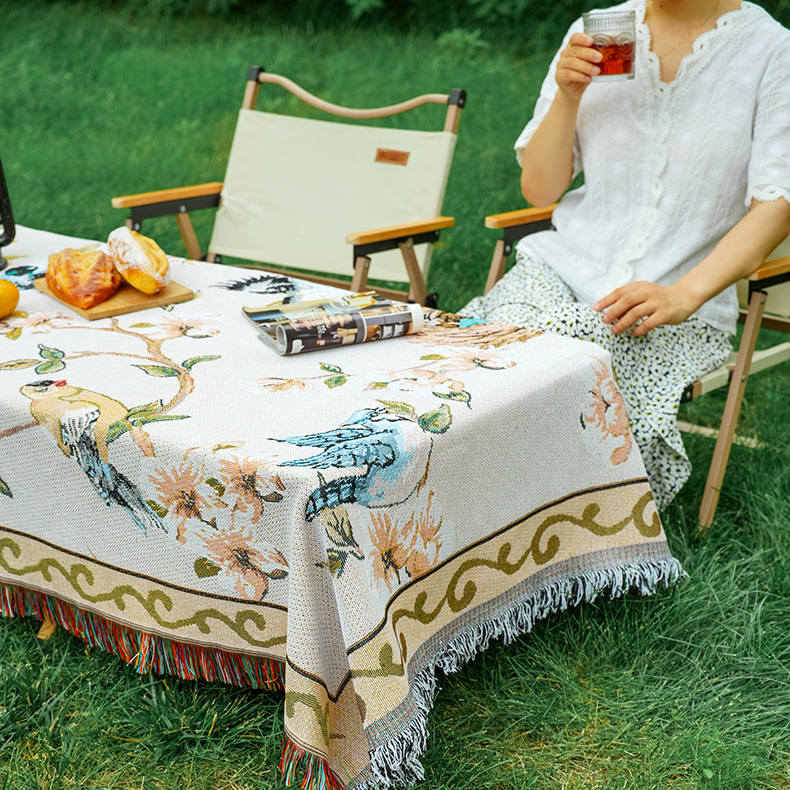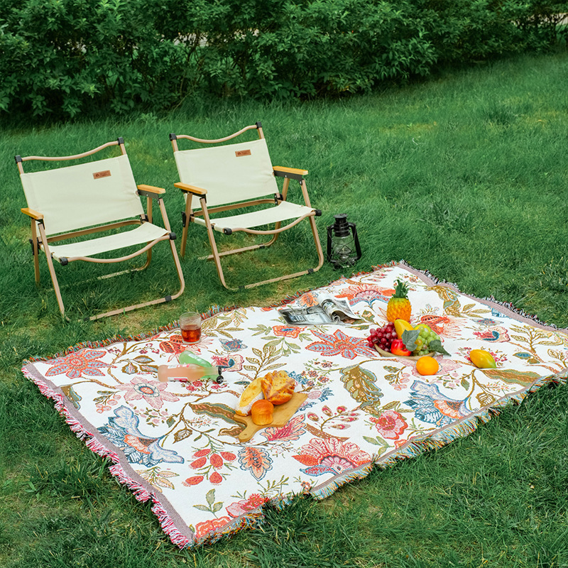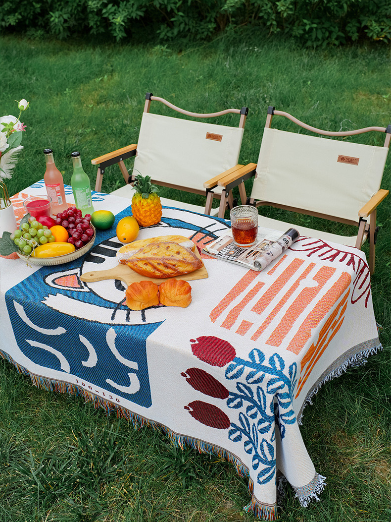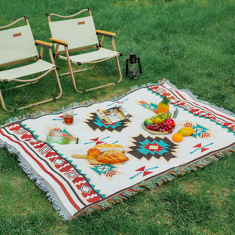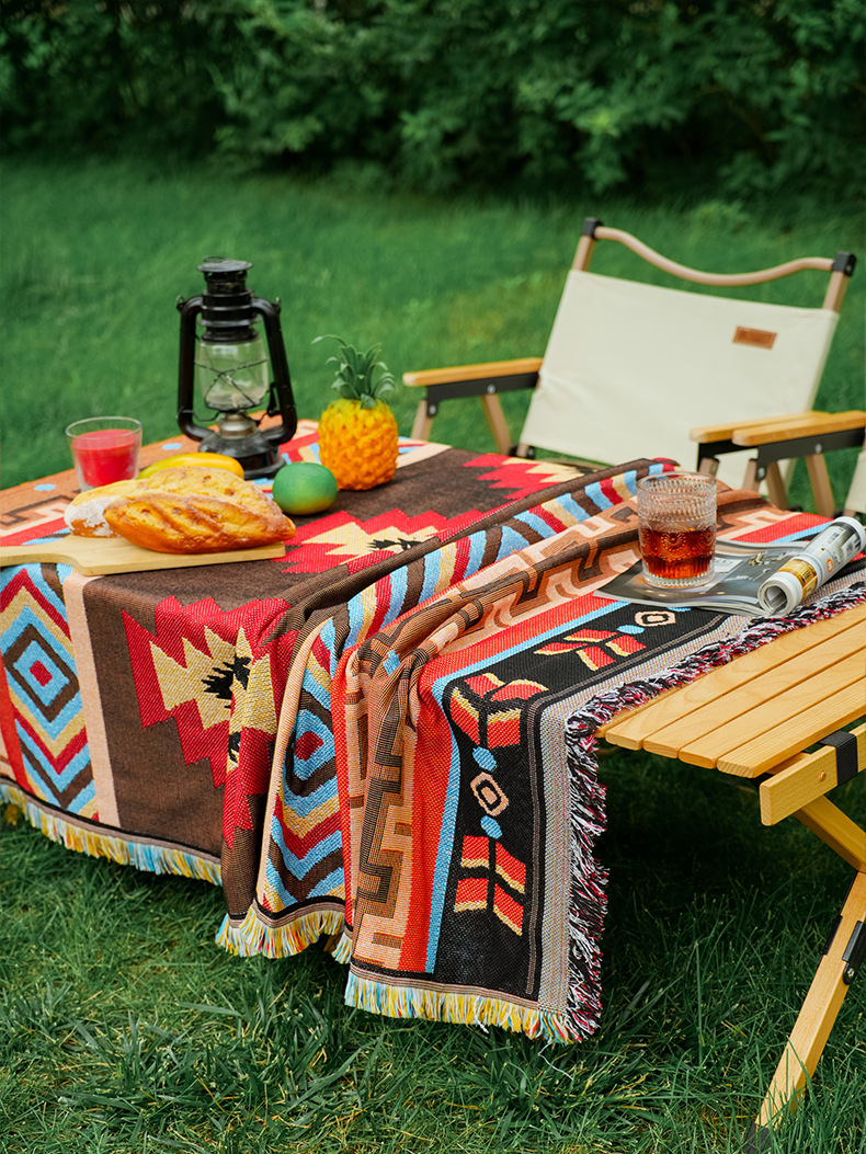 波西米亚民族风桌布户外露营毯野餐垫棉麻防潮地垫加厚氛围感垫子