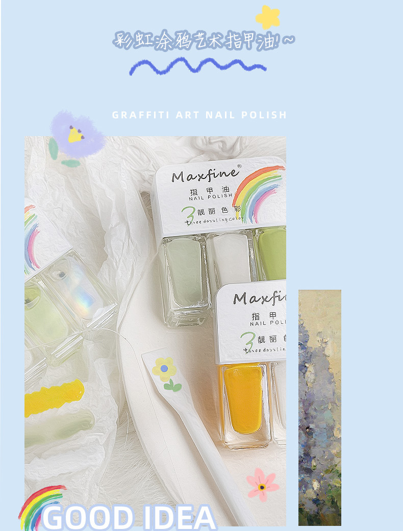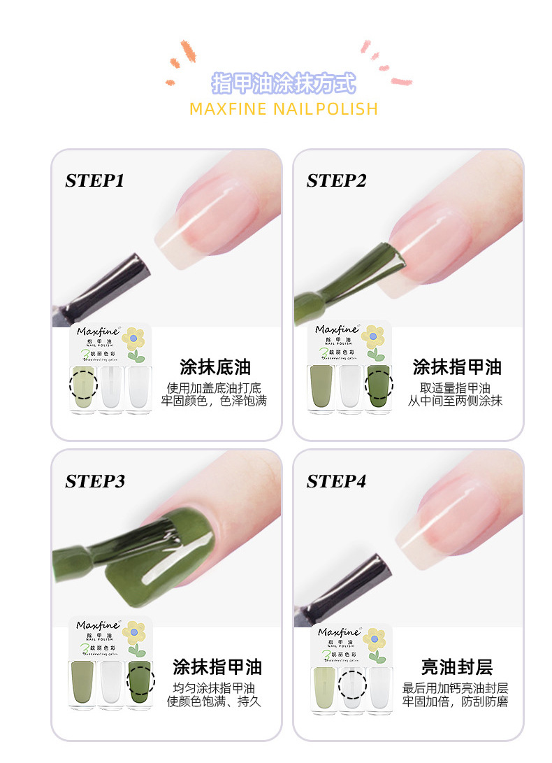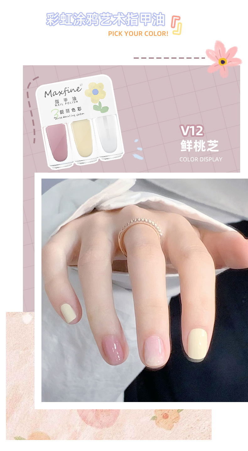 三色指甲油夏日网红显白美甲油快干免烤水性可拉撕指甲油美甲套装