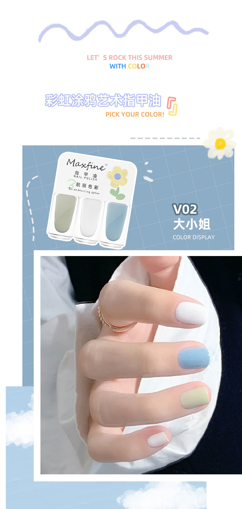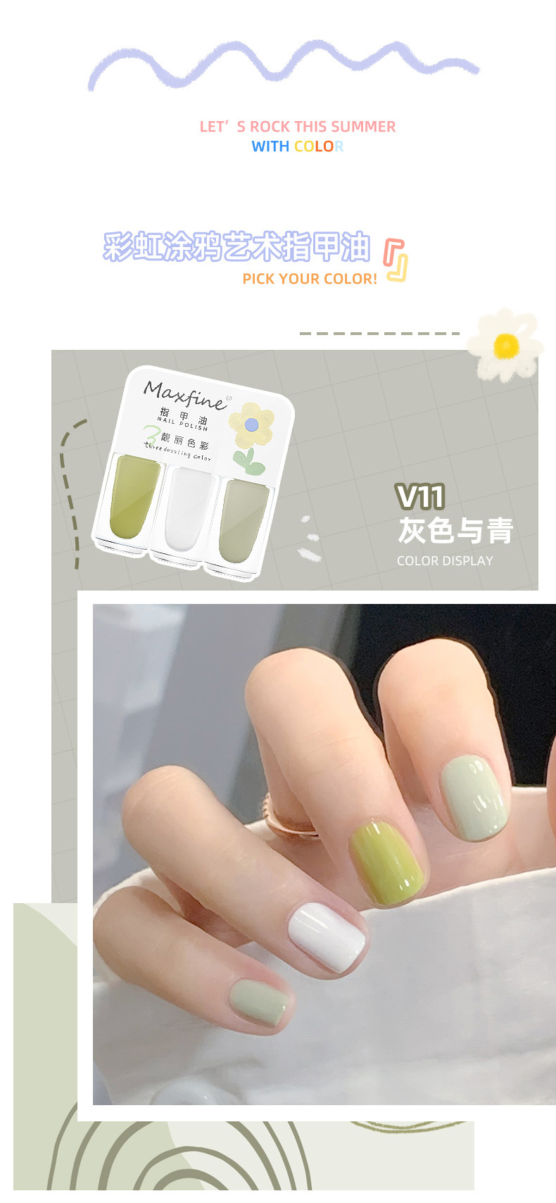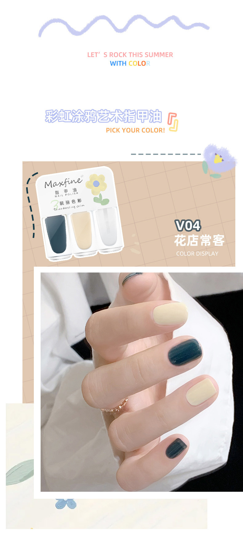三色指甲油夏日网红显白美甲油快干免烤水性可拉撕指甲油美甲套装