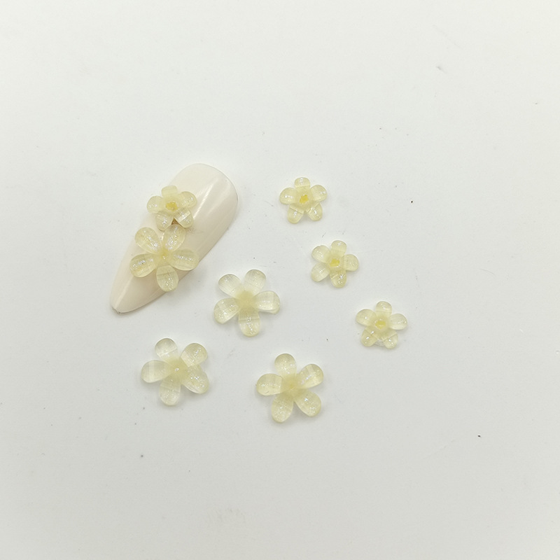 五瓣花美甲饰品 冰透立体黄色粉色花朵夏日柠檬黄小花指甲配饰