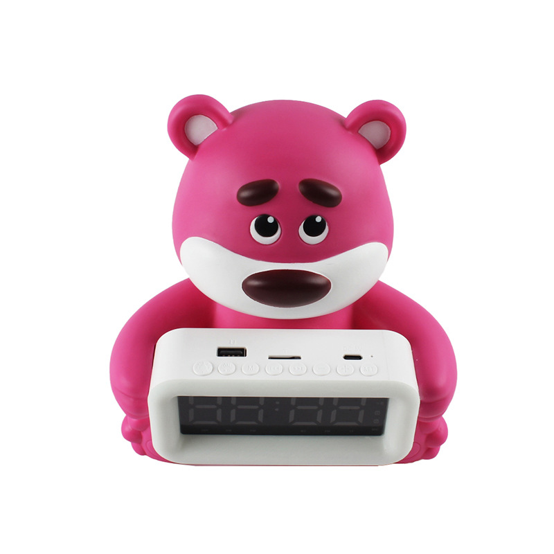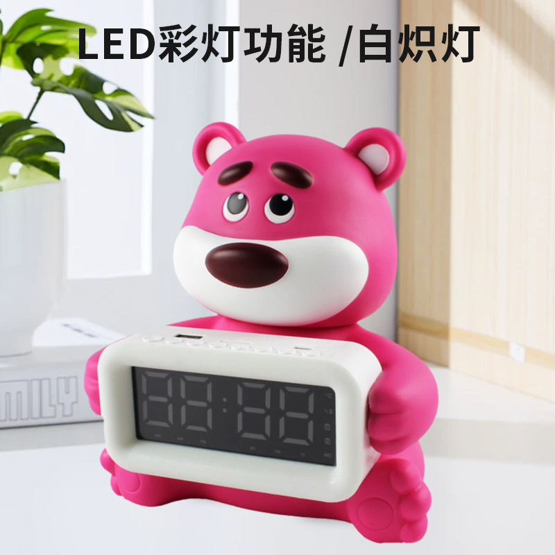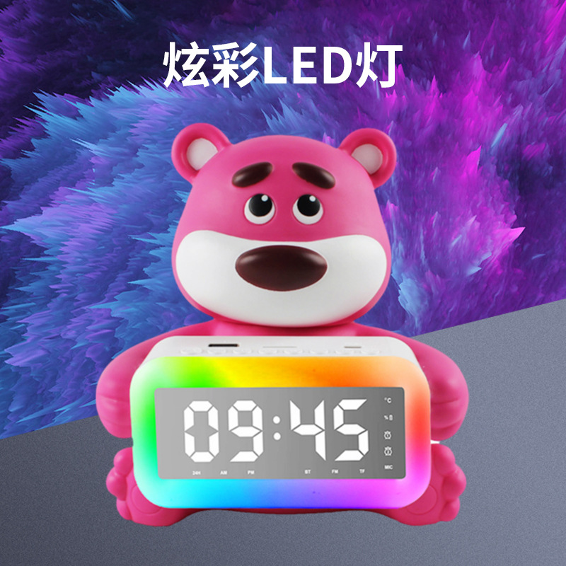 跨境新品草莓熊太空人时钟闹钟蓝牙音响RGB公仔卡通音箱时钟闹钟