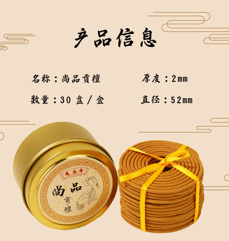 2小时30盘便携装尚品贡檀盘香香薰淡雅家用室内熏香