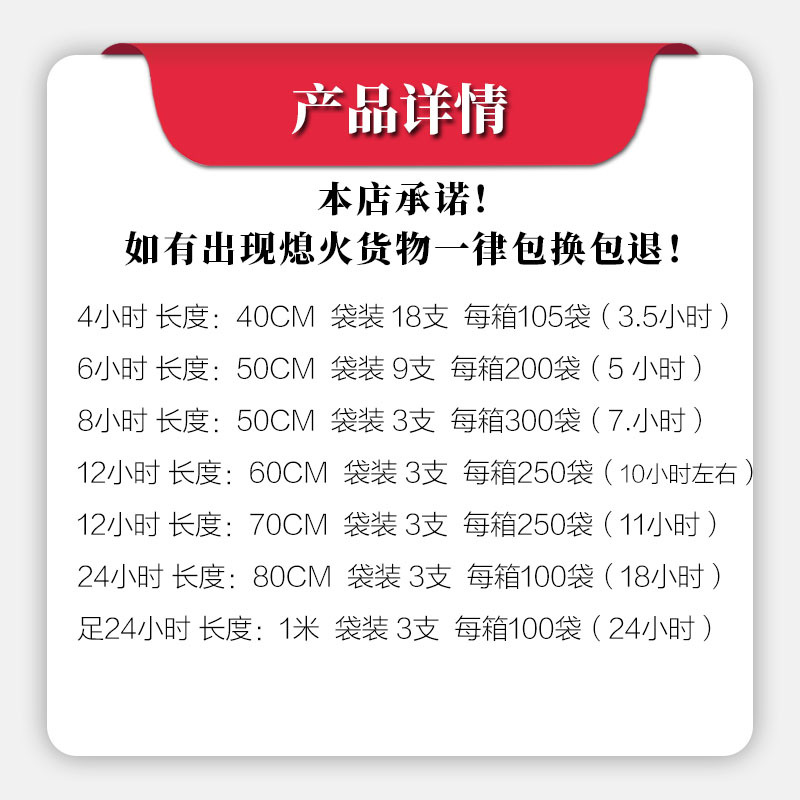 | 红色-足12小时-70cm-每包3支-250包/箱 | USD $0.29 | 4313 piece available |