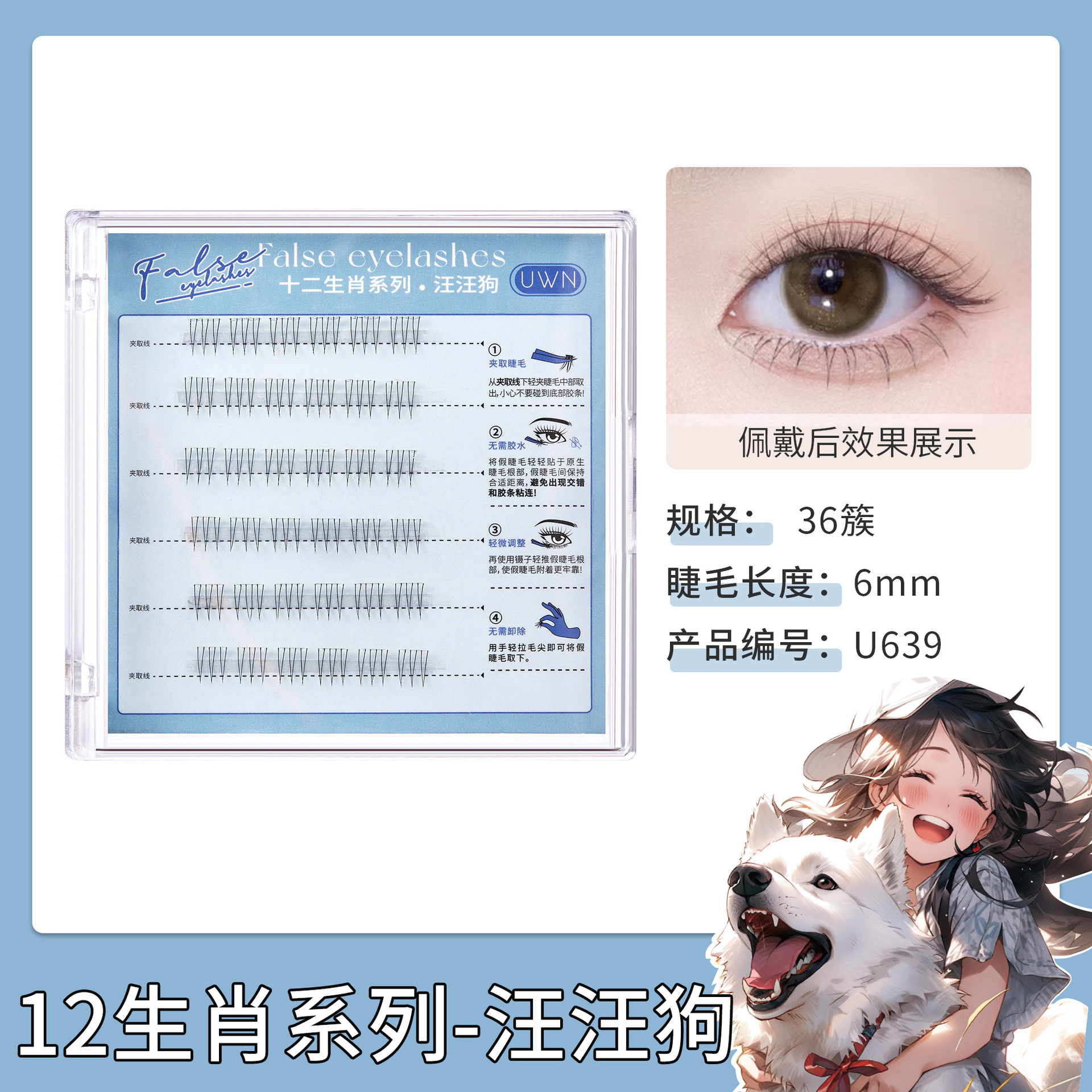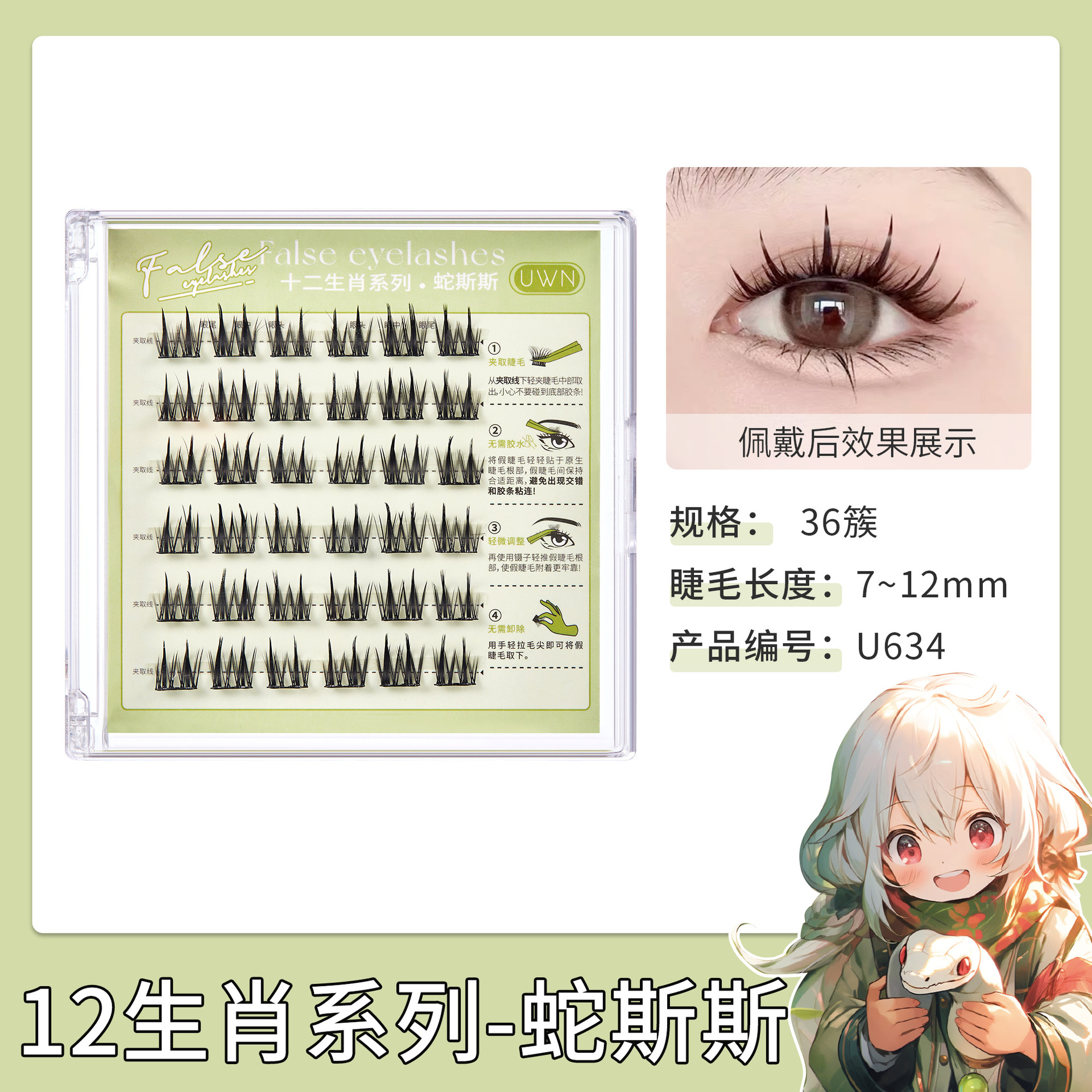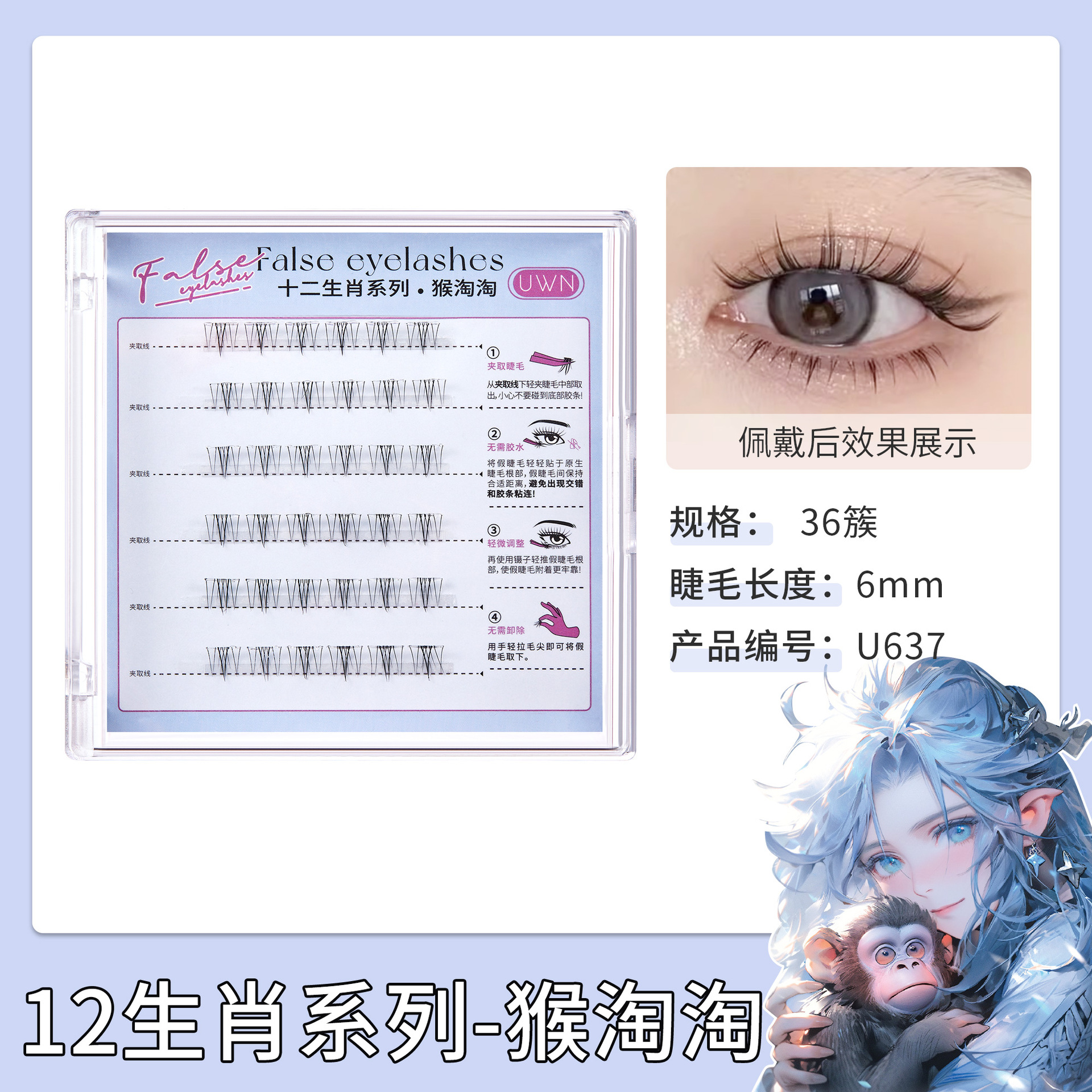 十二生肖系列免胶假睫毛单簇小恶魔浓密自然新手懒人自粘免胶睫毛