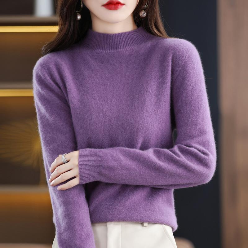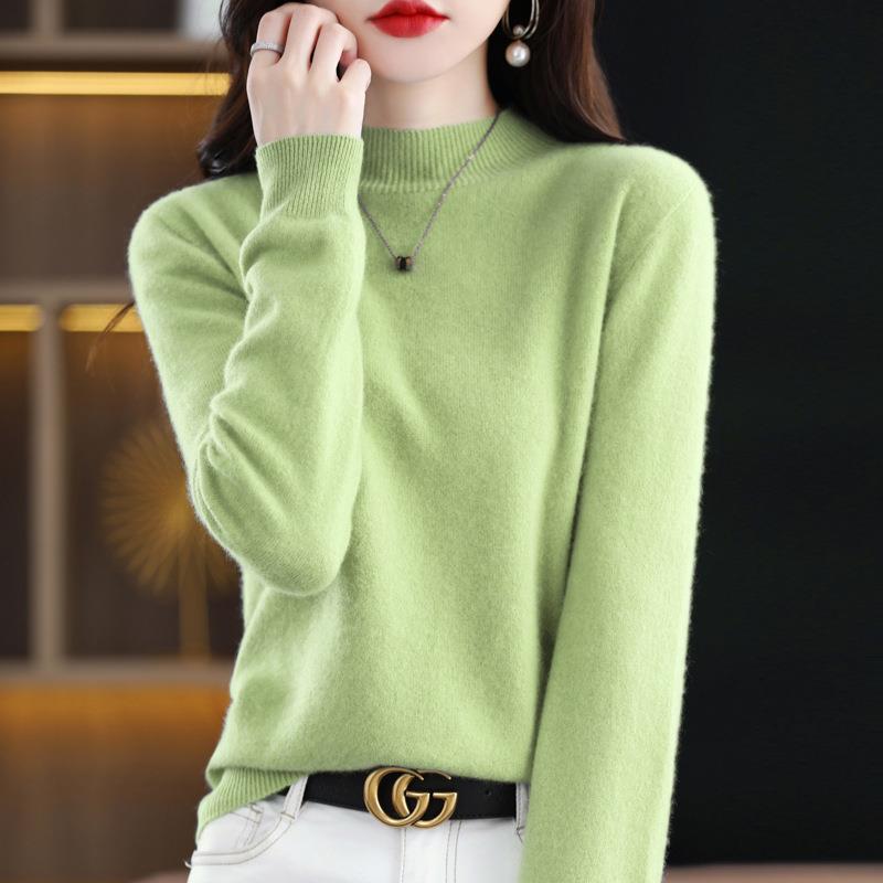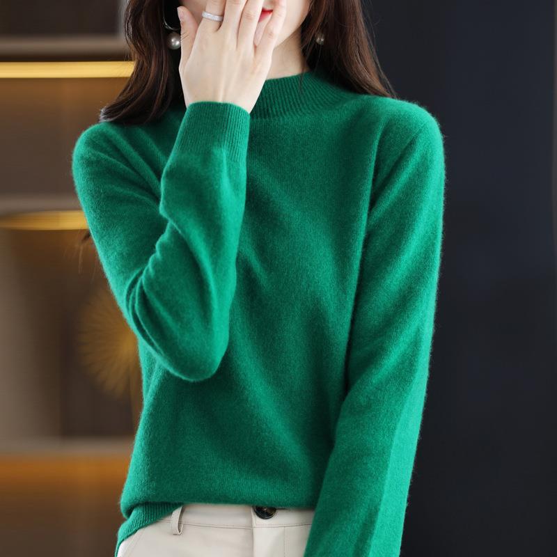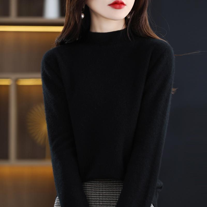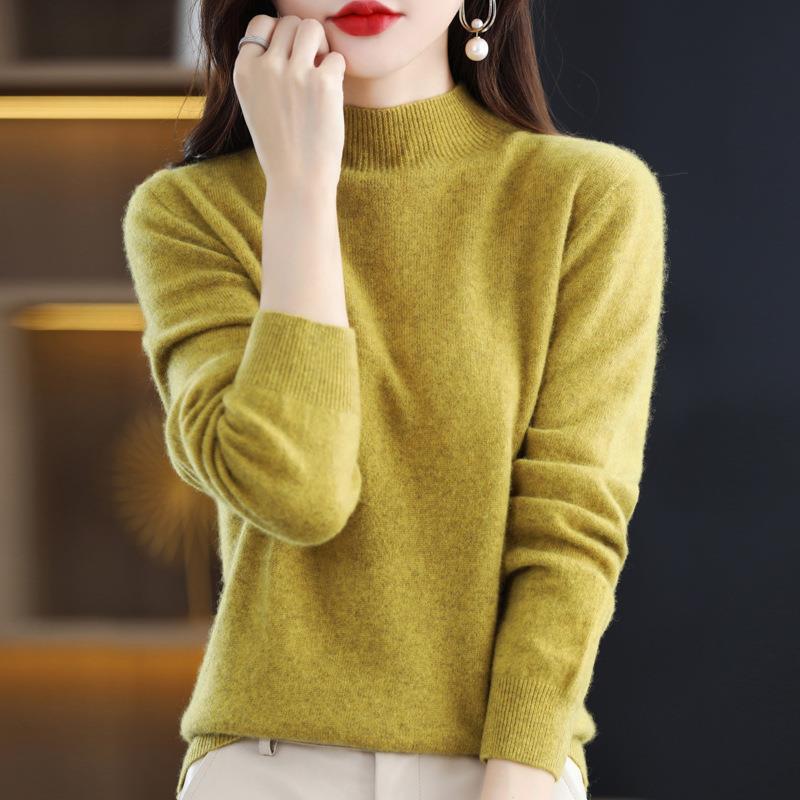 美丽诺女一线成衣百搭纯羊毛衫纯色半高领长袖上衣修身气质打底衫