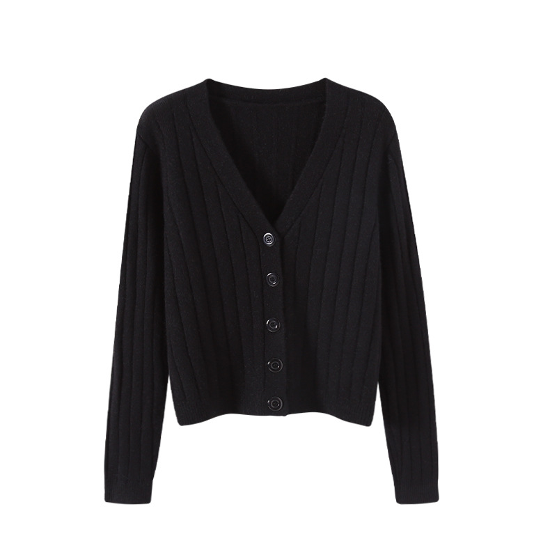 2022秋冬短款外搭宽松网红长袖v领毛衣针织衫开衫外套上衣女批发