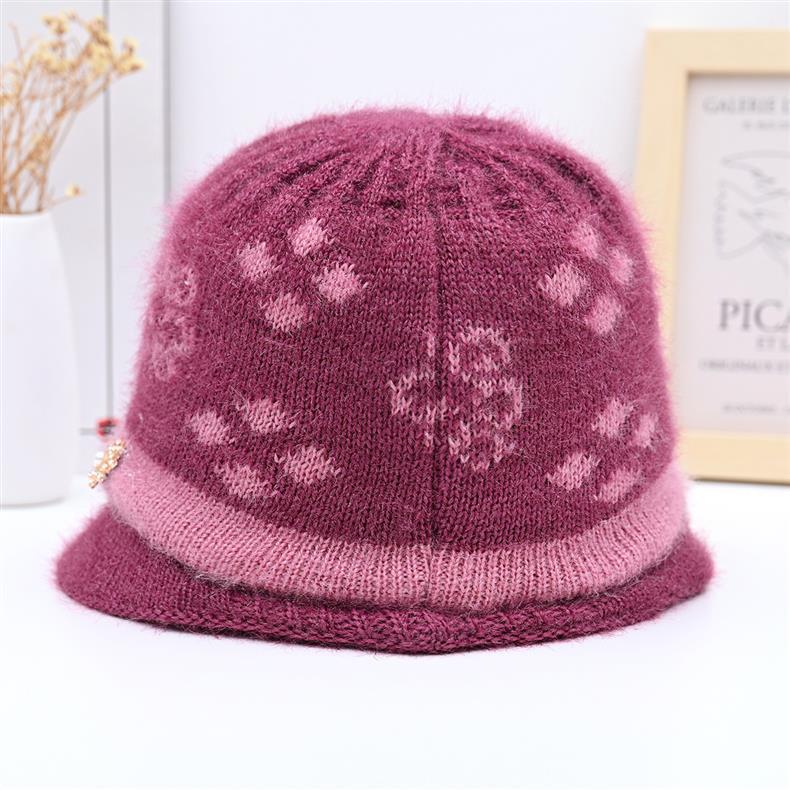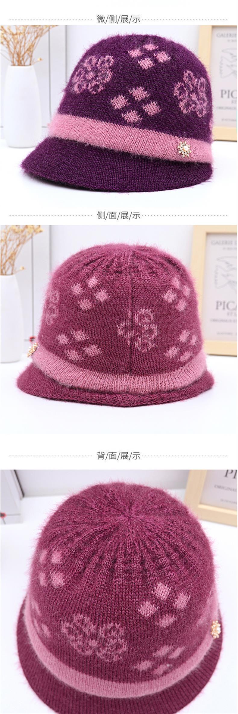 冬季新款中老年妈妈毛线帽女老太太护耳大檐加绒厚保暖防寒针织帽