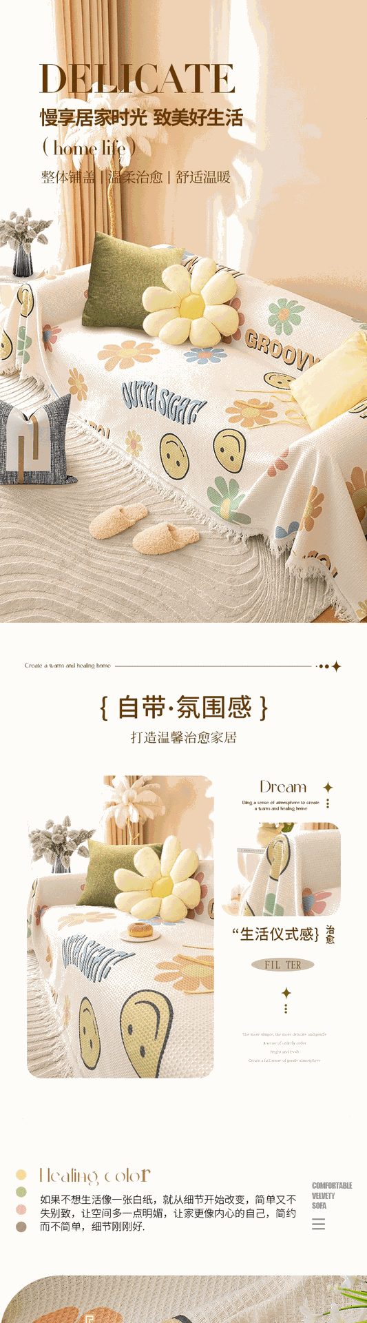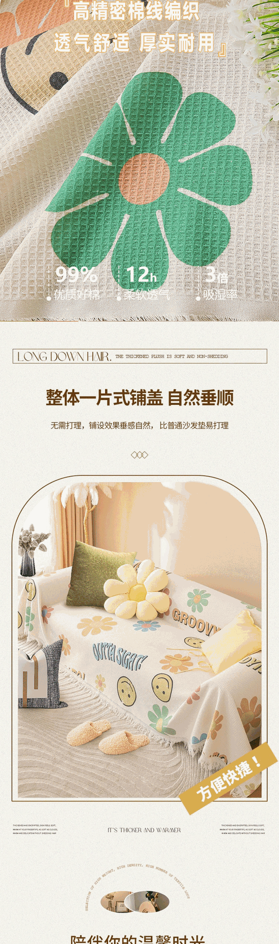 华夫格通用万能沙发垫巾盖布北欧风全盖沙发垫套罩盖毯轻奢高级感