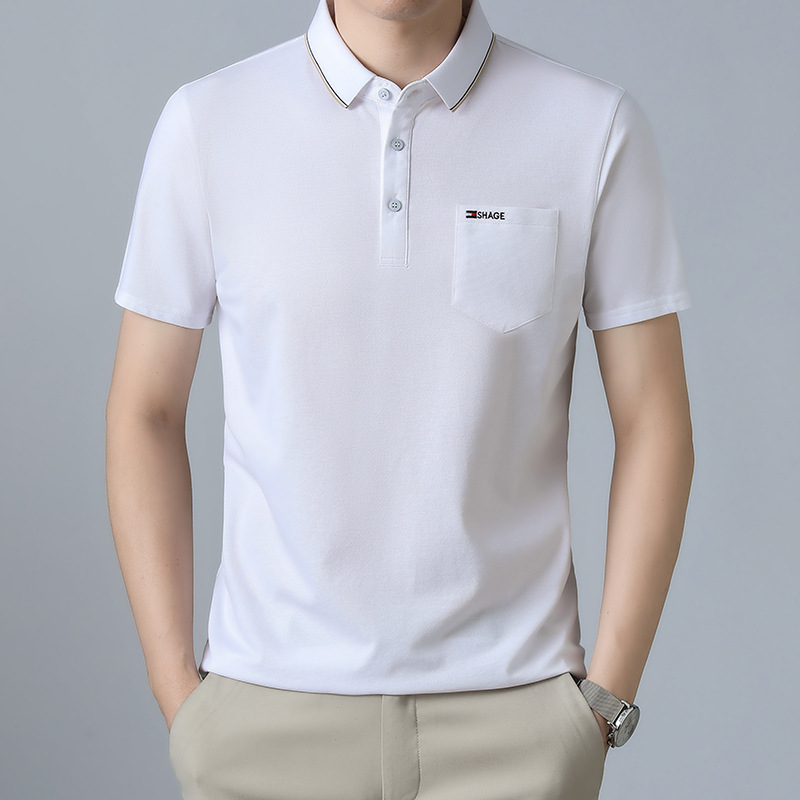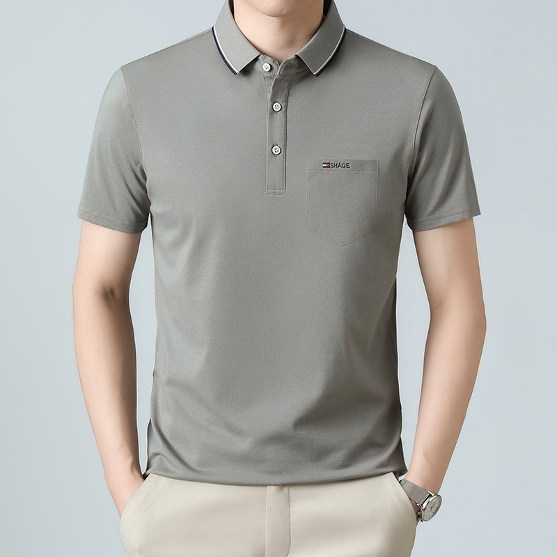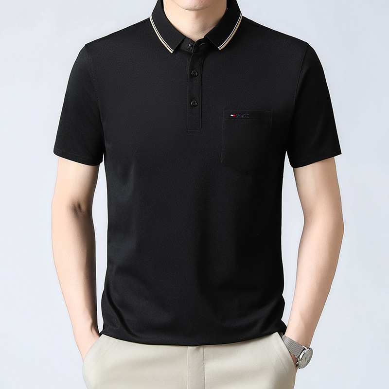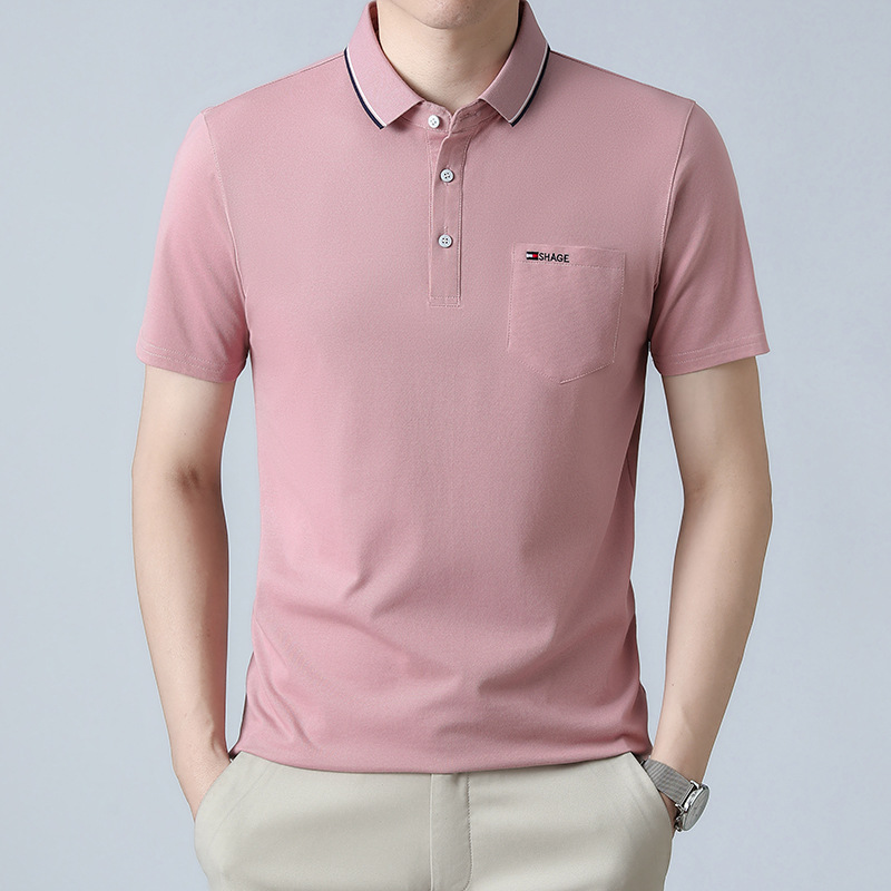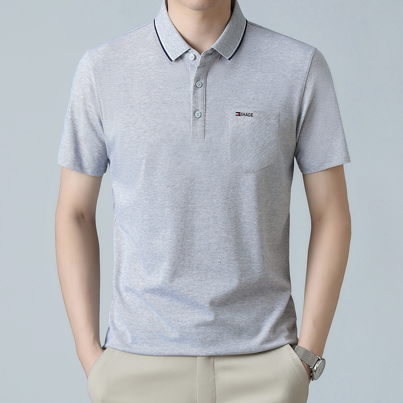 丝光棉短袖t恤男士休闲潮流有口袋上衣中年爸爸夏装桑蚕丝polo衫