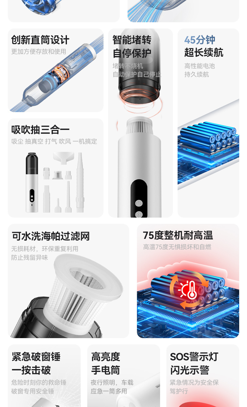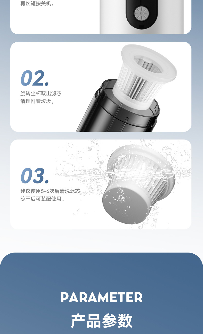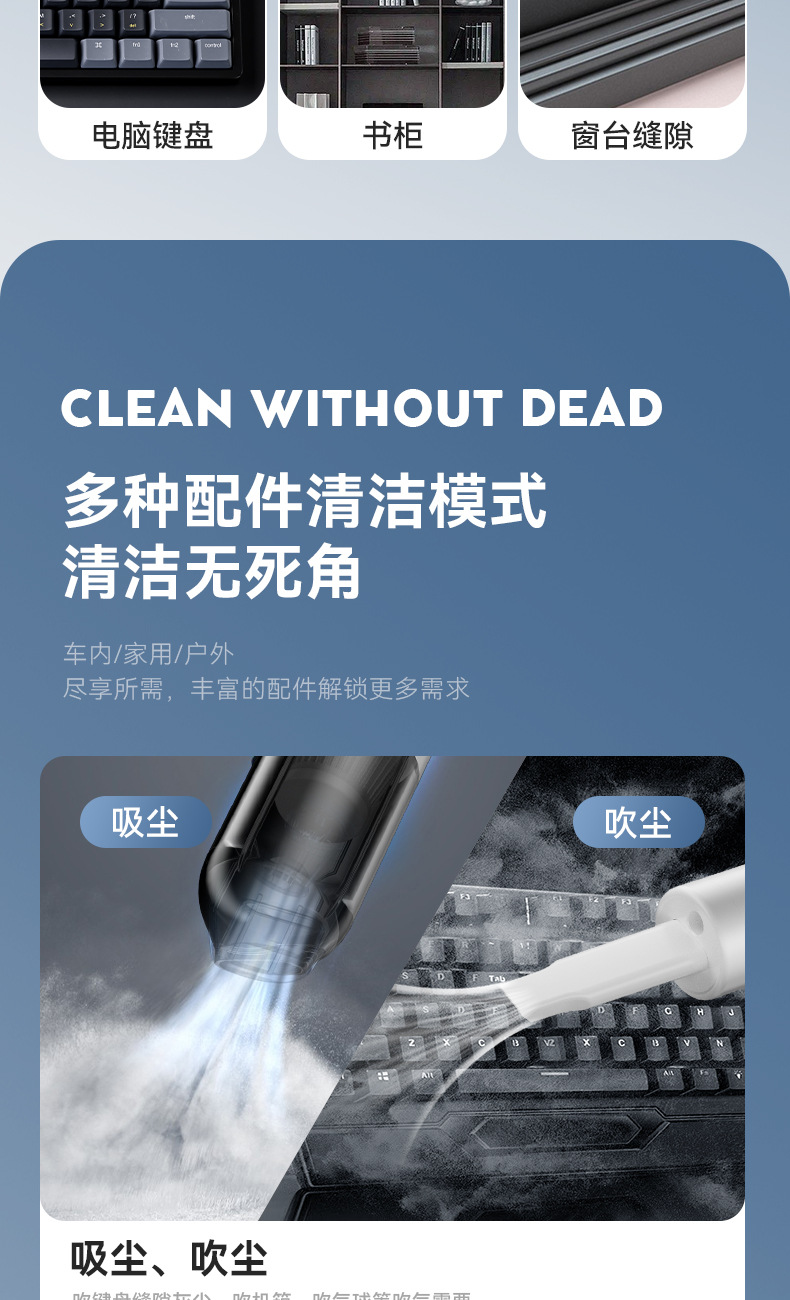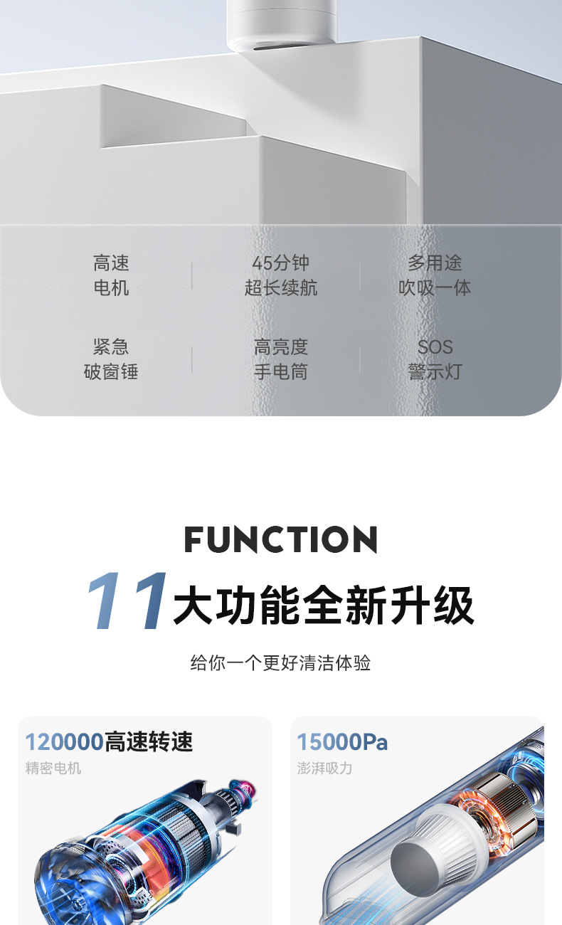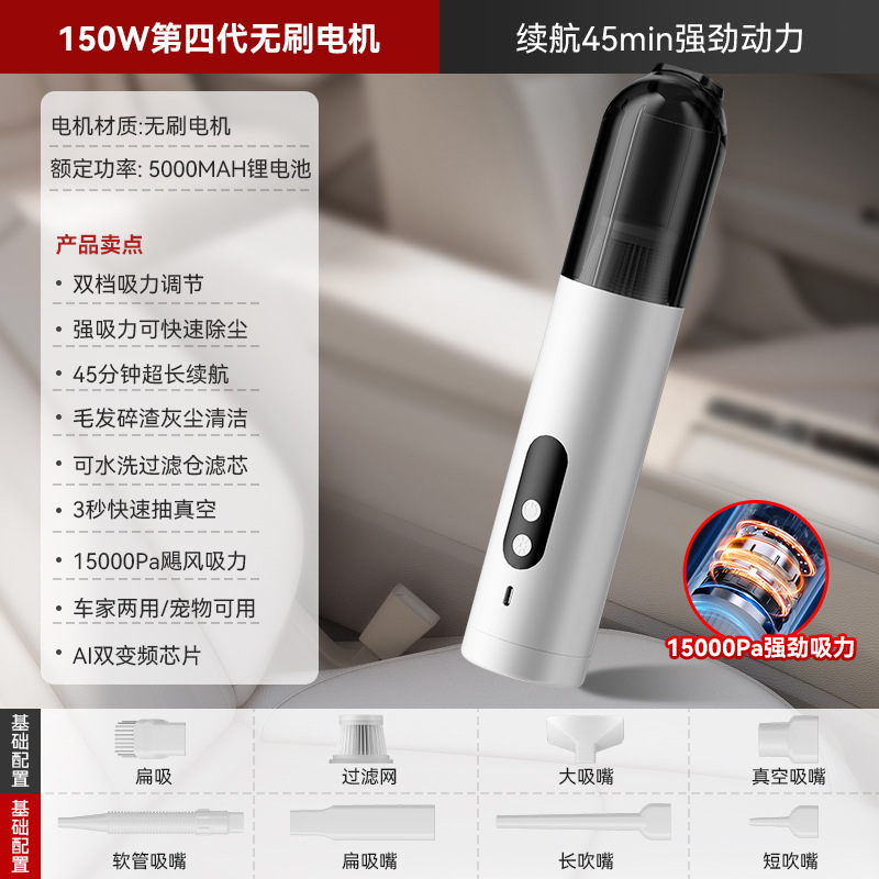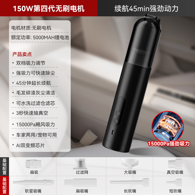 跨境新款无刷便携车载吸尘器大吸力迷你车用吸尘器手持无线吸尘器