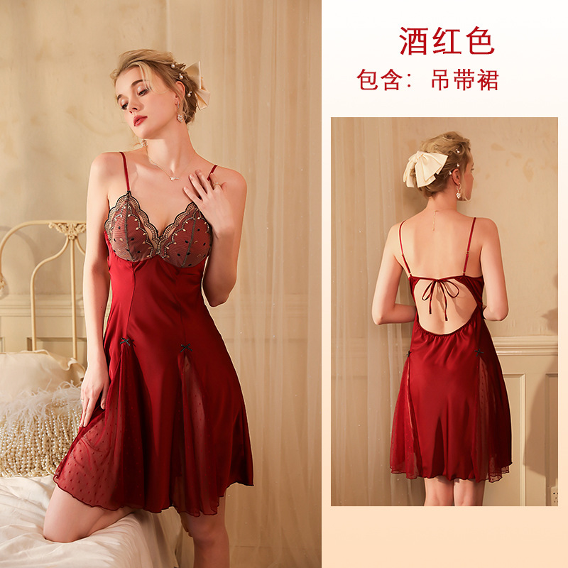 菲韵性感睡衣缎面睡裙家居服性感吊带睡裙蕾丝拼接睡衣女批发 427