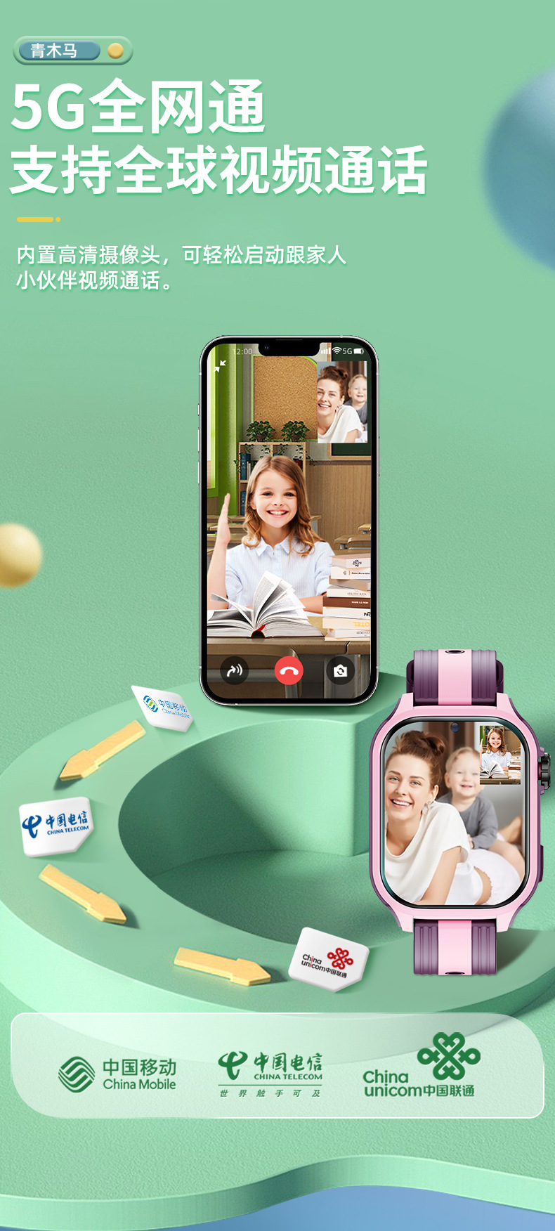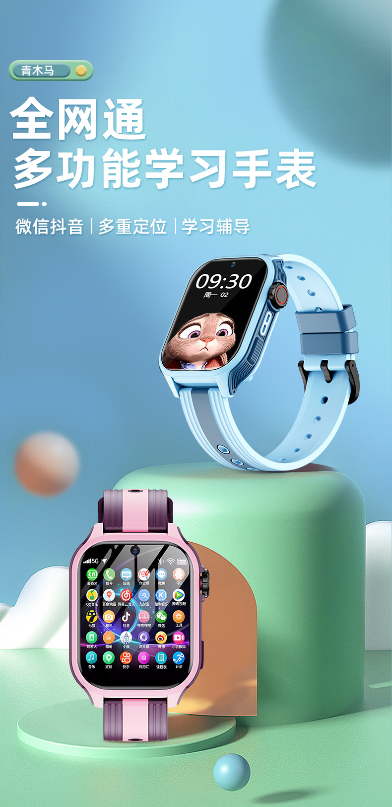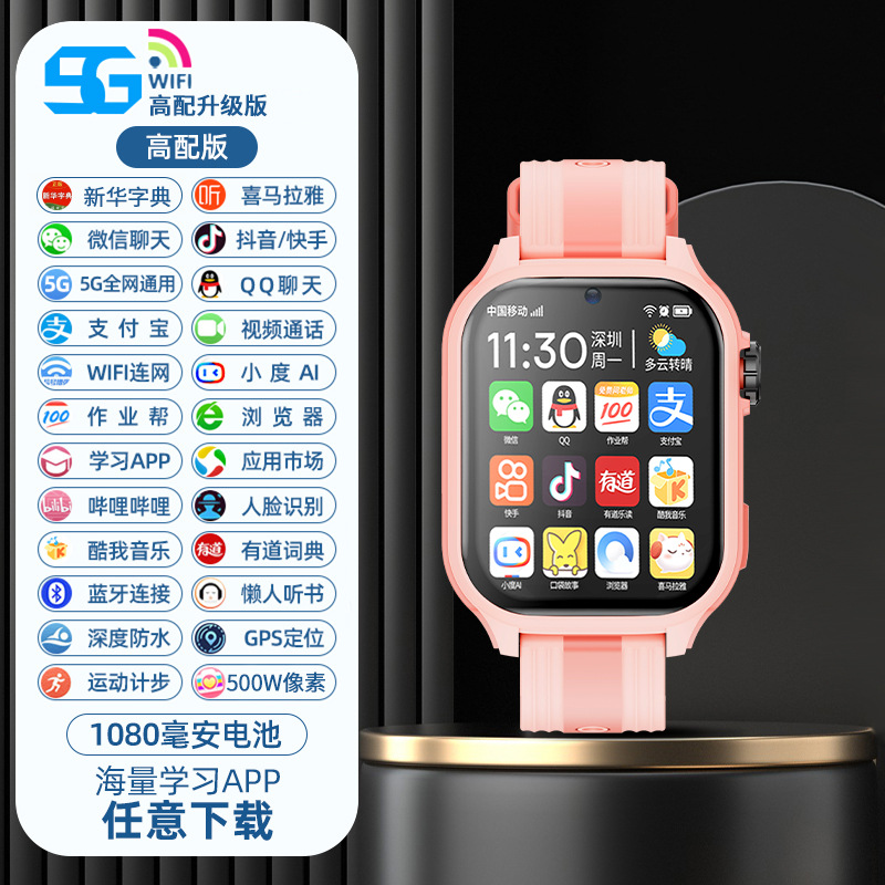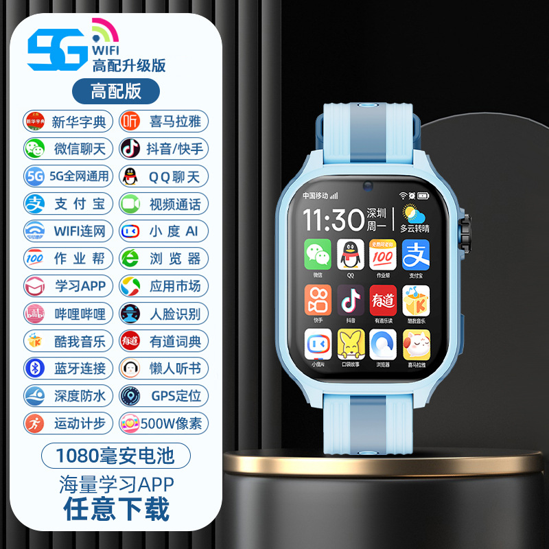 新款儿童防水手表5G全网通学生电话手表多功能可插卡下载视频通话