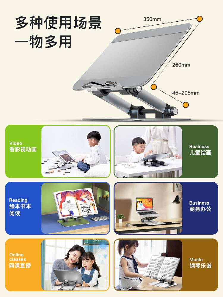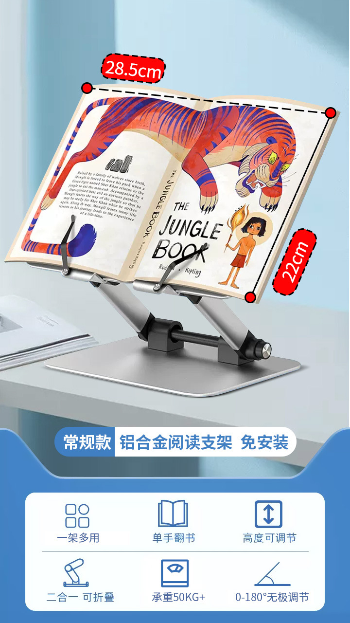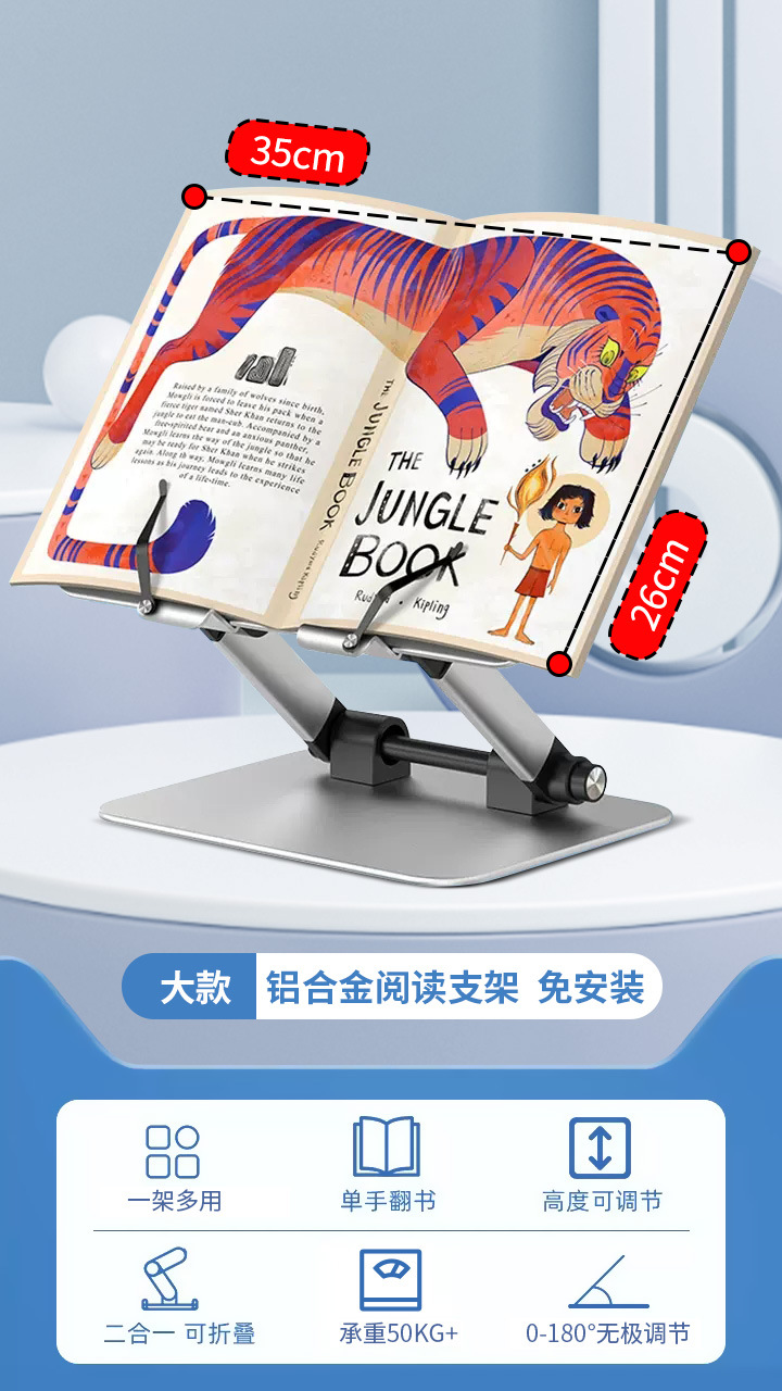 新款跨境可升降儿童阅读架学生多功能阅读书架 铝合金折叠看书架