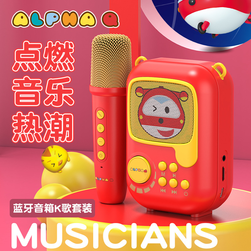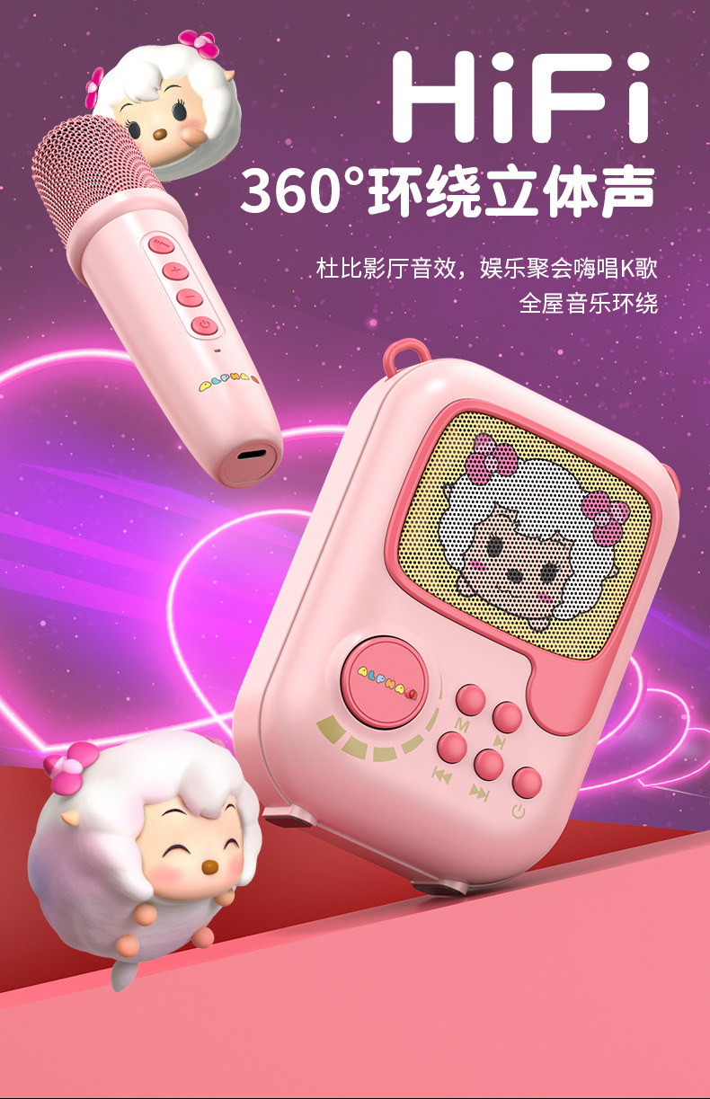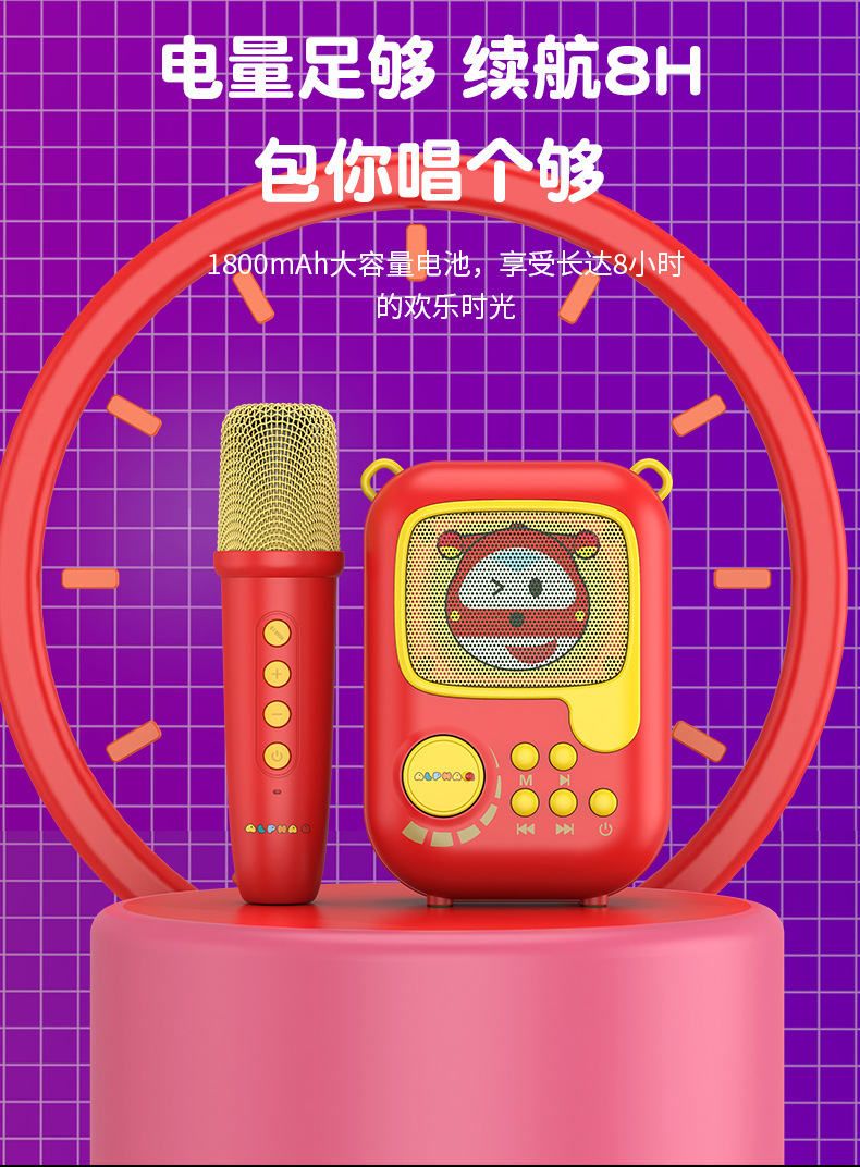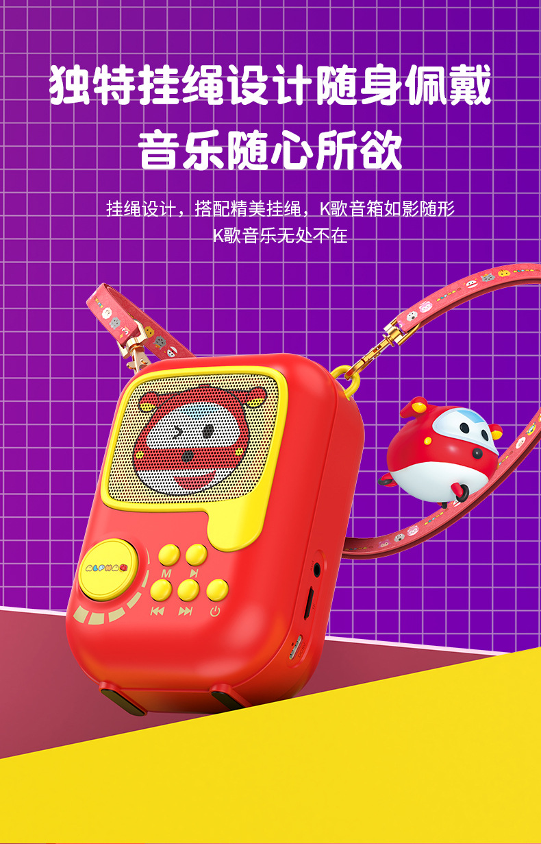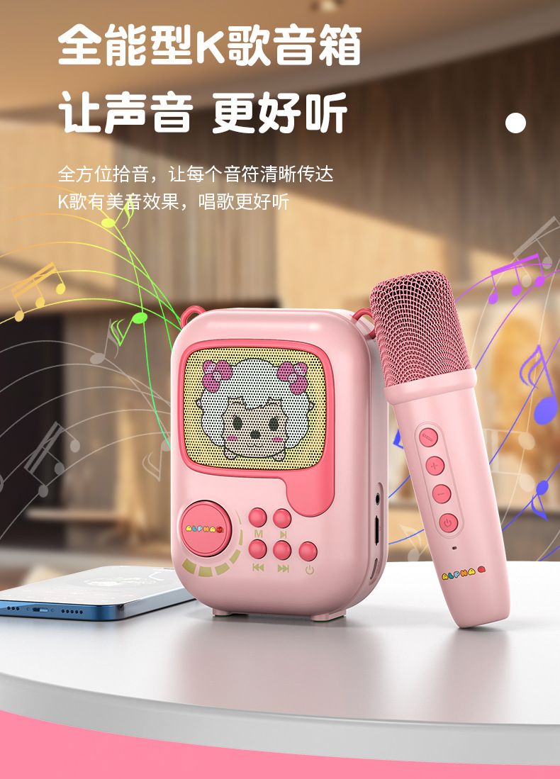新款卡通无线k歌音箱一体麦克风套装 k歌音响户k歌