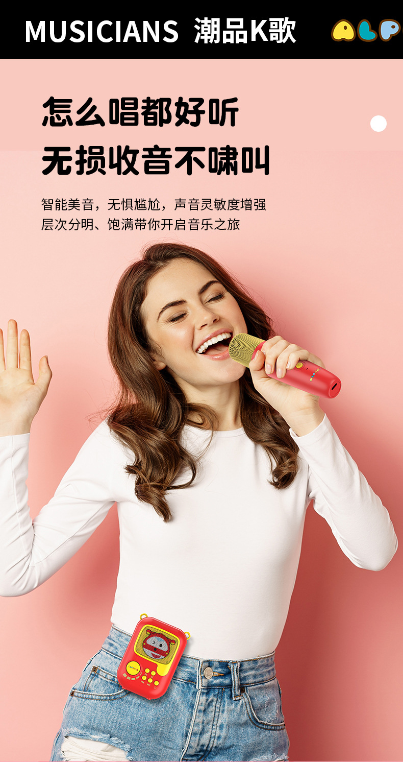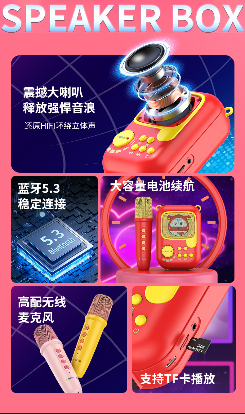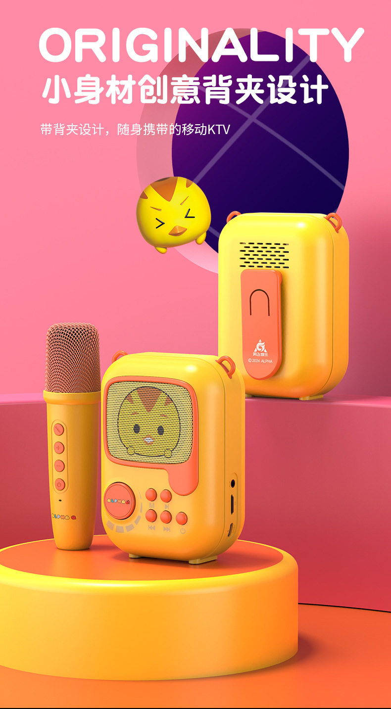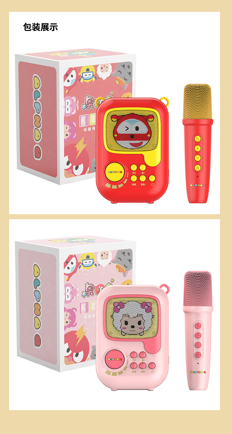 新款卡通无线k歌音箱一体麦克风套装 k歌音响户k歌