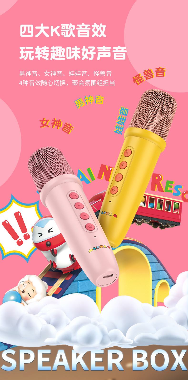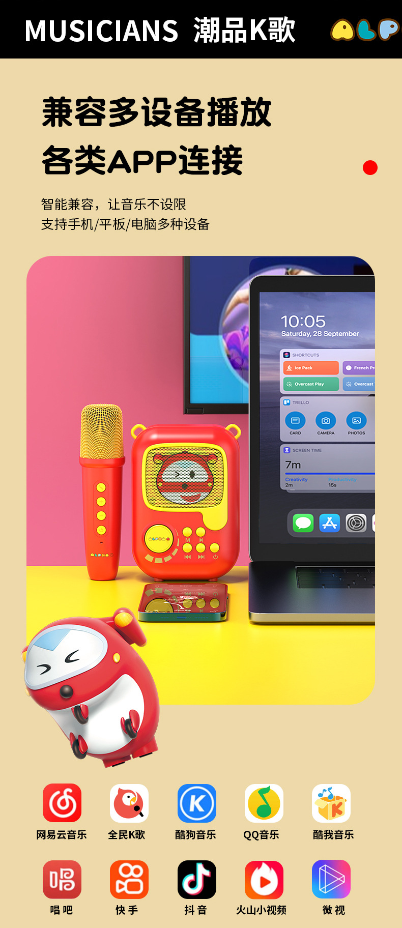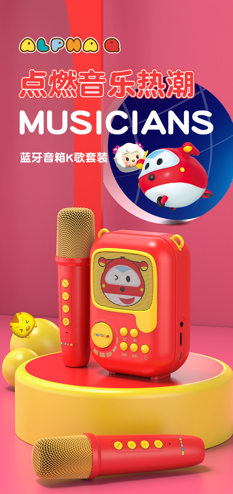 新款卡通无线k歌音箱一体麦克风套装 k歌音响户k歌