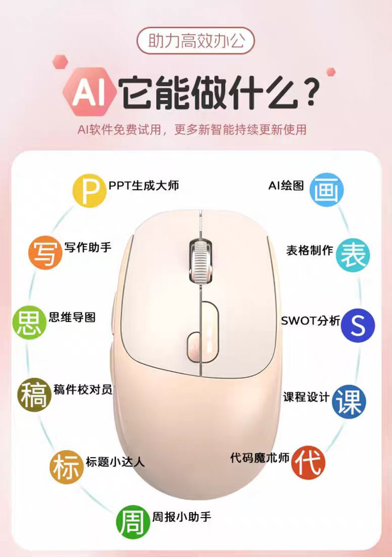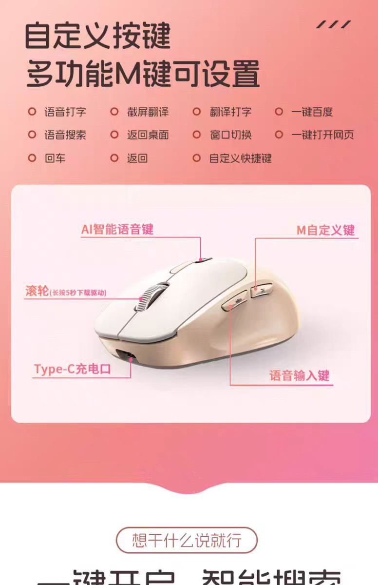 新款智能ai写作语音鼠标 智能无线ai鼠标 AI蓝牙静音办公鼠标批发
