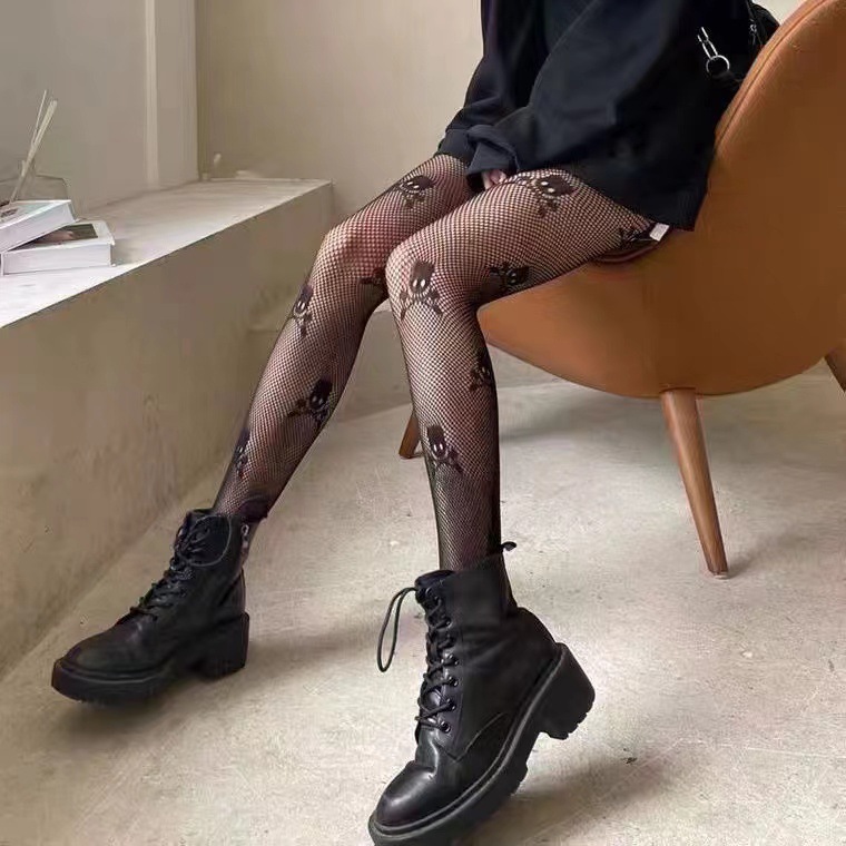 欧美性感网眼镂空网格连裤提花女打底渔网黑色网袜网眼鬼头连裤袜
