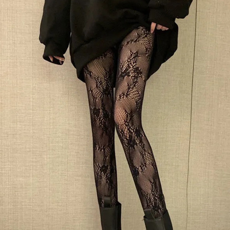 月亮烫钻黑丝渔网袜性感透肉连裤袜黑色白色网格玫瑰女花藤蝴蝶结