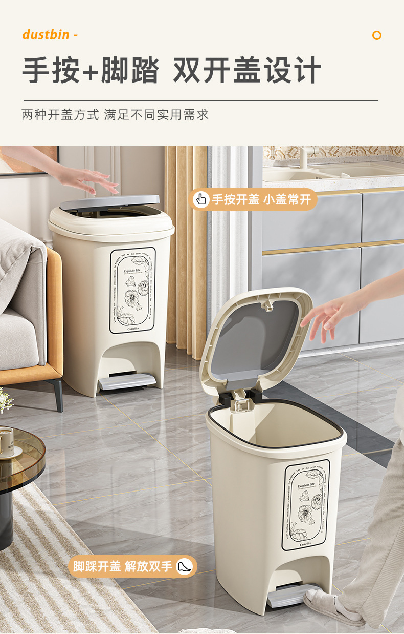 家用厨余垃圾桶简约带盖按压脚踏式卫生间办公室大容量密封纸篓