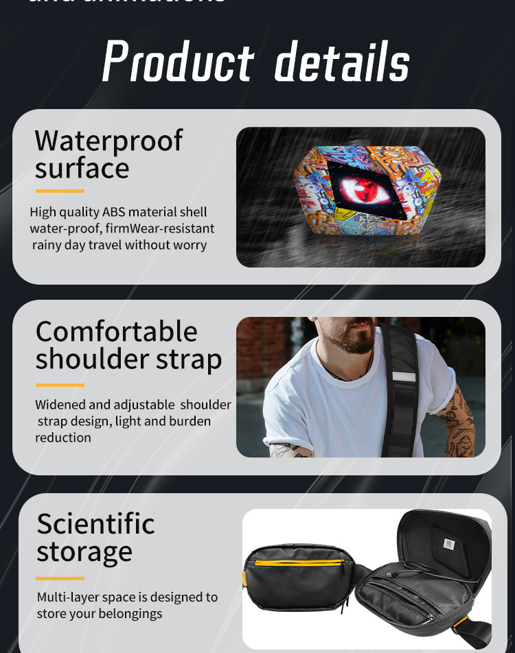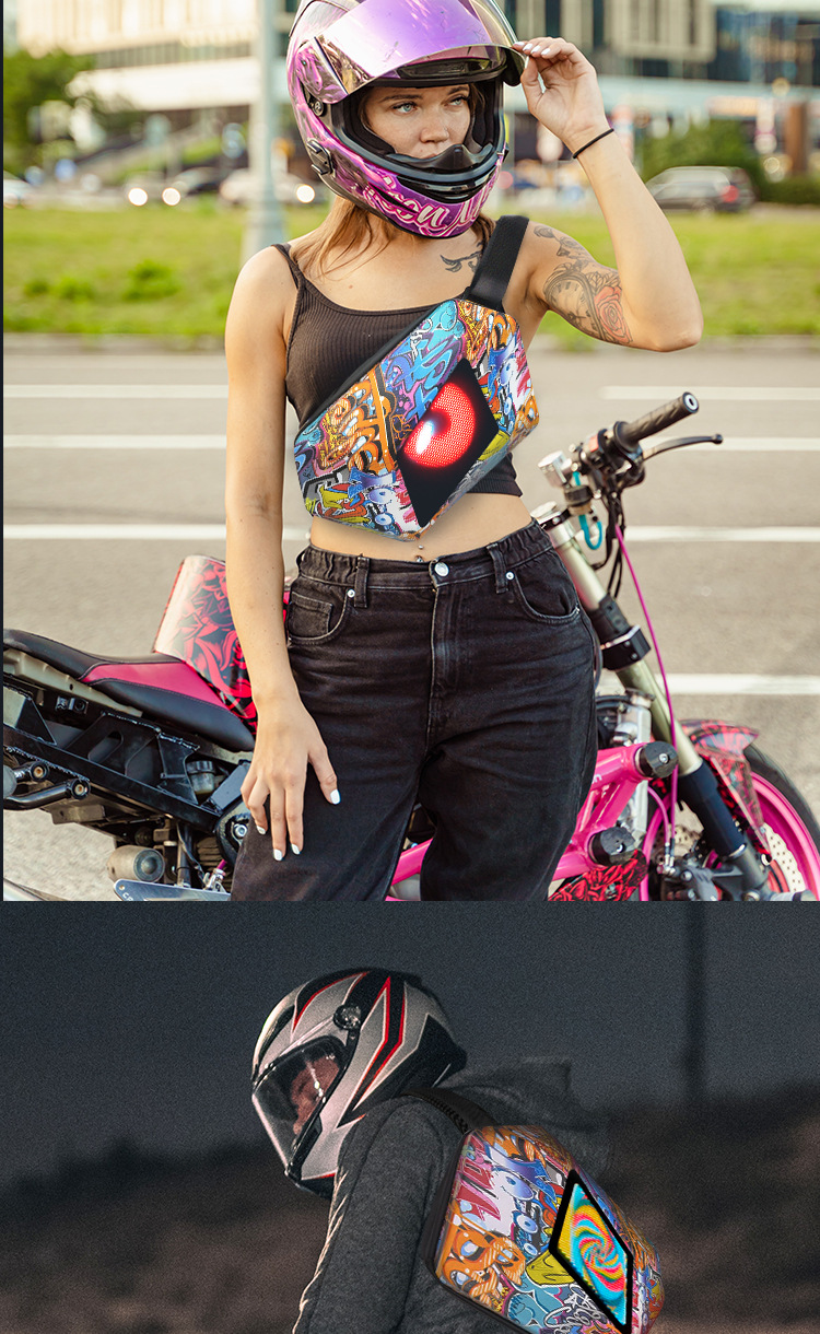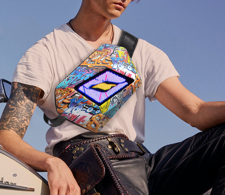 LED挎包LOY骑士包恶魔之眼防水斜背旅游发光包蓝牙5V涂鸦水转印款