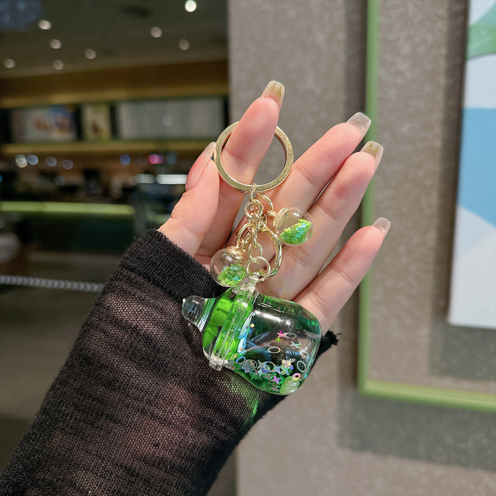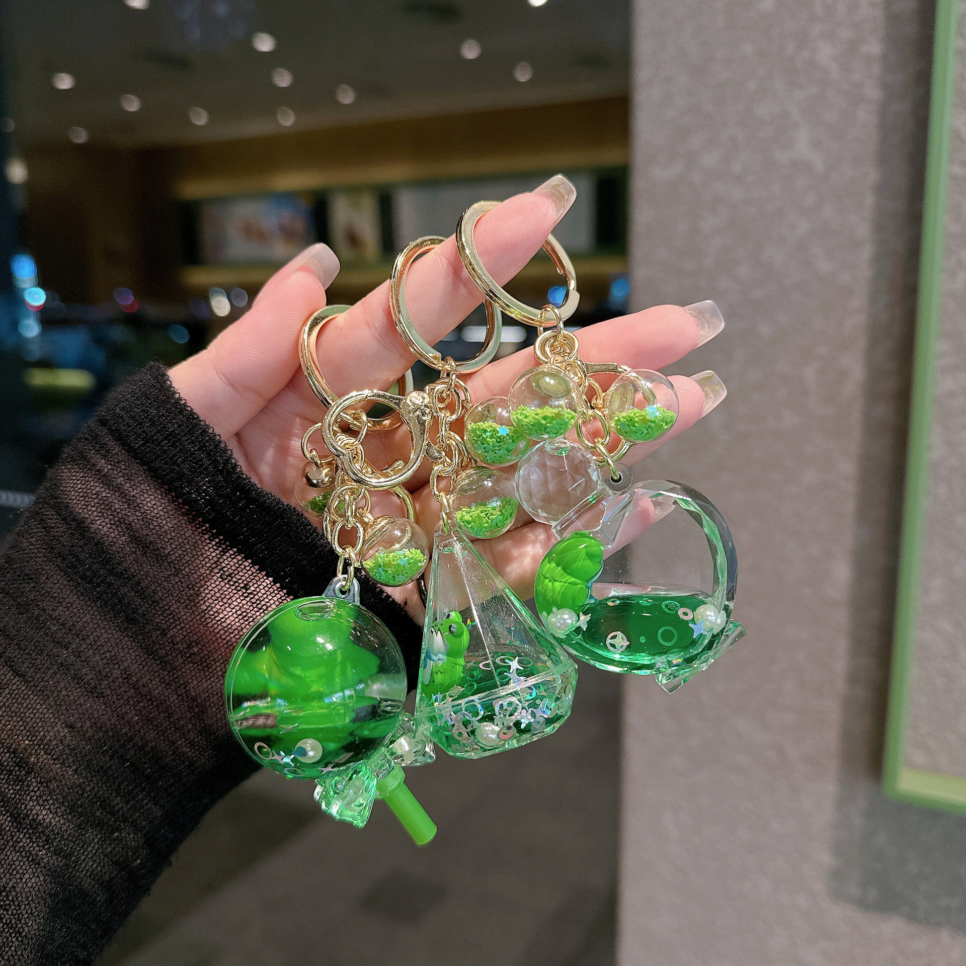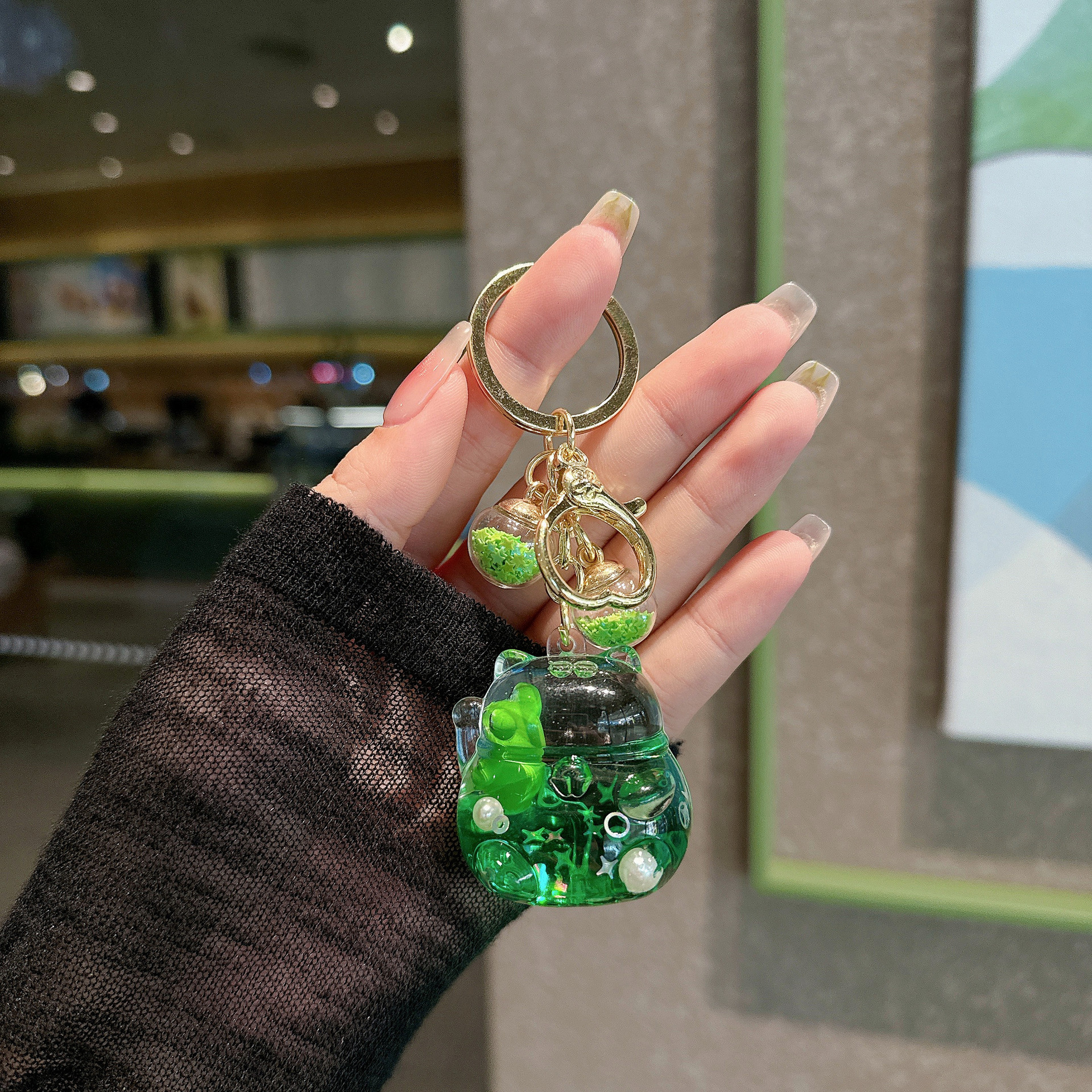 创意卡通清新绿色青蛙漂浮入油流沙瓶钥匙扣包挂件爪机小礼品批发