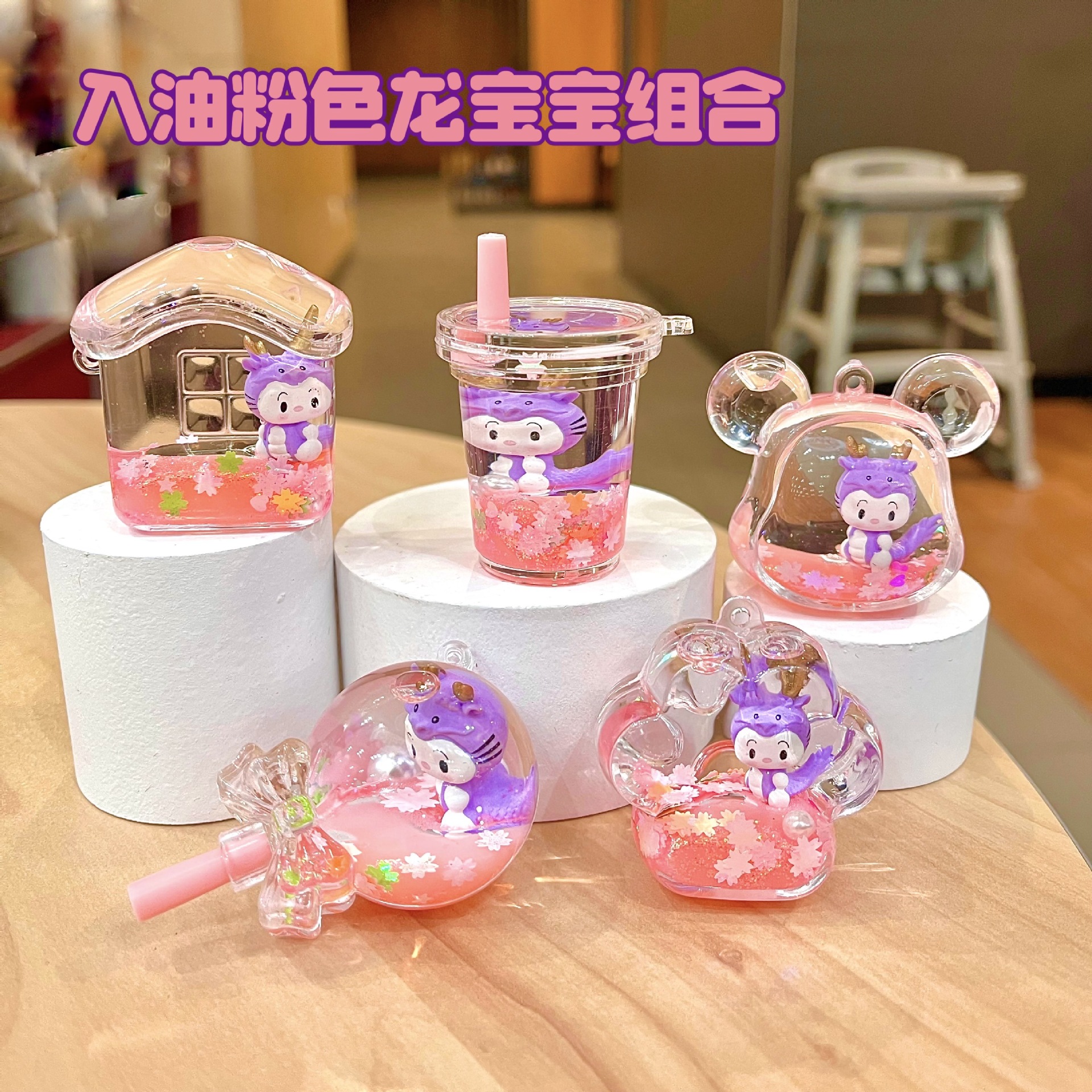 新品亚克力入油流沙瓶抖音夜光汽车三丽鸥公仔钥匙扣配件挂件批发