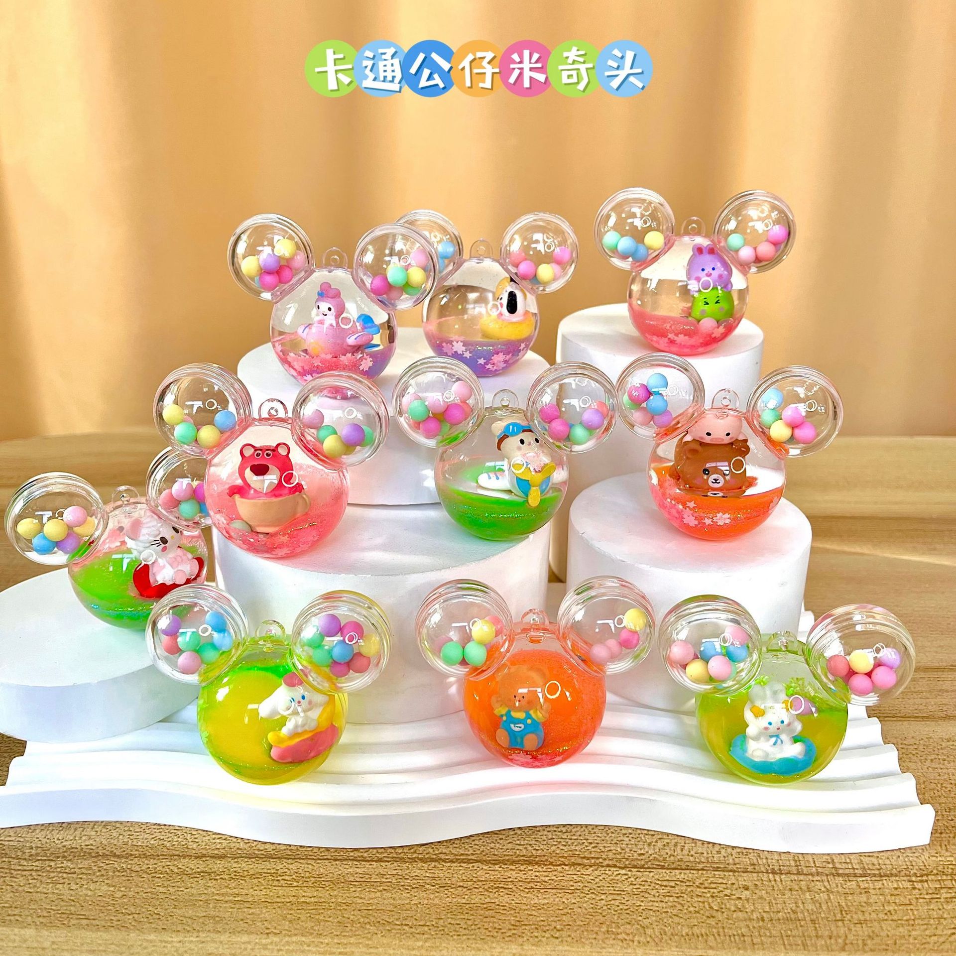 入油流沙瓶批发网红ins粉色玲娜贝儿漂浮瓶钥匙扣小清新桌面摆件