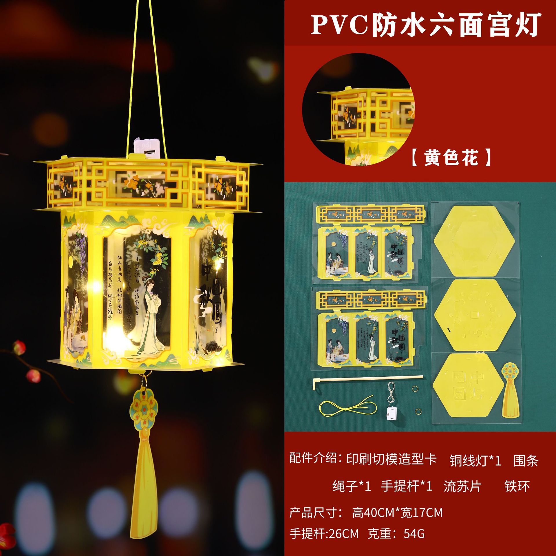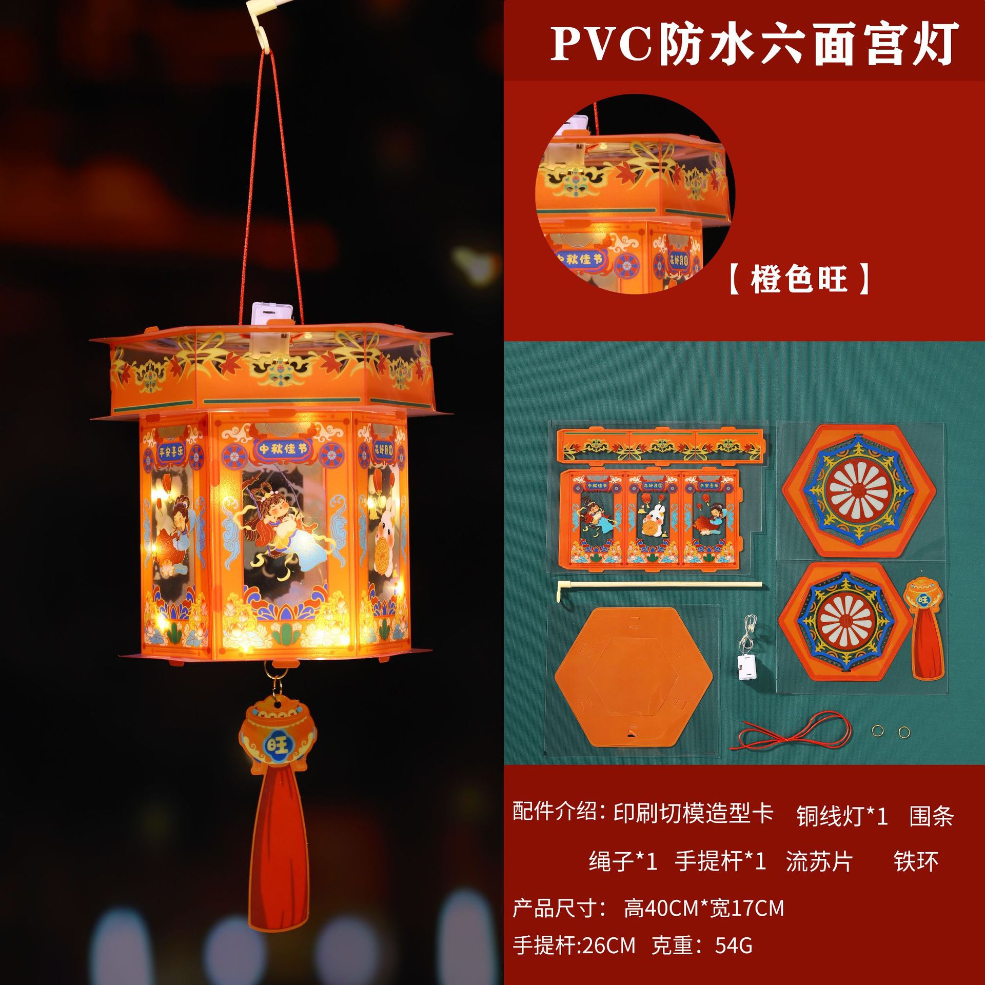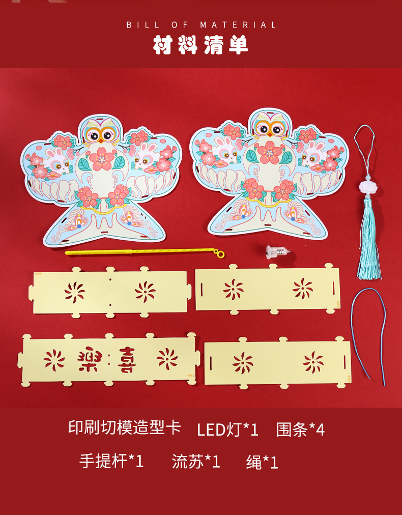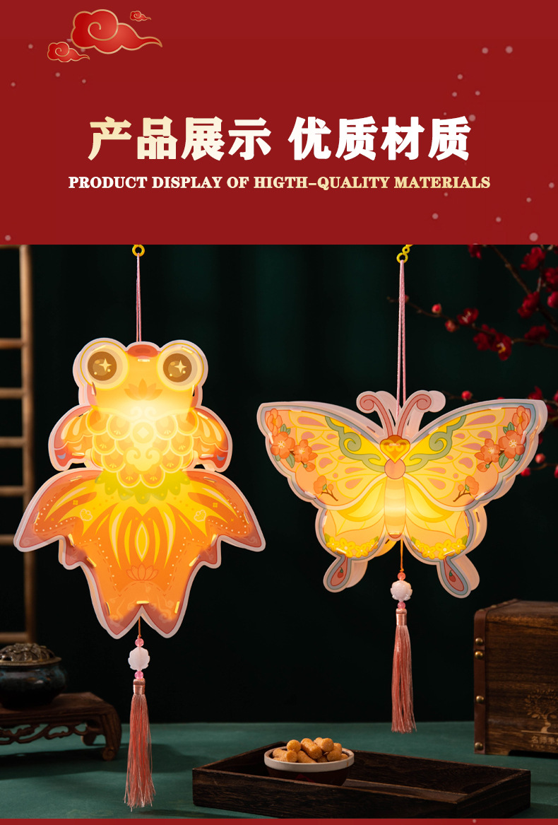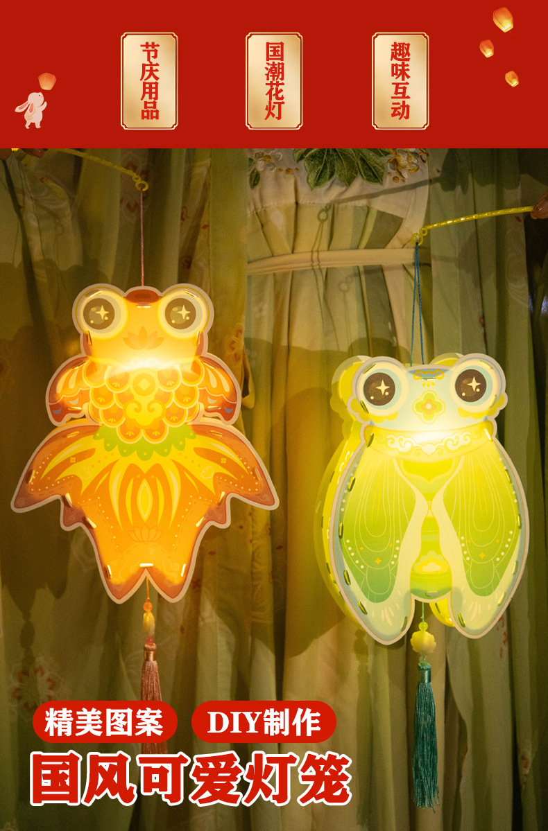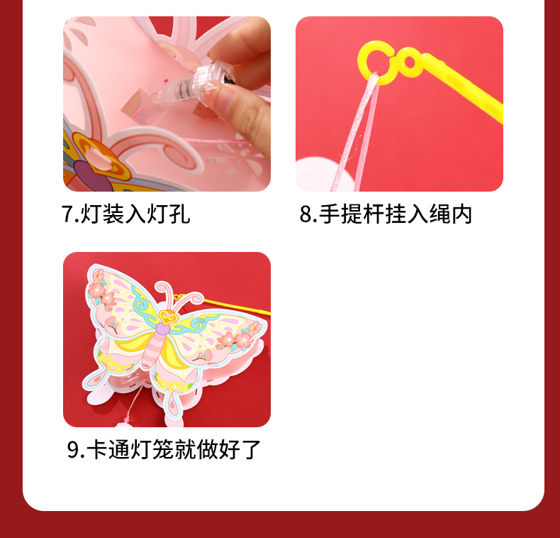 中秋节灯笼手工制作diy材料包幼儿园儿童手提灯笼pvc发光花灯批发