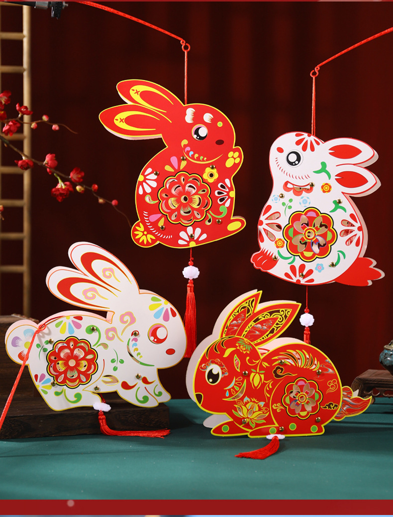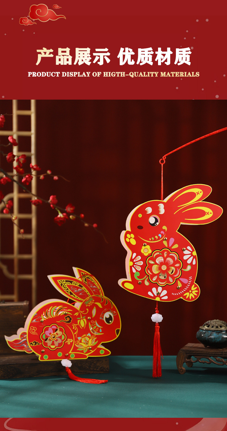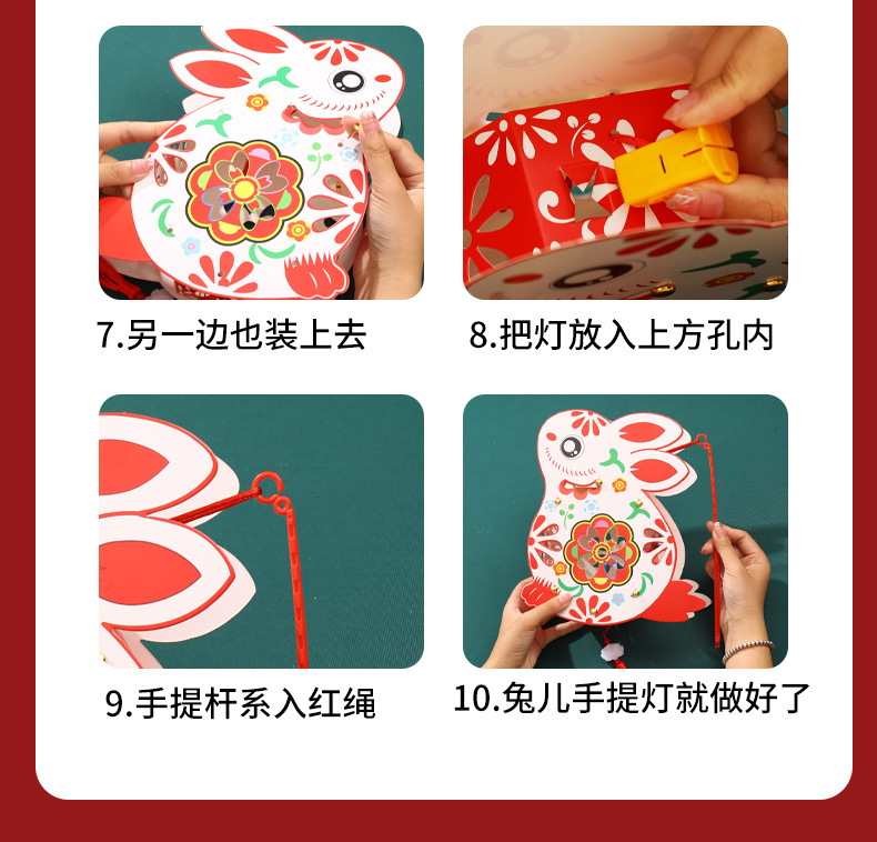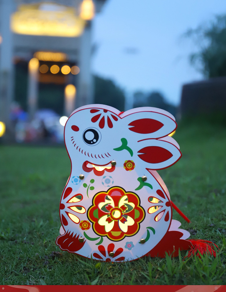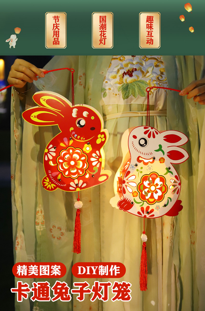 中秋节灯笼儿童diy制作材料包兔子灯笼幼儿园手提发光花灯纸灯笼