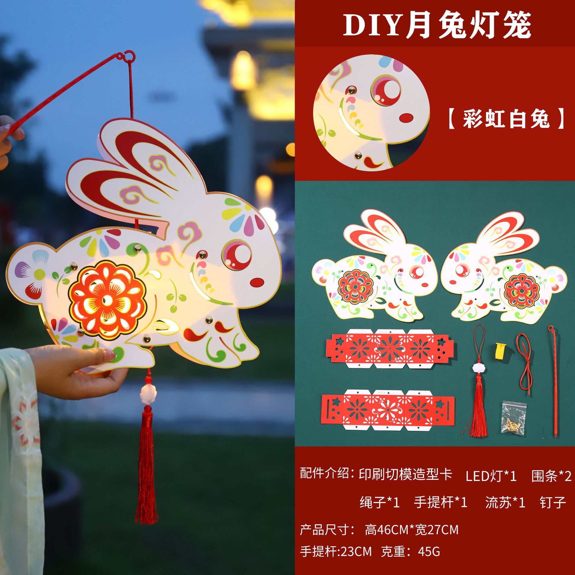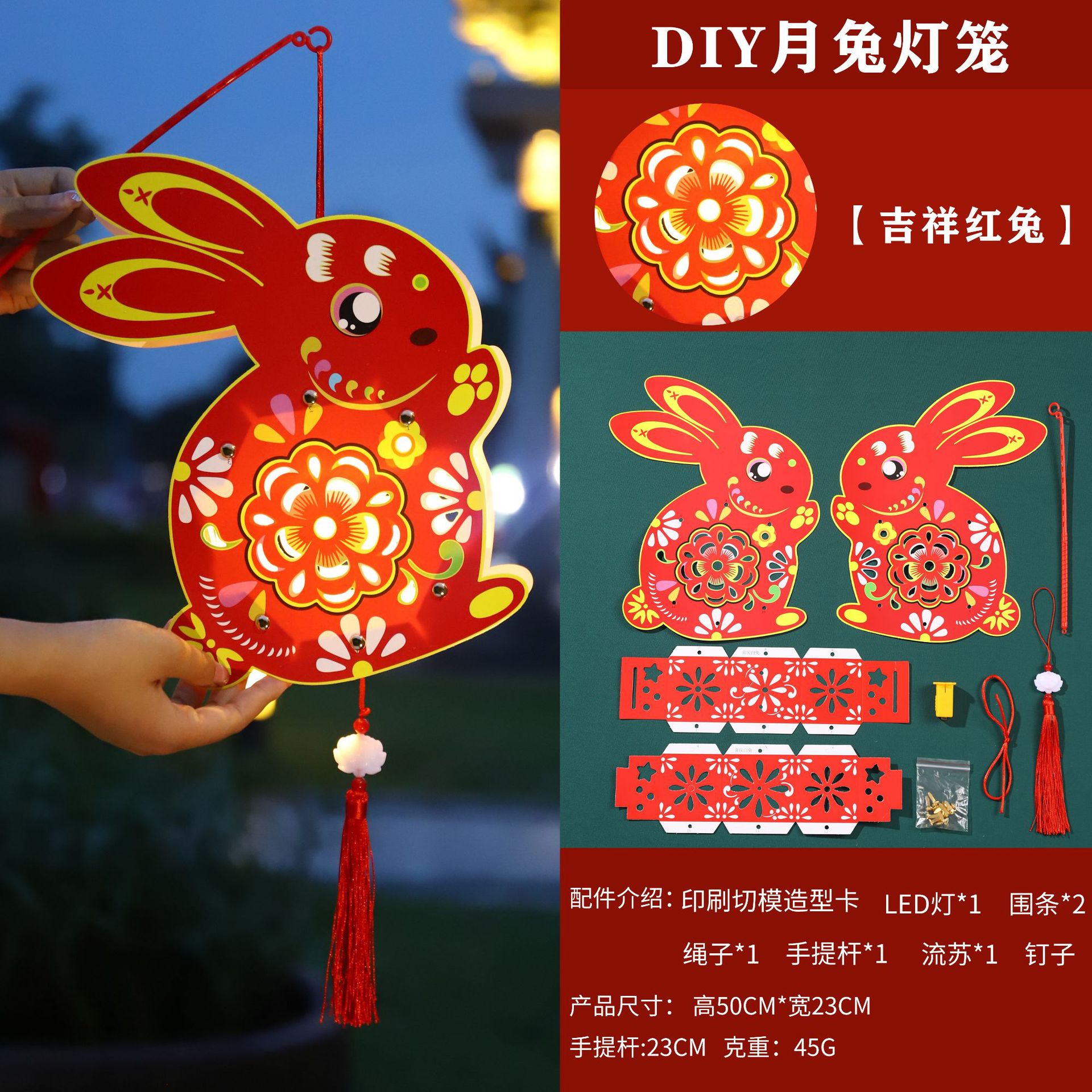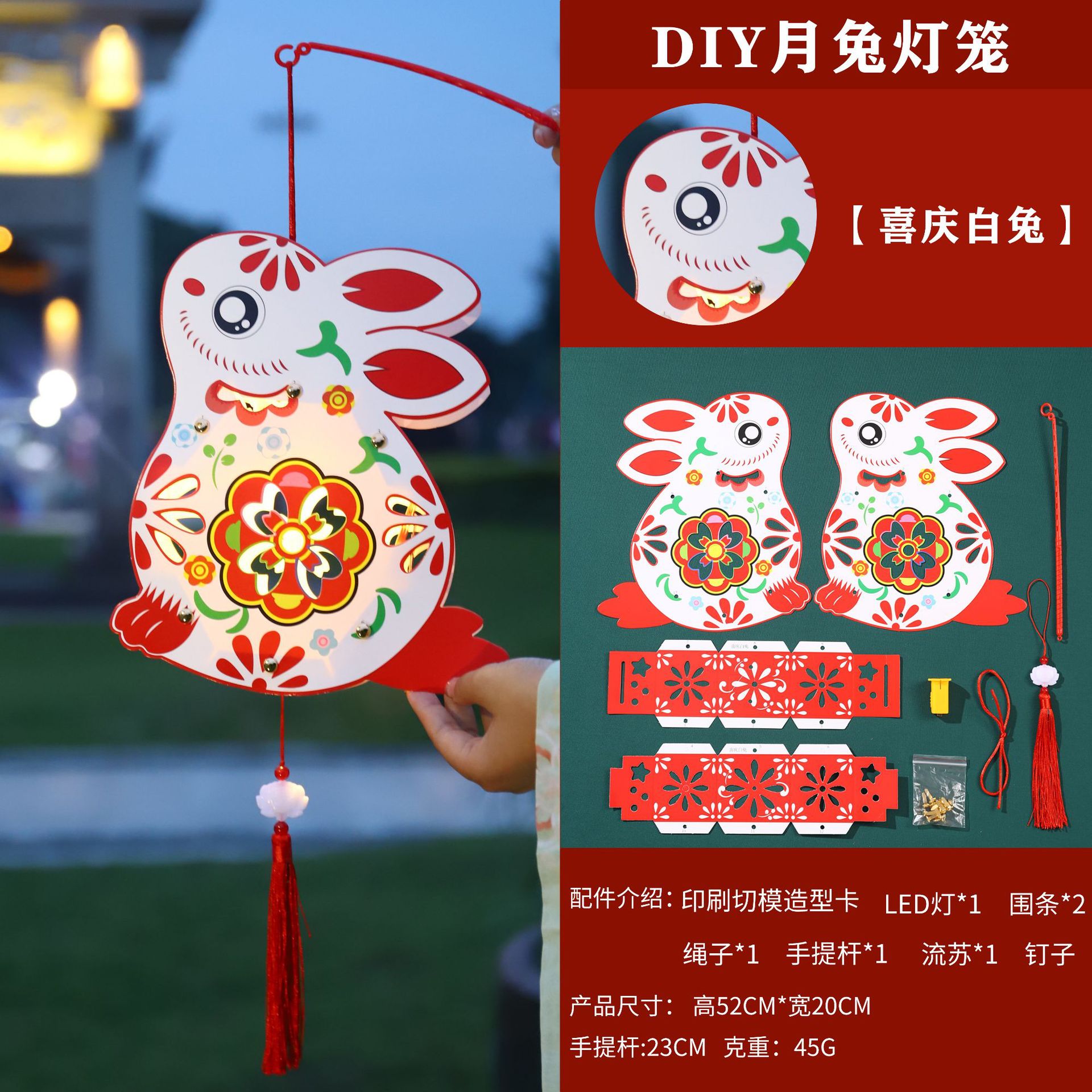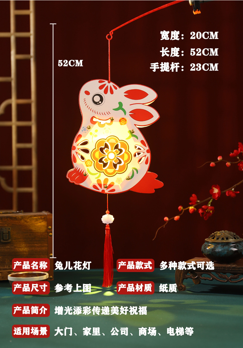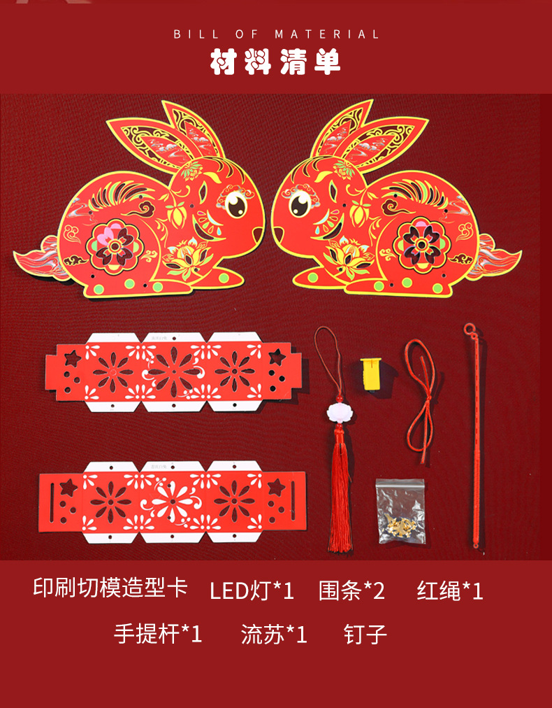 中秋节灯笼儿童diy制作材料包兔子灯笼幼儿园手提发光花灯纸灯笼