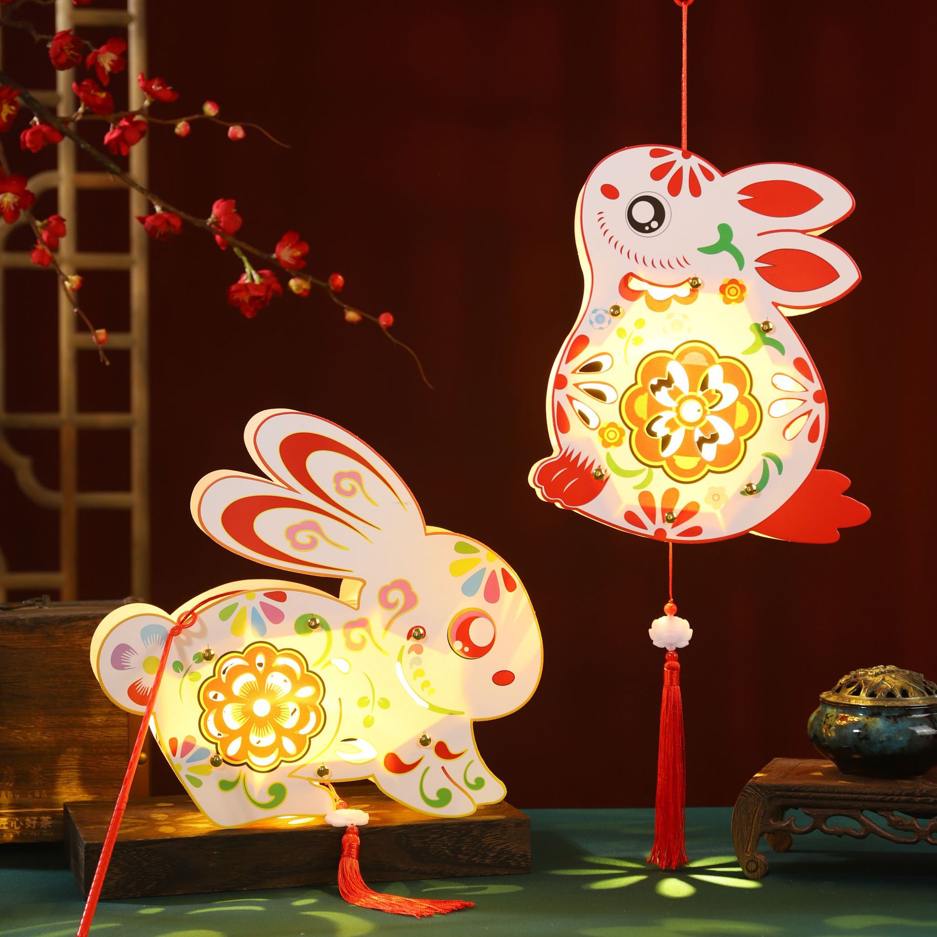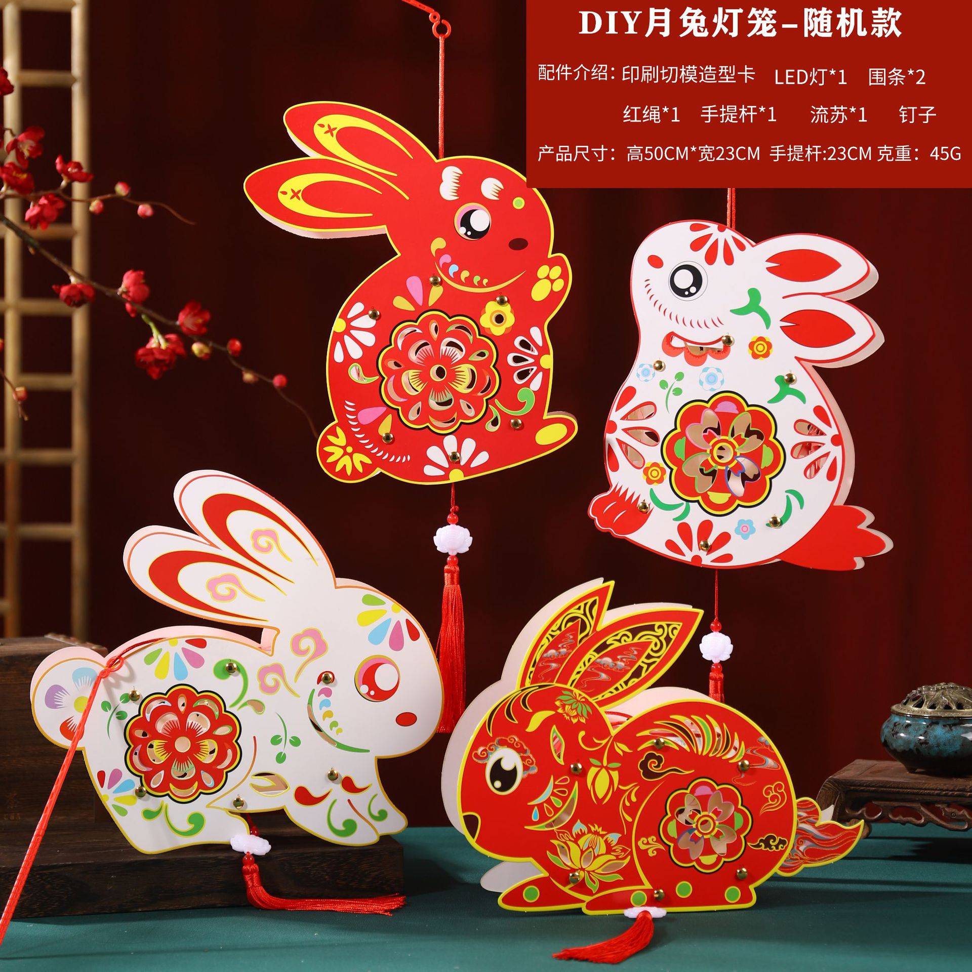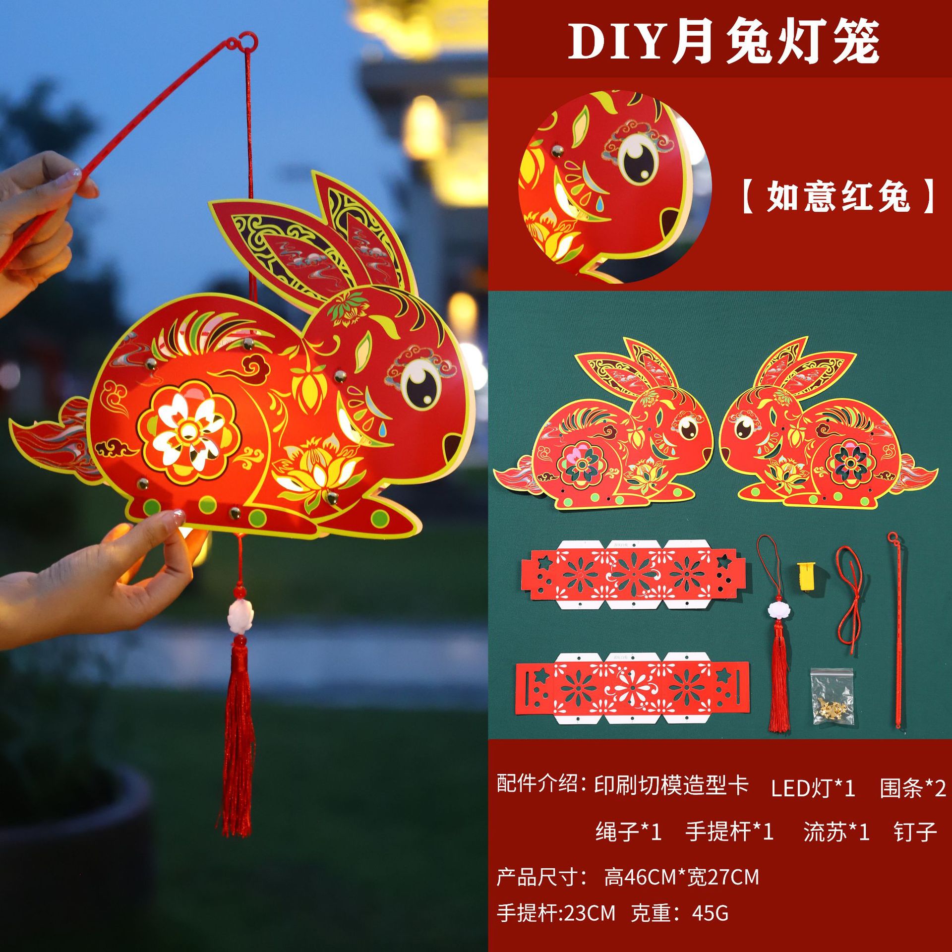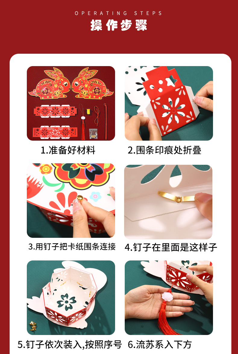 中秋节灯笼儿童diy制作材料包兔子灯笼幼儿园手提发光花灯纸灯笼