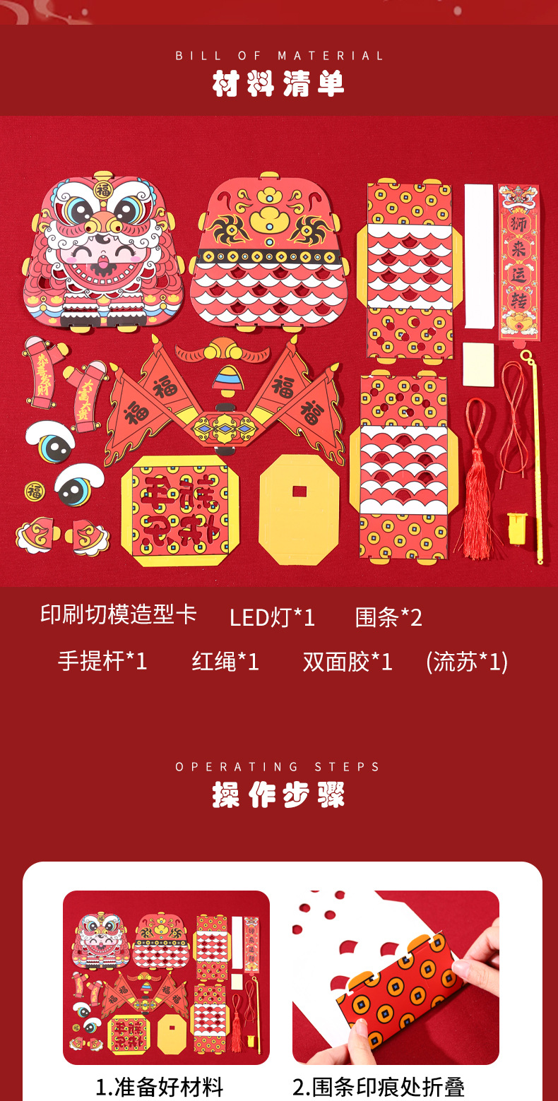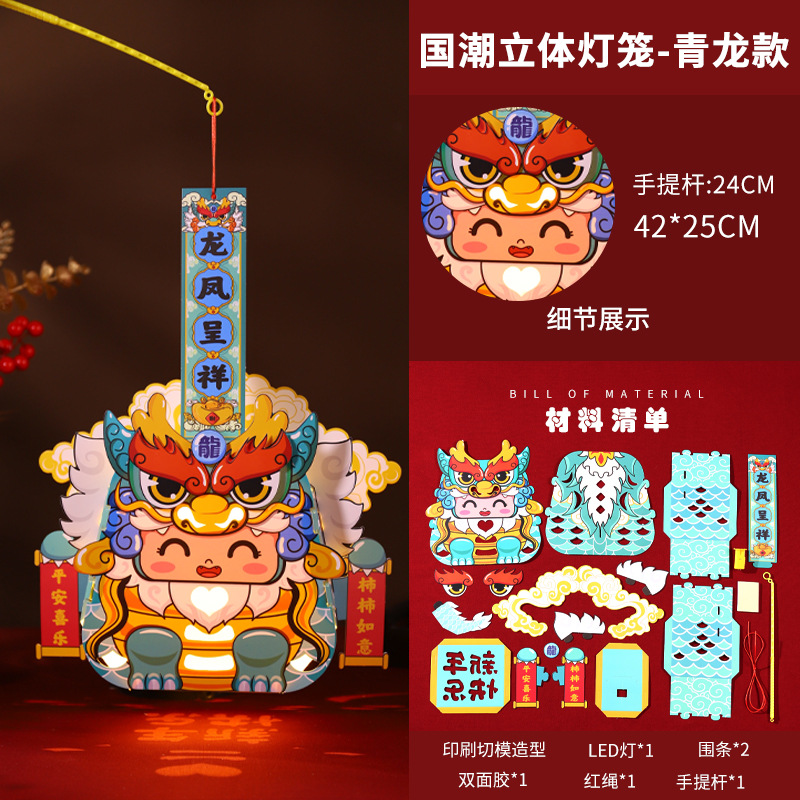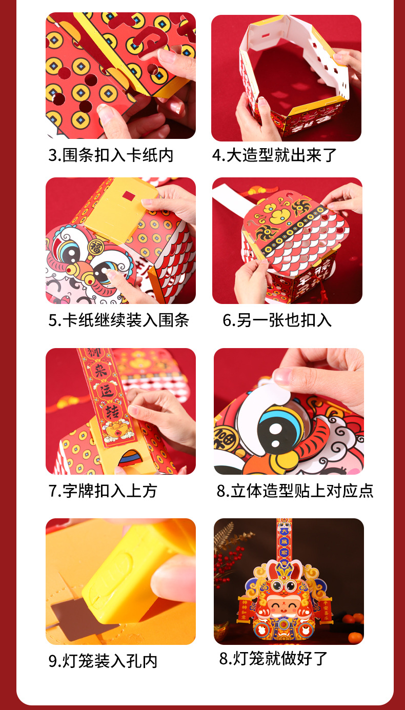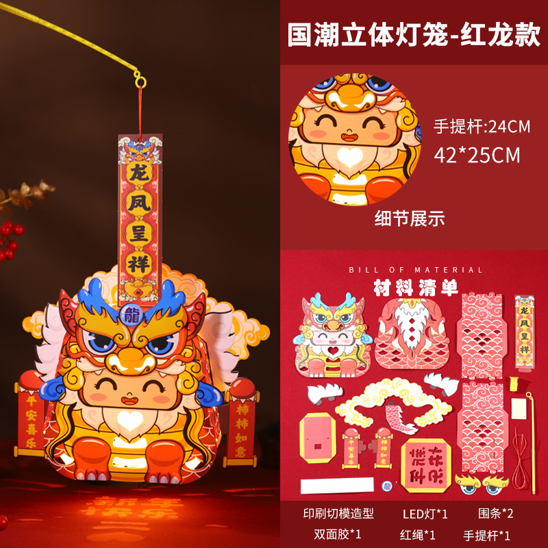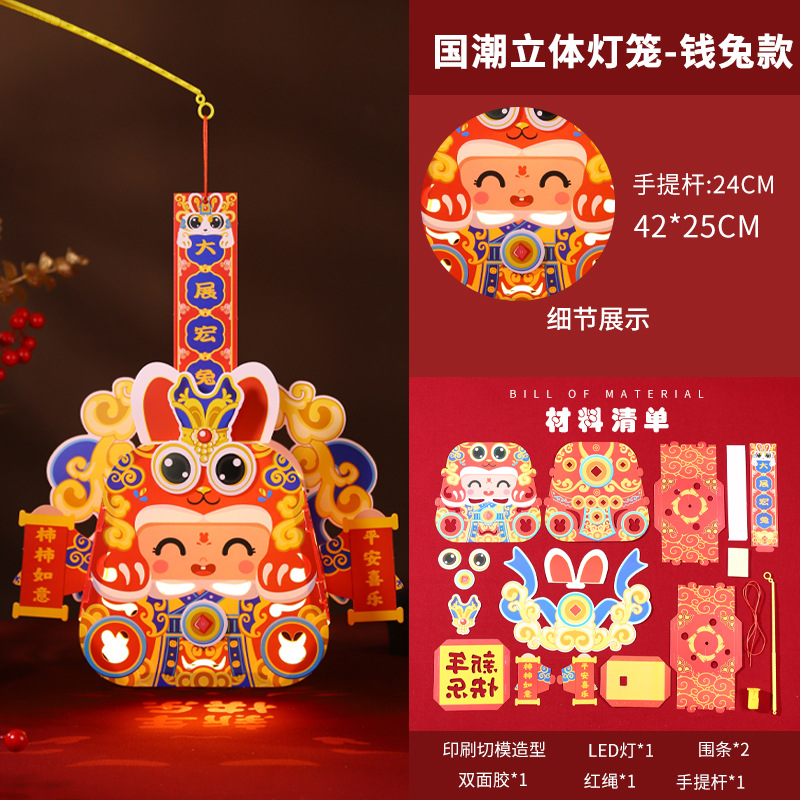 中秋节灯笼国潮纸灯笼儿童diy材料包手提宫灯花灯古风灯笼摆地摊
