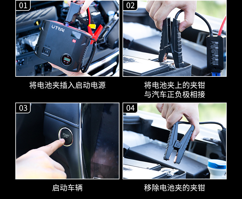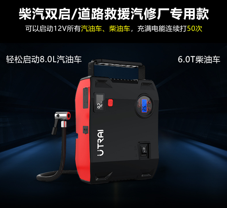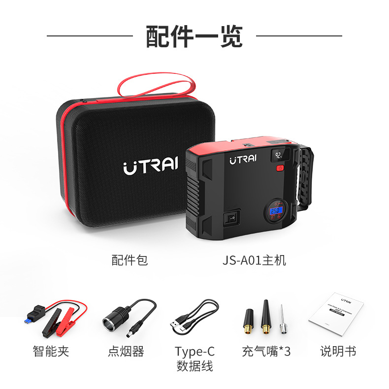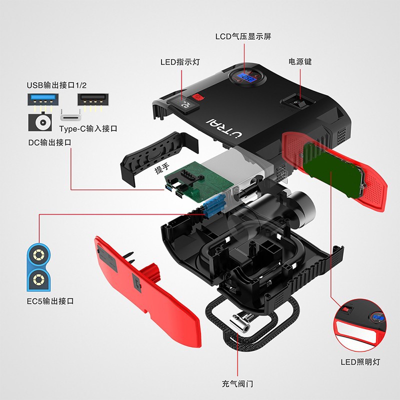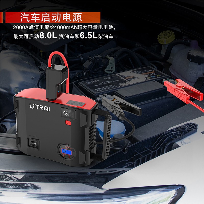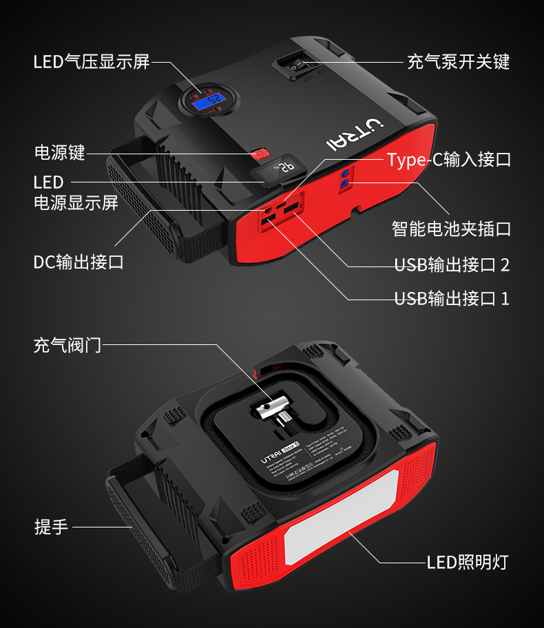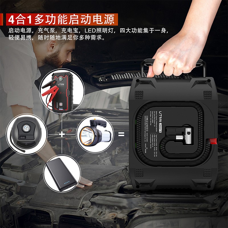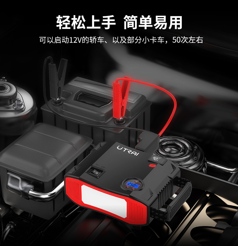 美国Utrai汽车应急启动电源车载打气泵一体机12v电瓶搭电移动救援