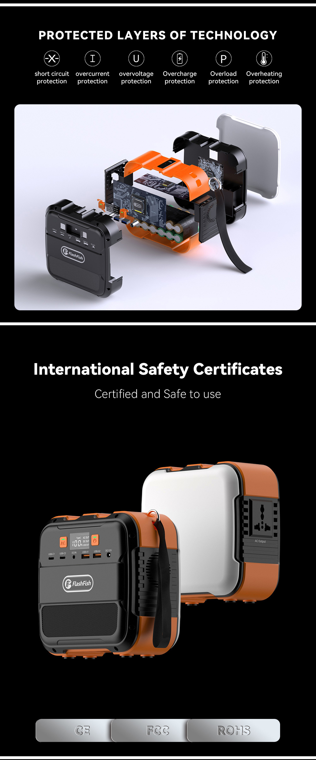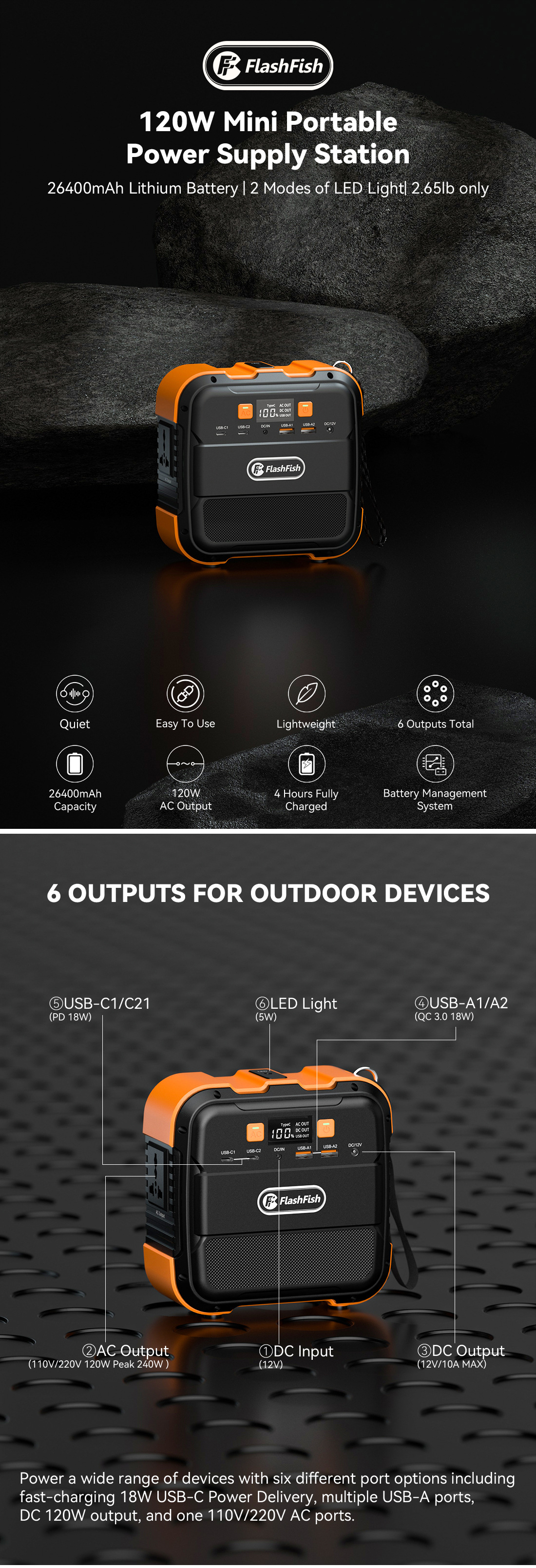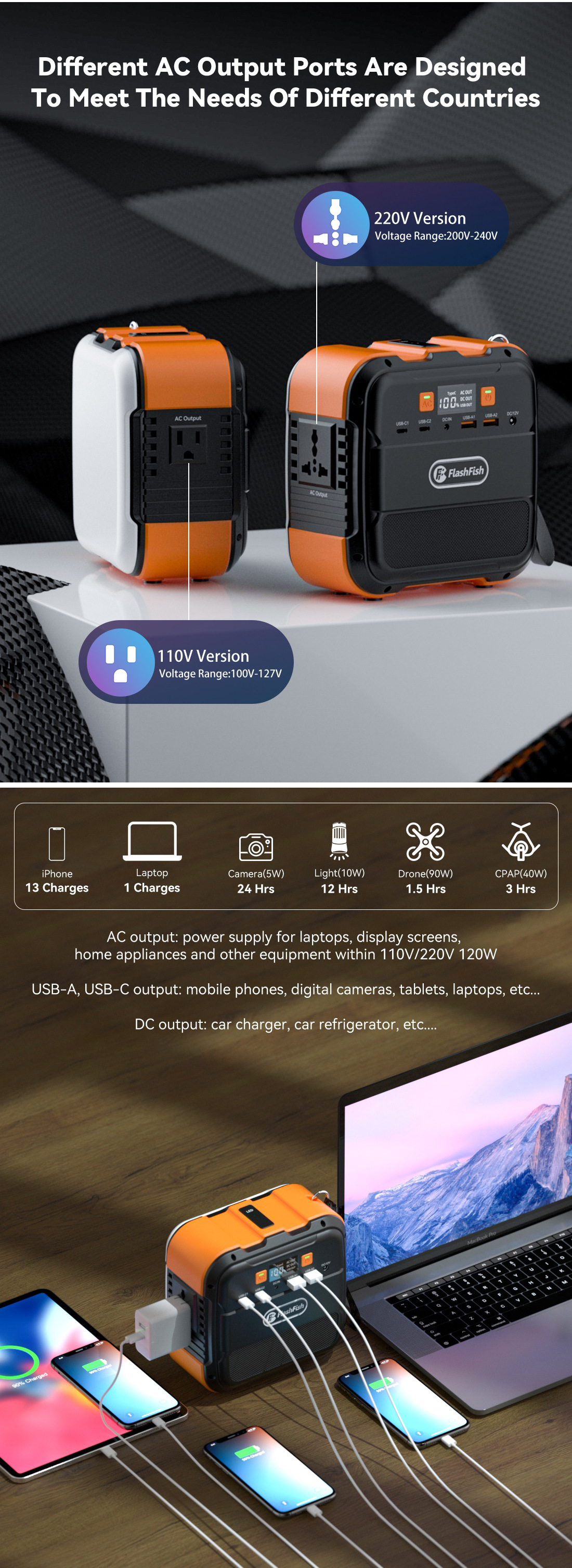 FlashFish跨境户外电源220v储能便携式120W应急移动太阳能电源