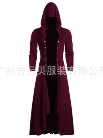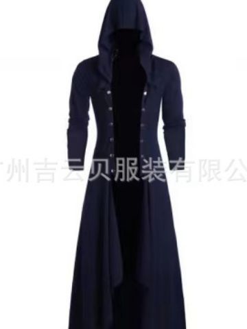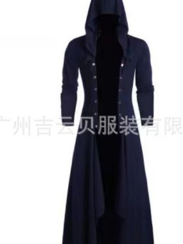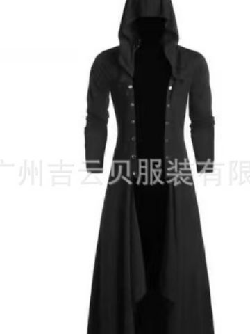 风衣男士复古长外套男士蒸汽朋克哥特风格哥特式连帽男士长风衣