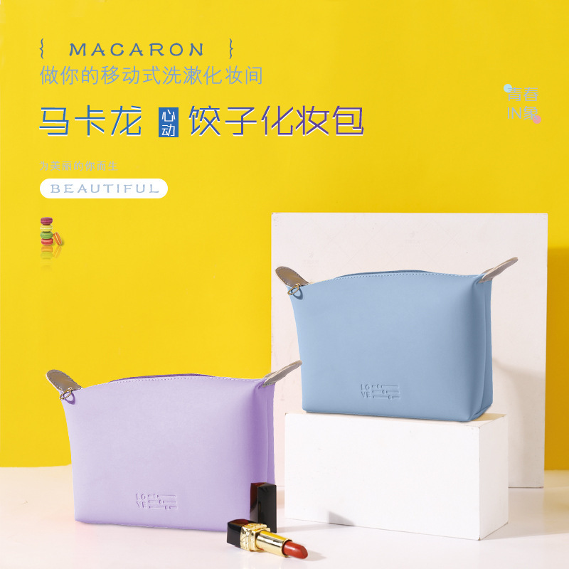 韩版可爱饺子化妆包 糖果色折叠妈咪水饺型礼品收纳洗漱包批发