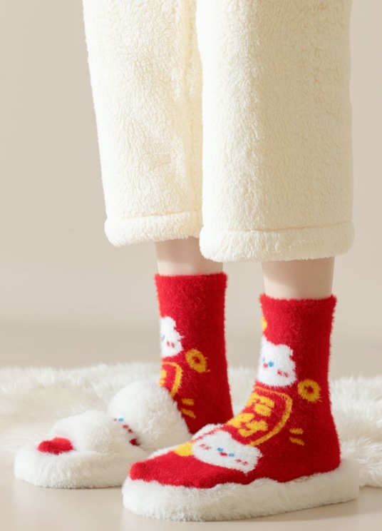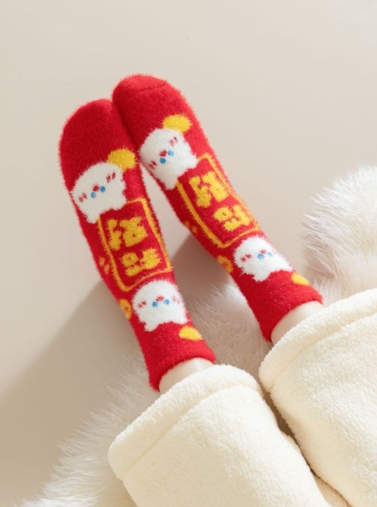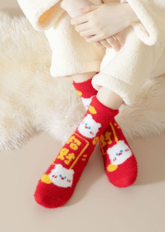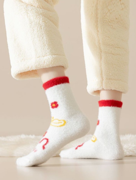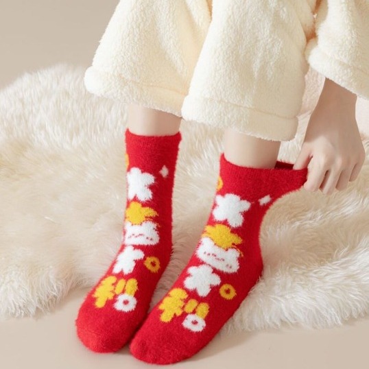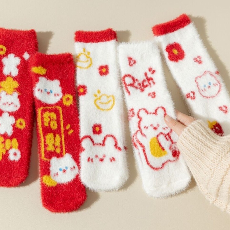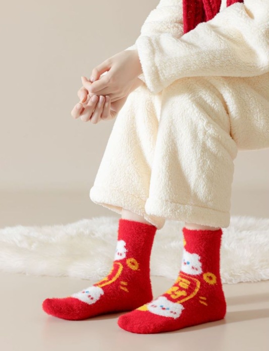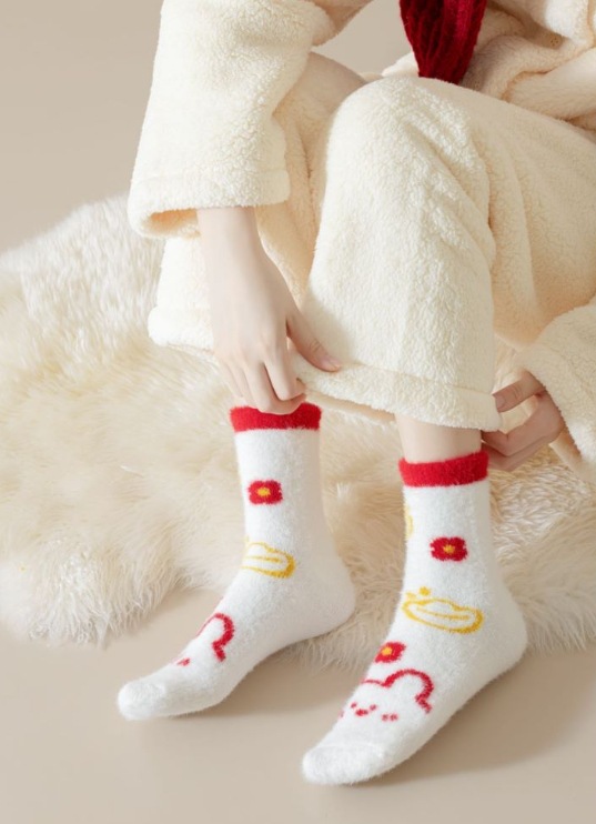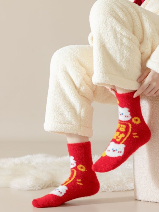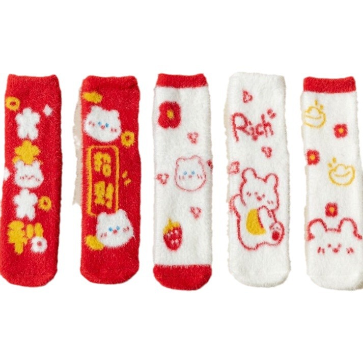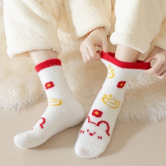 秋冬新款水貂绒卡通兔子加厚保暖女袜休闲居家女袜地板袜睡眠袜女