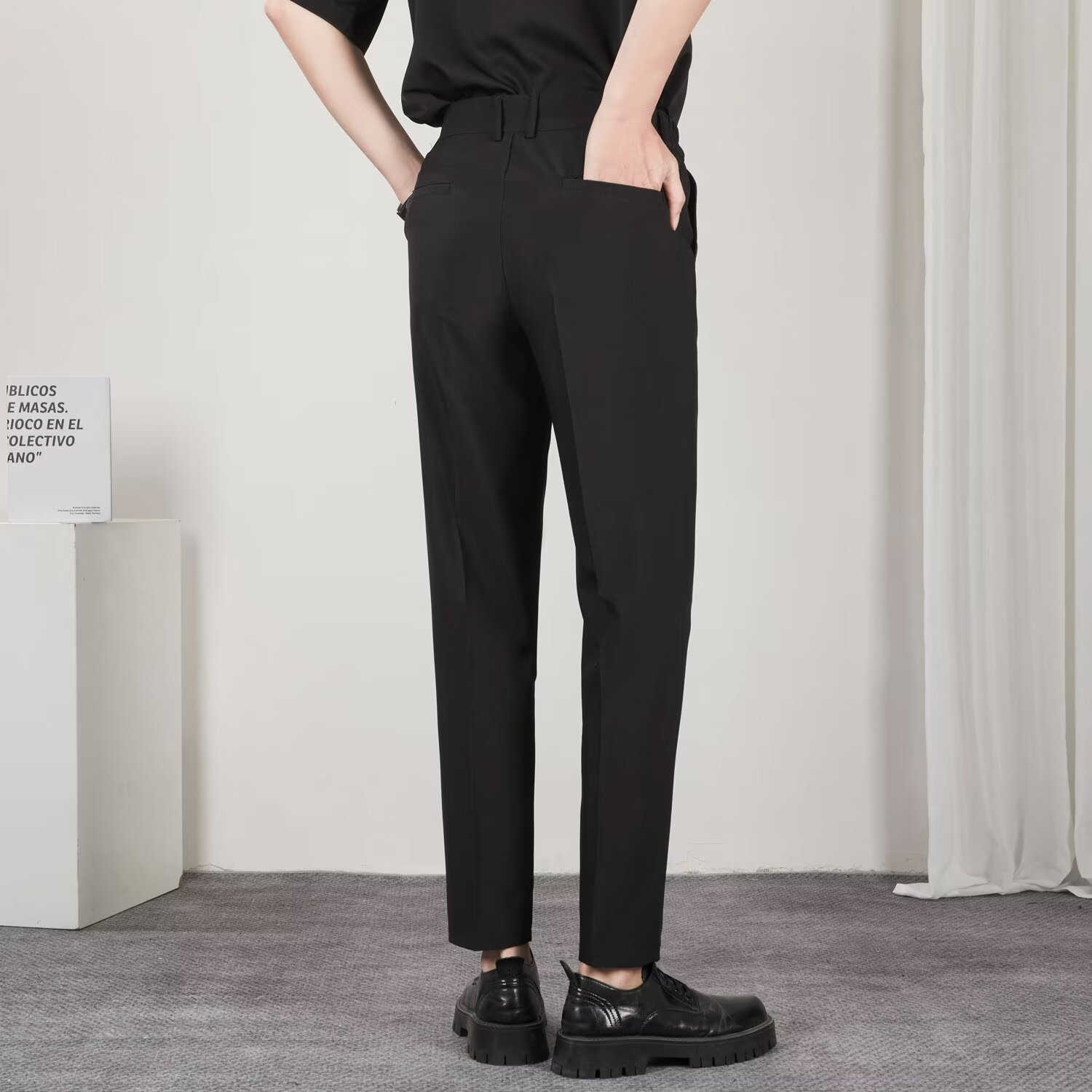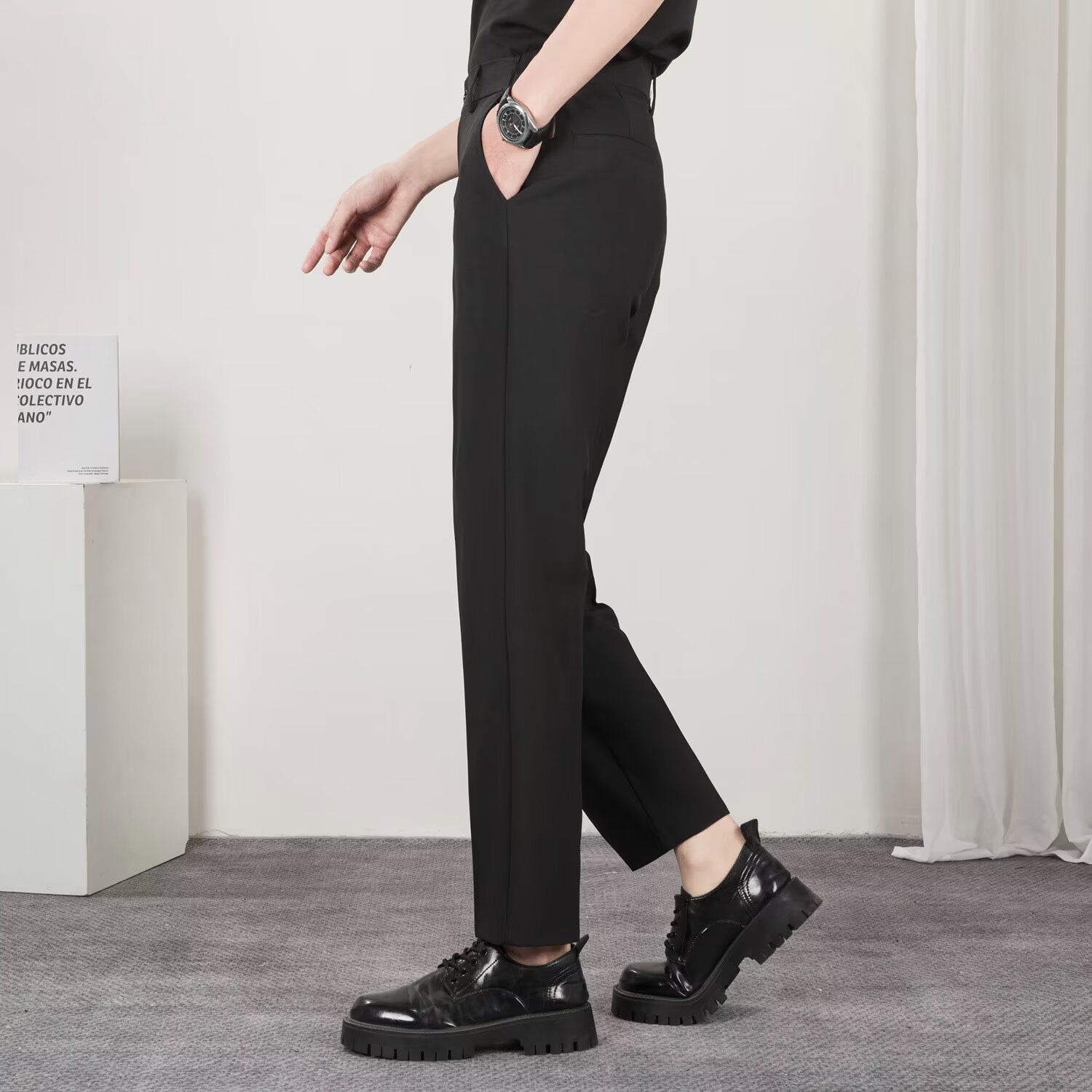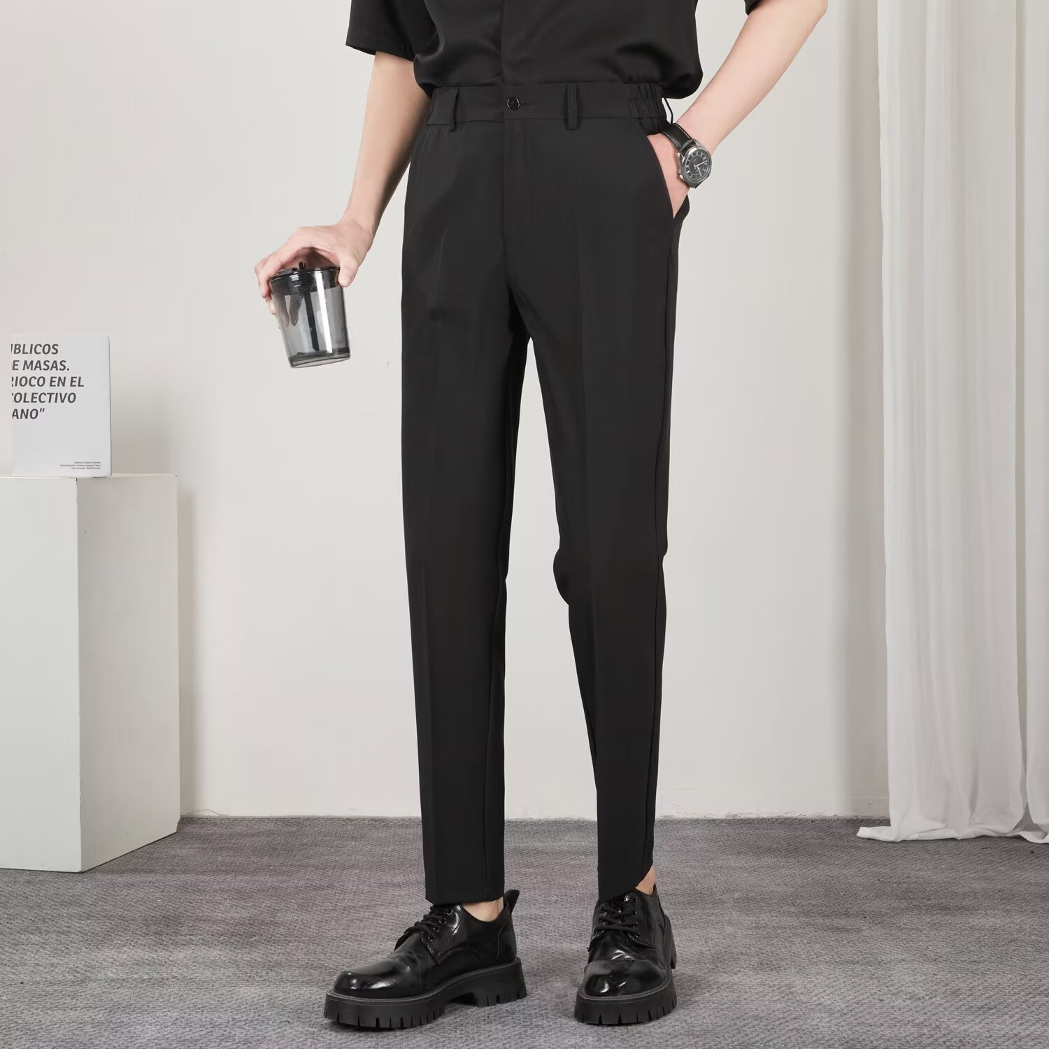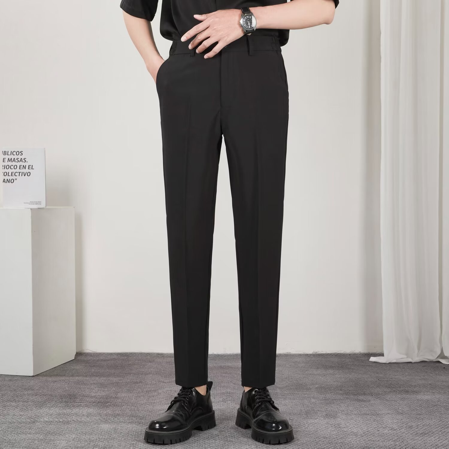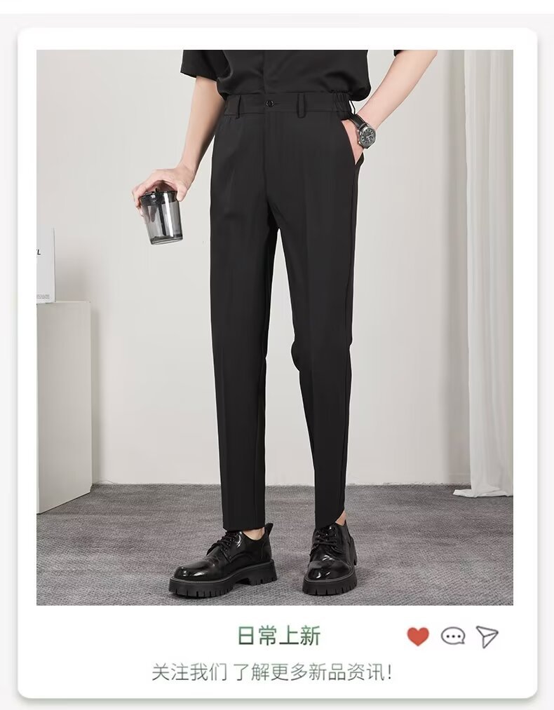 春秋新款小西裤男长裤子坠垂感修身小脚九分休闲裤男士商务西装裤