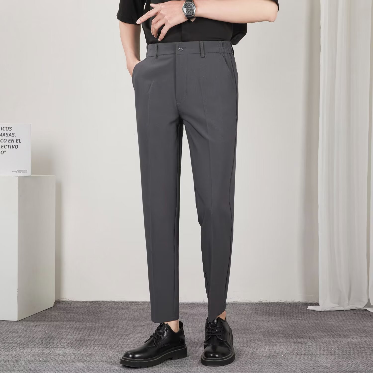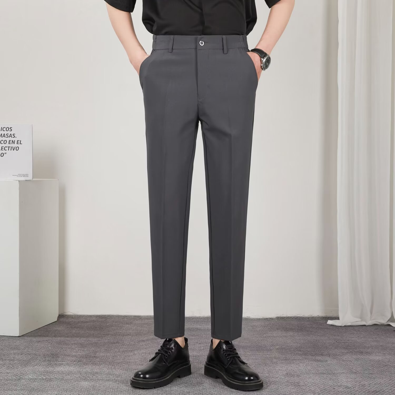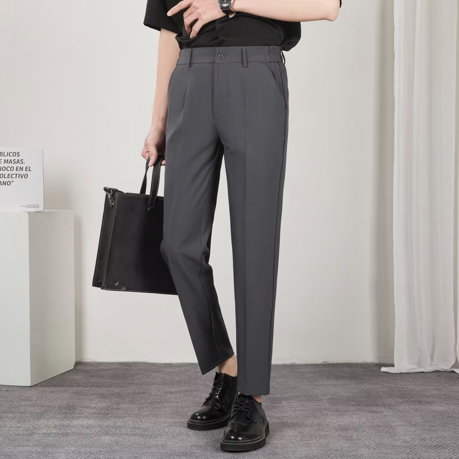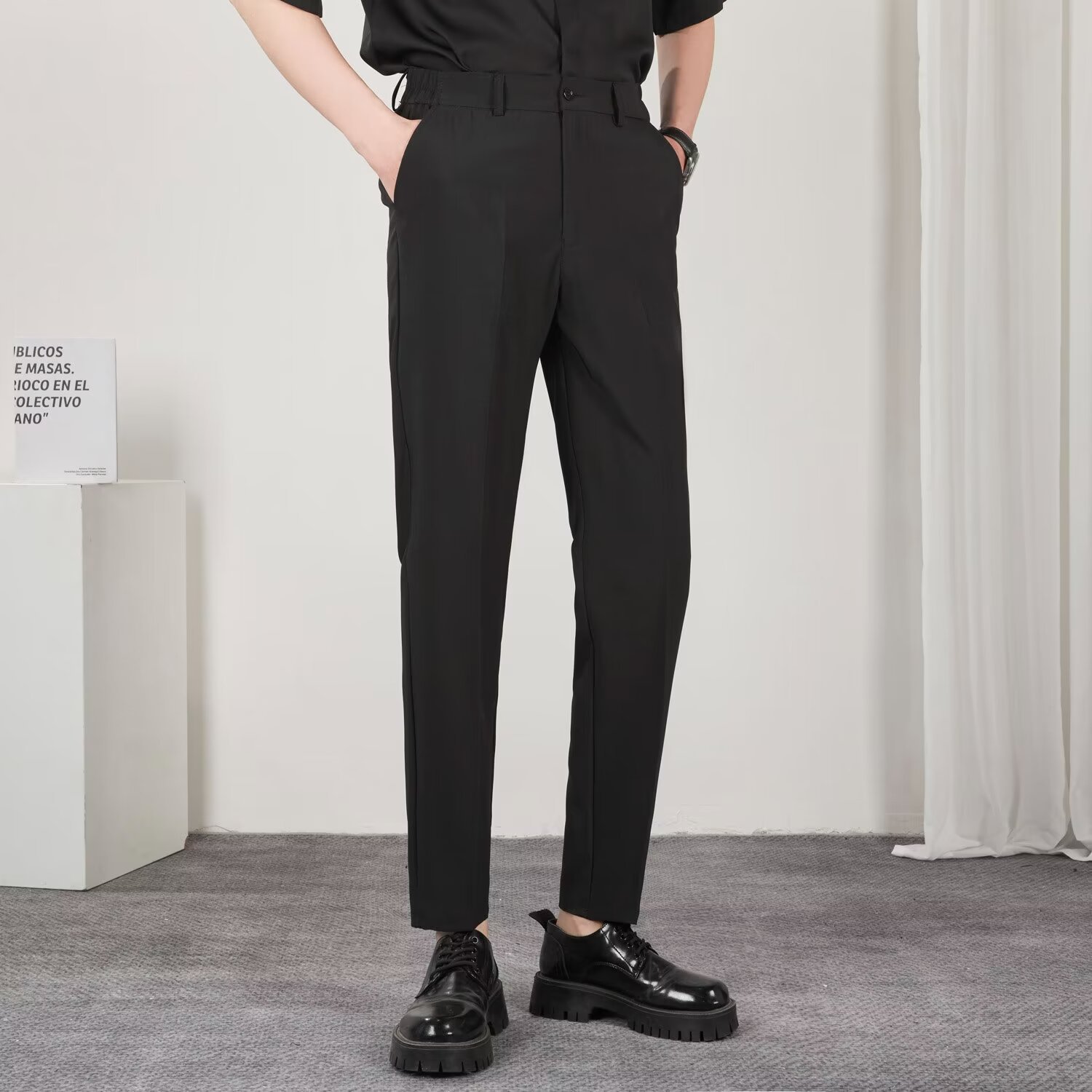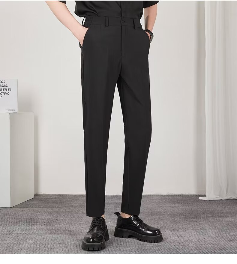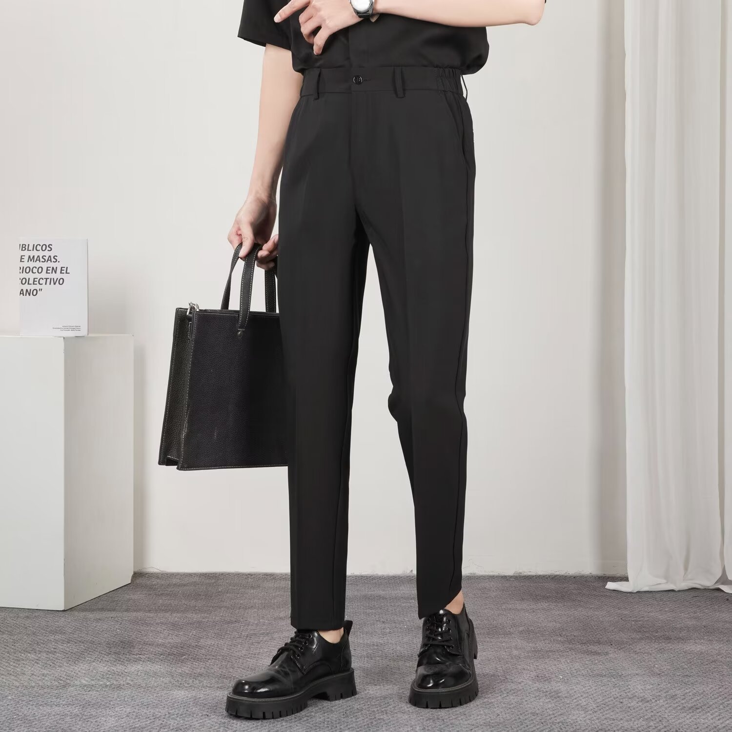 春秋新款小西裤男长裤子坠垂感修身小脚九分休闲裤男士商务西装裤
