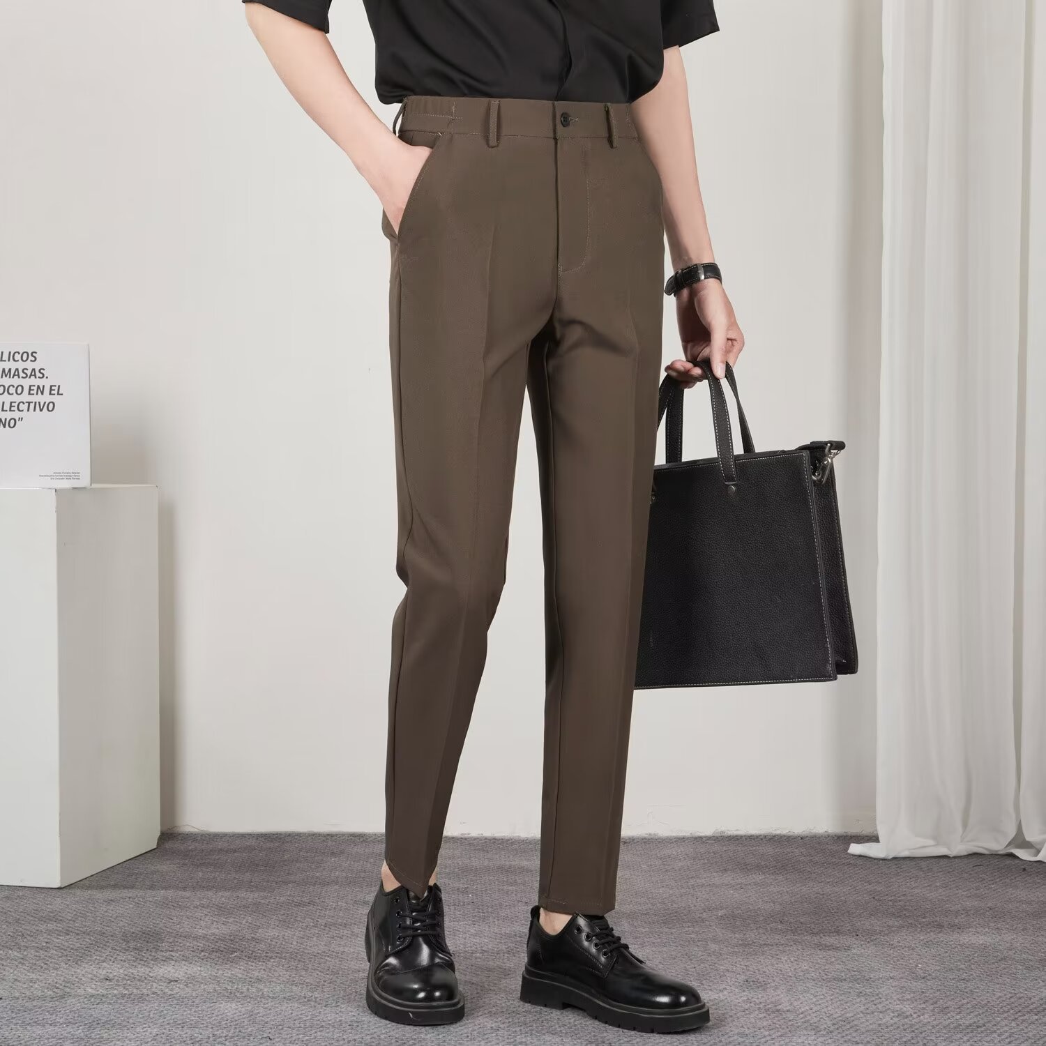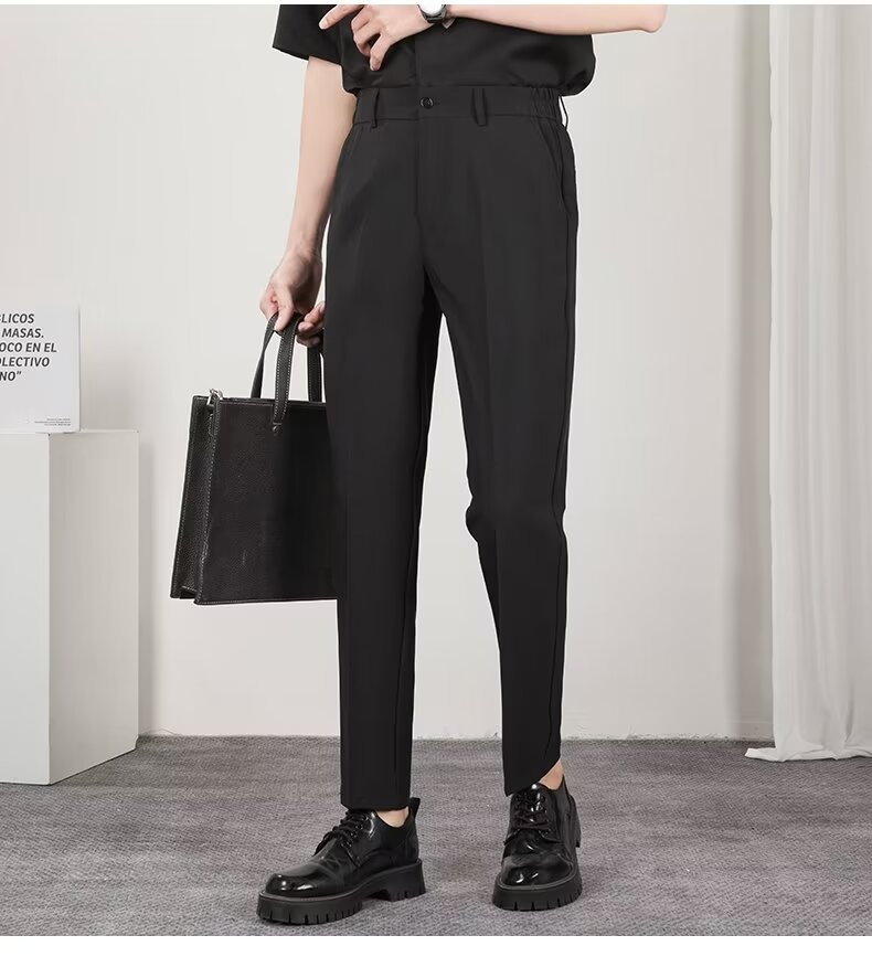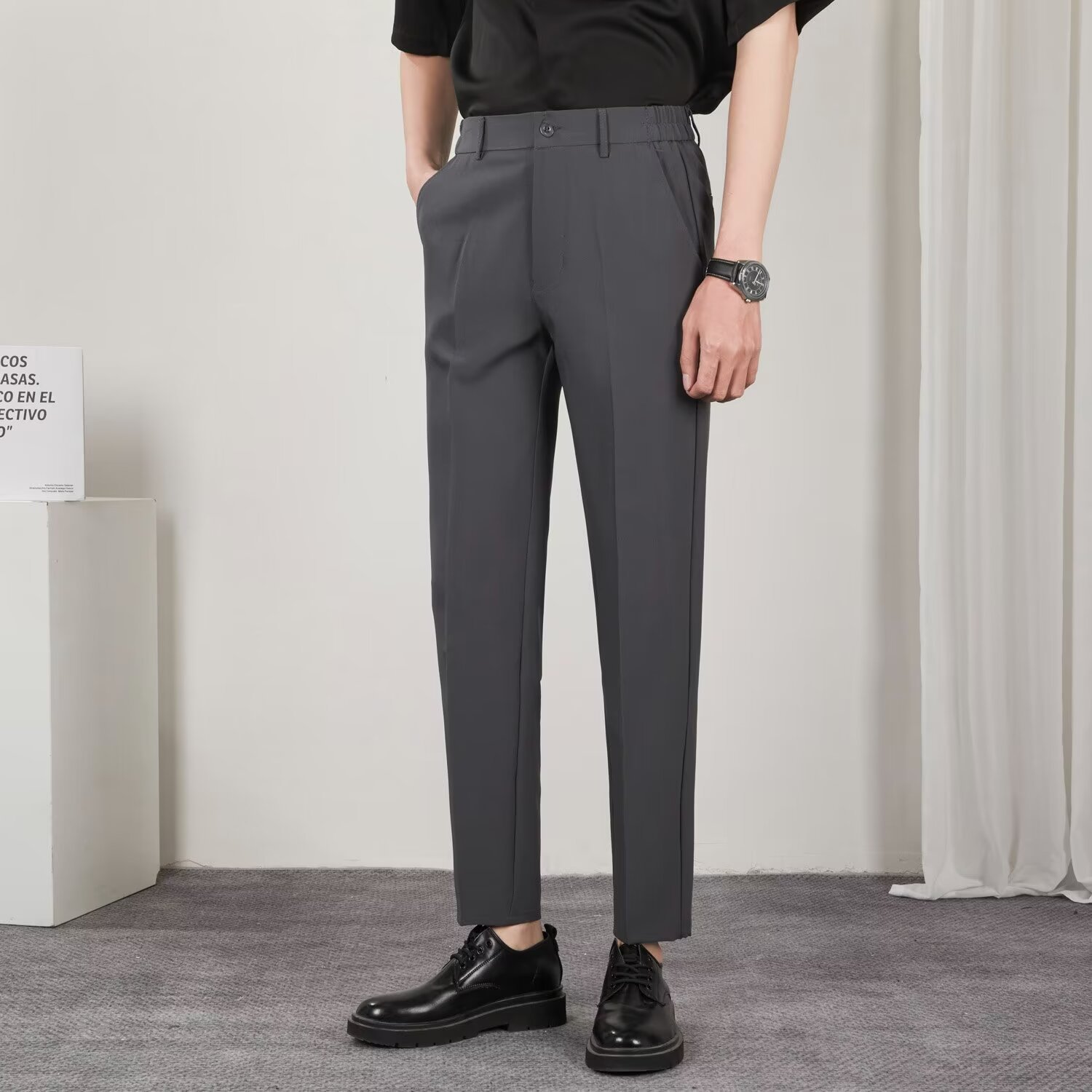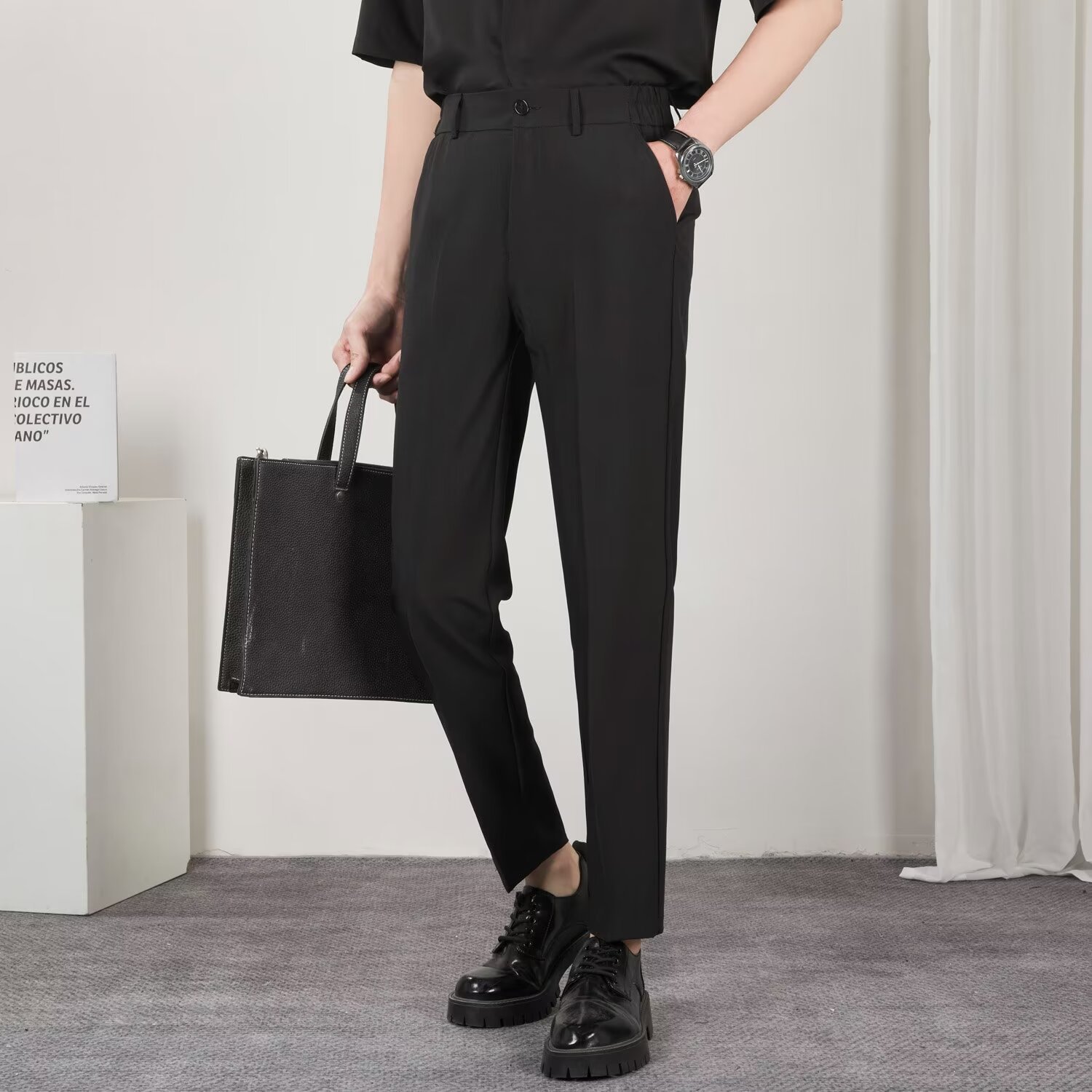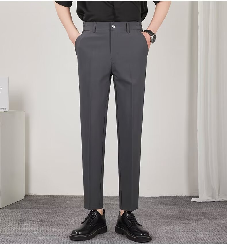 春秋新款小西裤男长裤子坠垂感修身小脚九分休闲裤男士商务西装裤