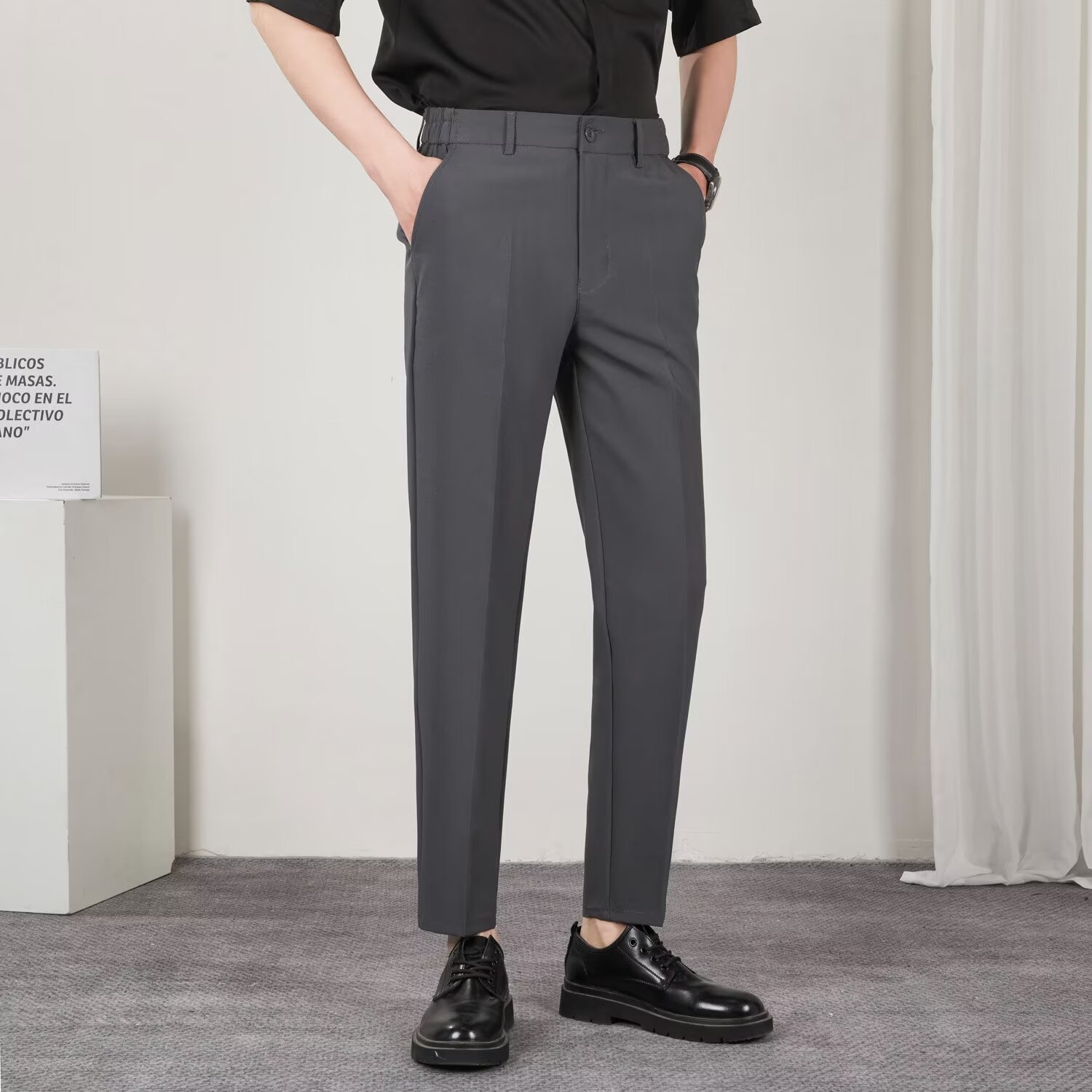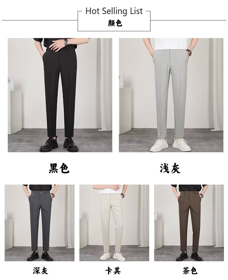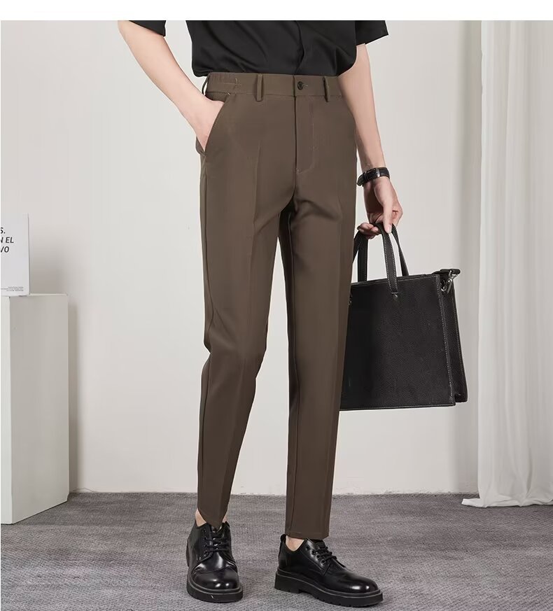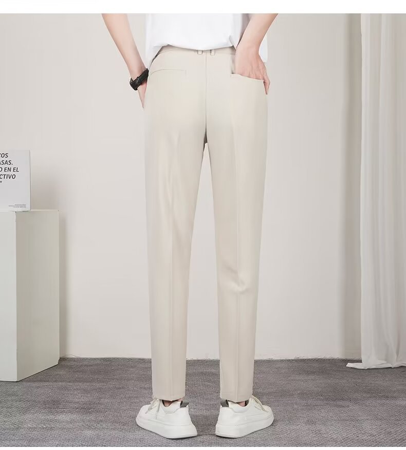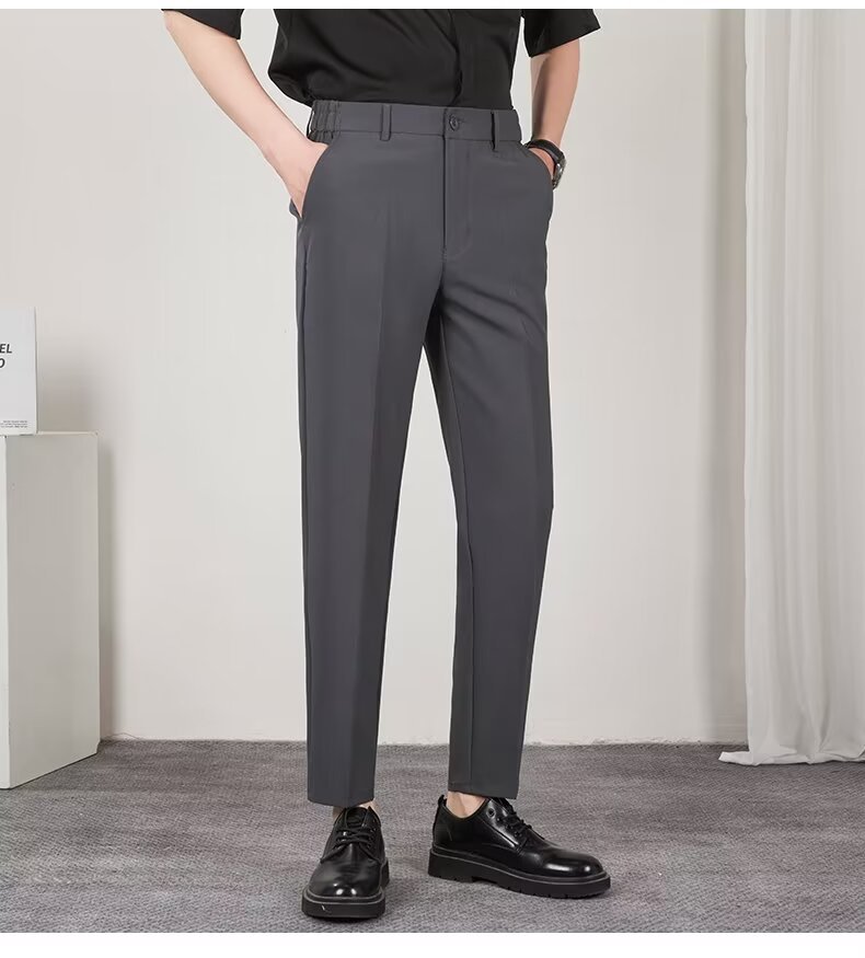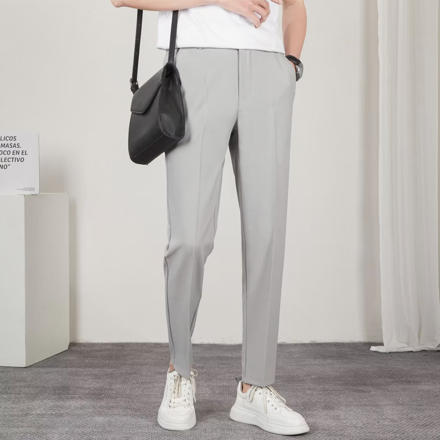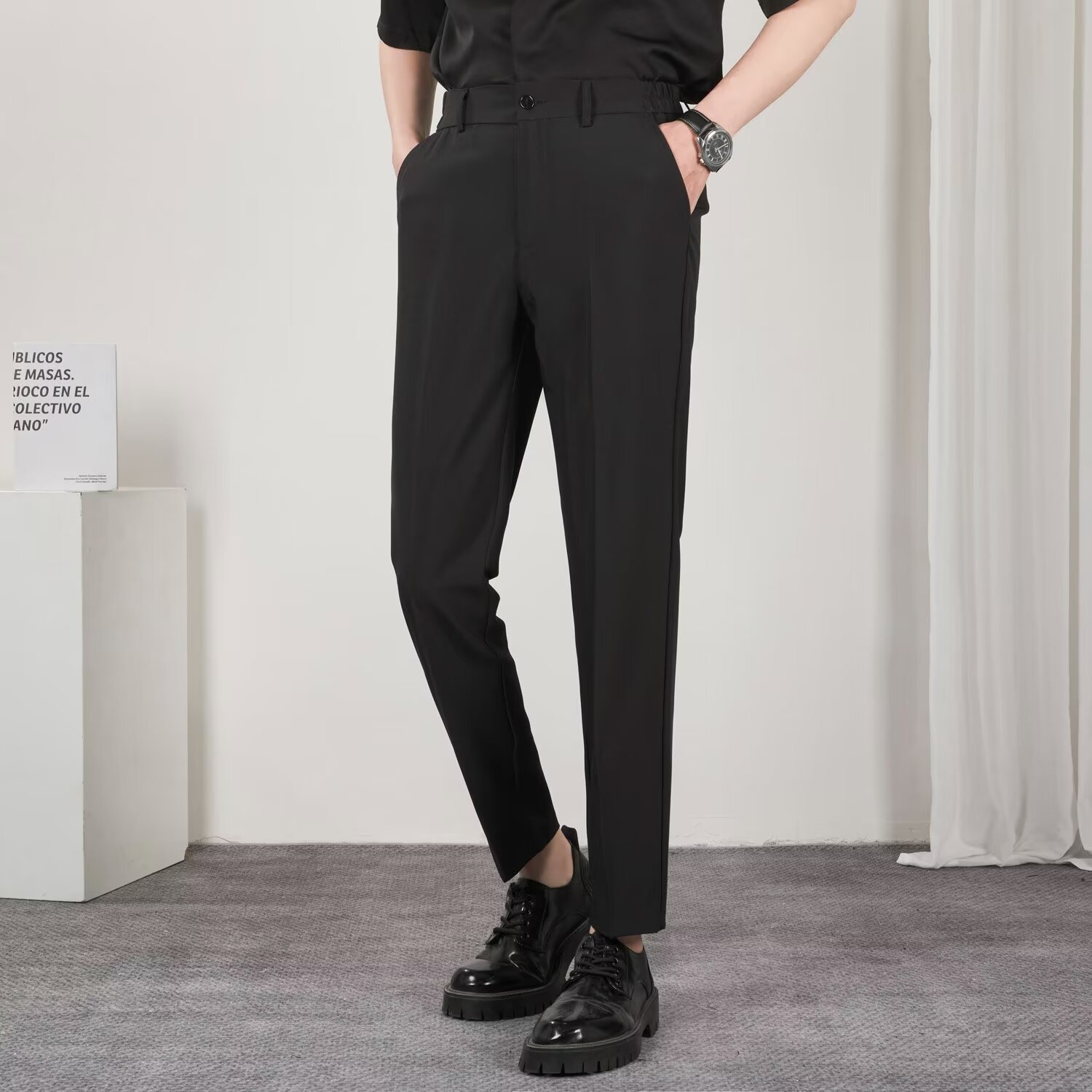 春秋新款小西裤男长裤子坠垂感修身小脚九分休闲裤男士商务西装裤